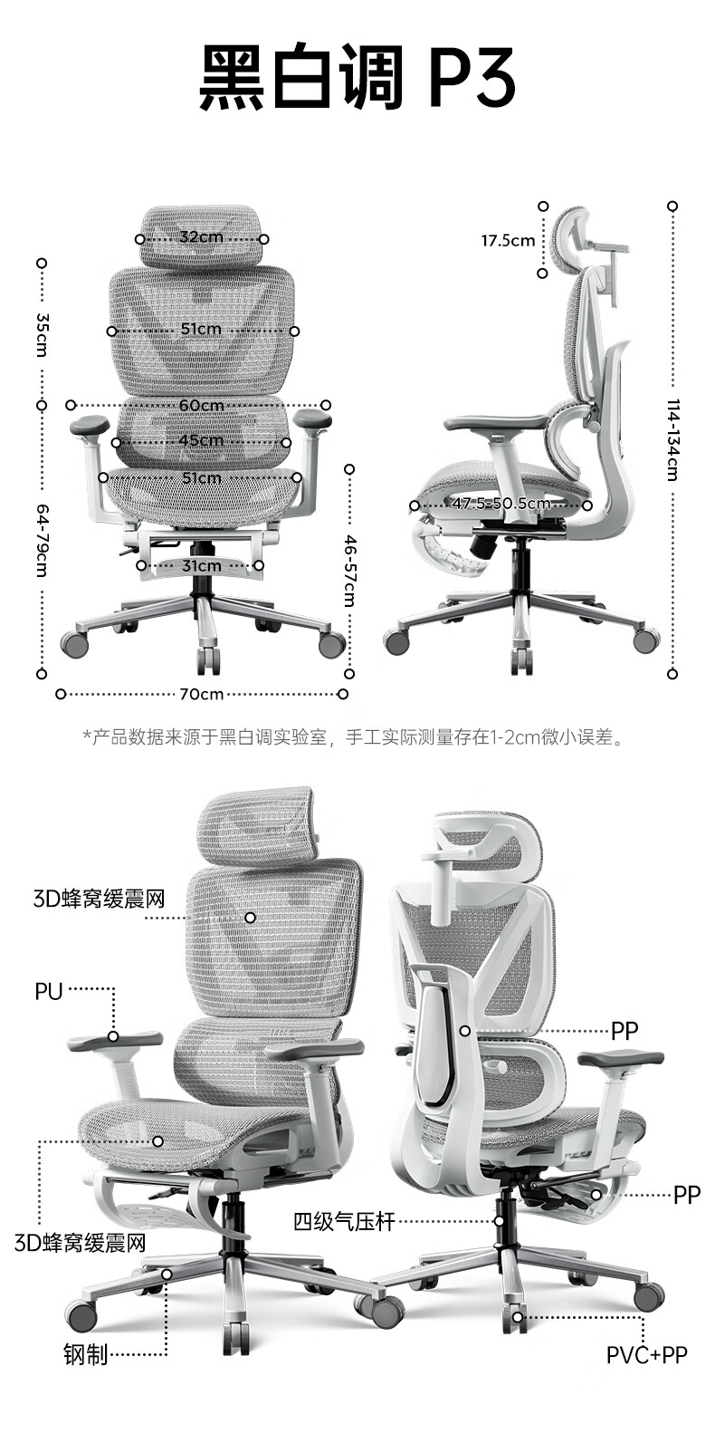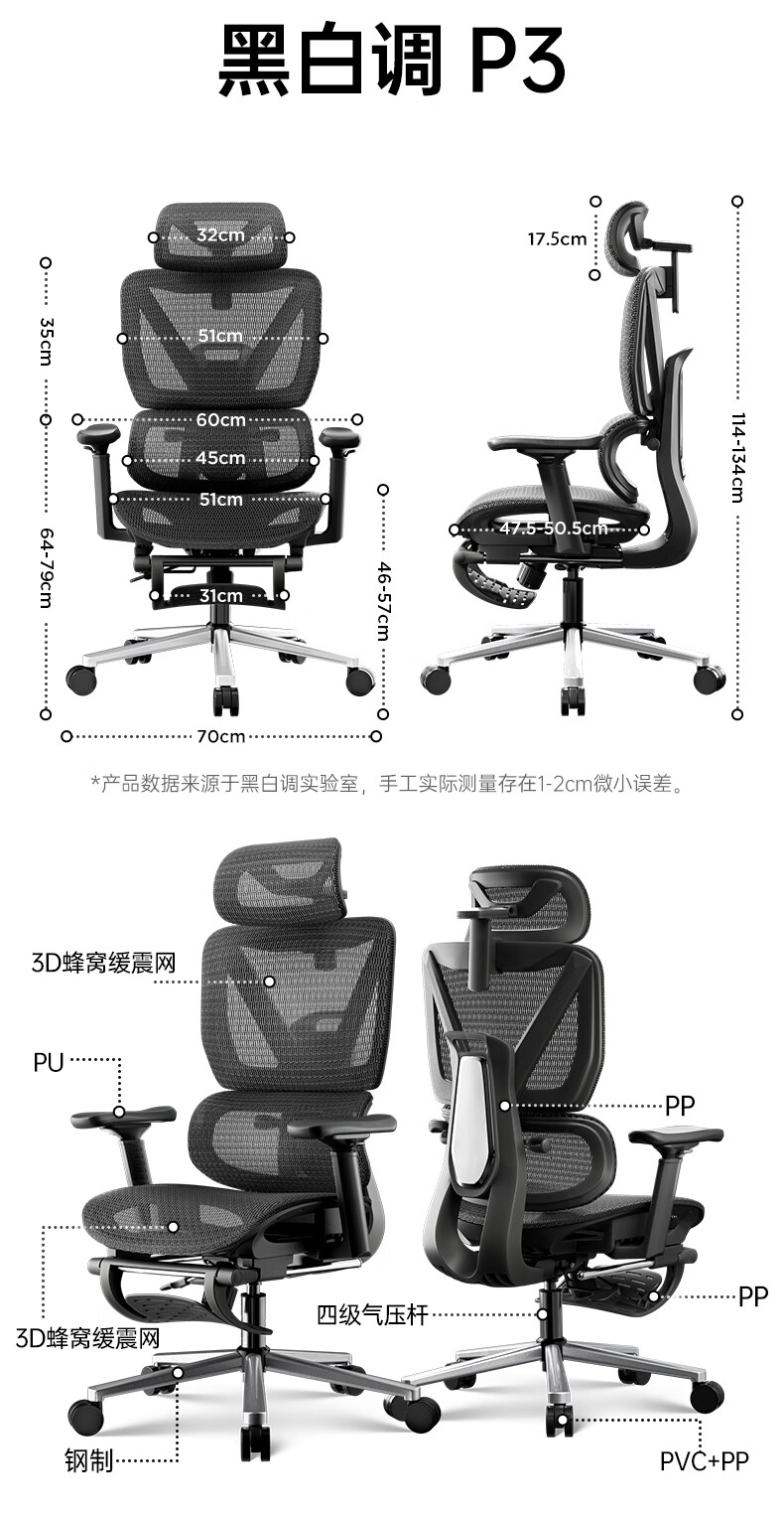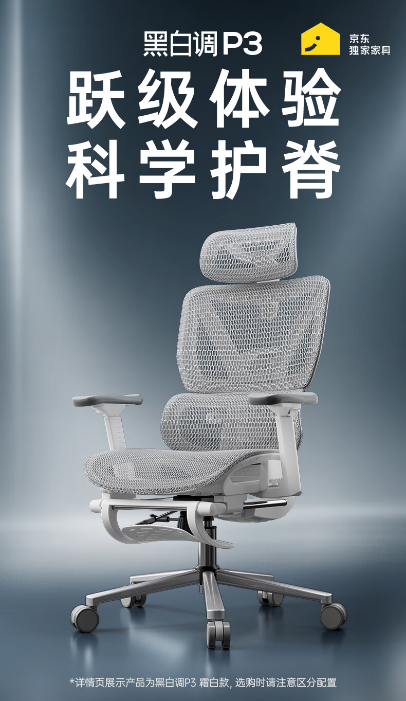 黑白调P3人体工学椅电脑椅办公人工力学座椅学习电竞椅子可躺国家补贴