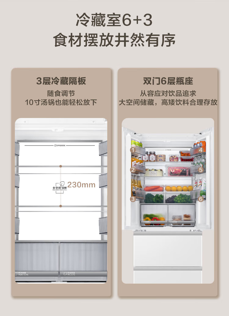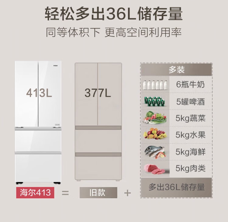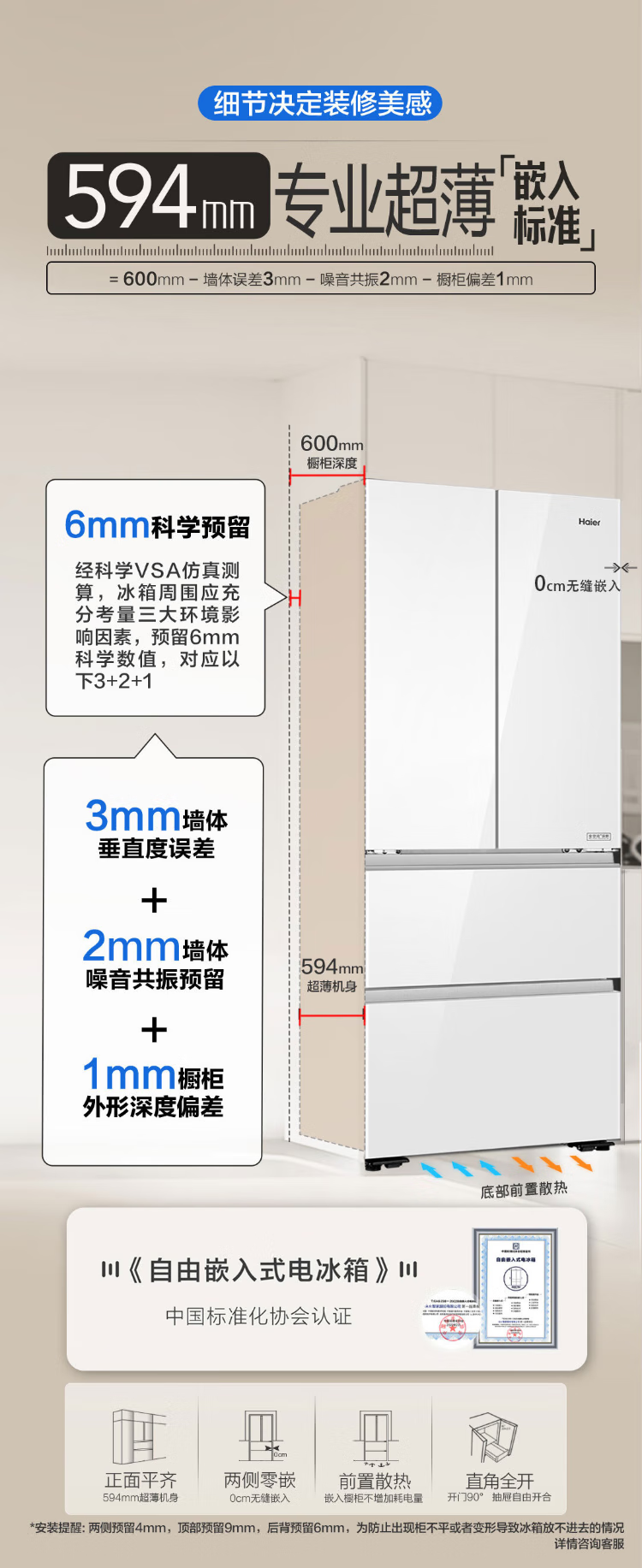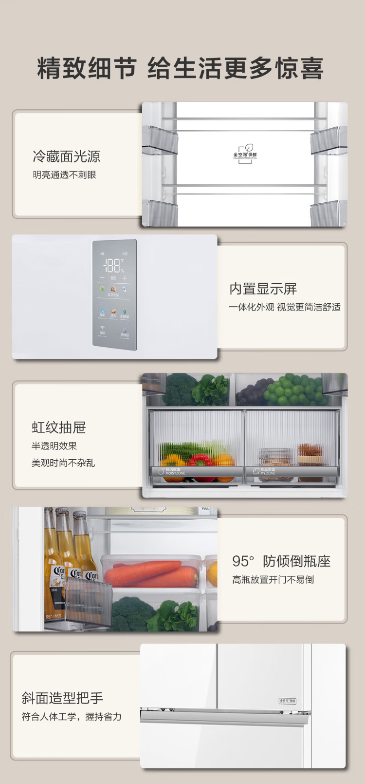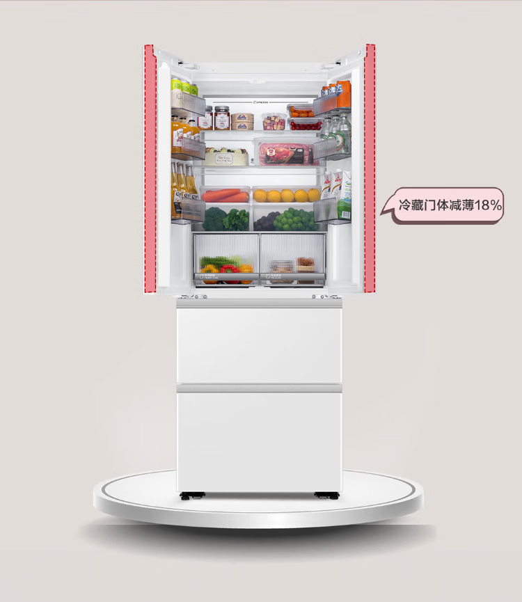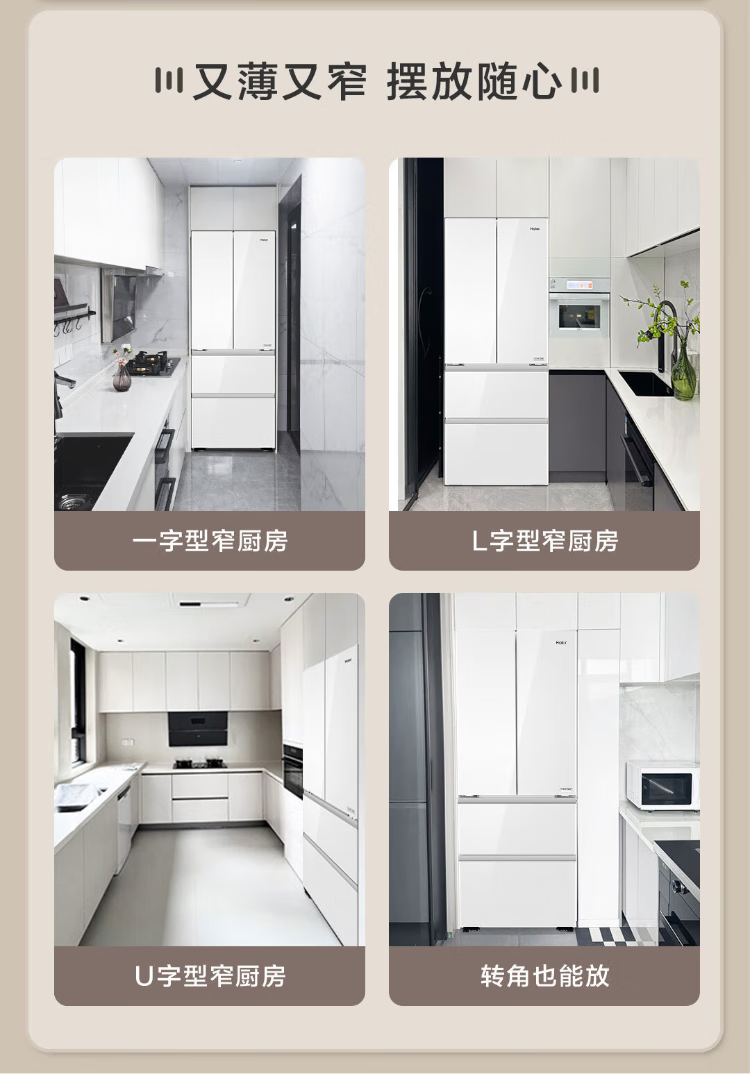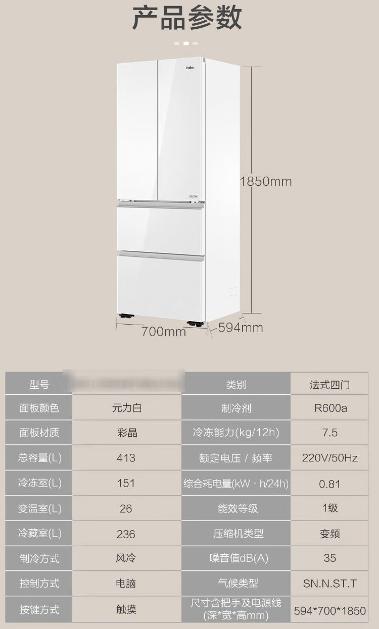 海尔(Haier)零嵌入冰箱413升法式多开门全空间保鲜和美系列家用彩晶玻璃风冷无霜一级能效EPP超净WGHFD1BSJU1 元力白