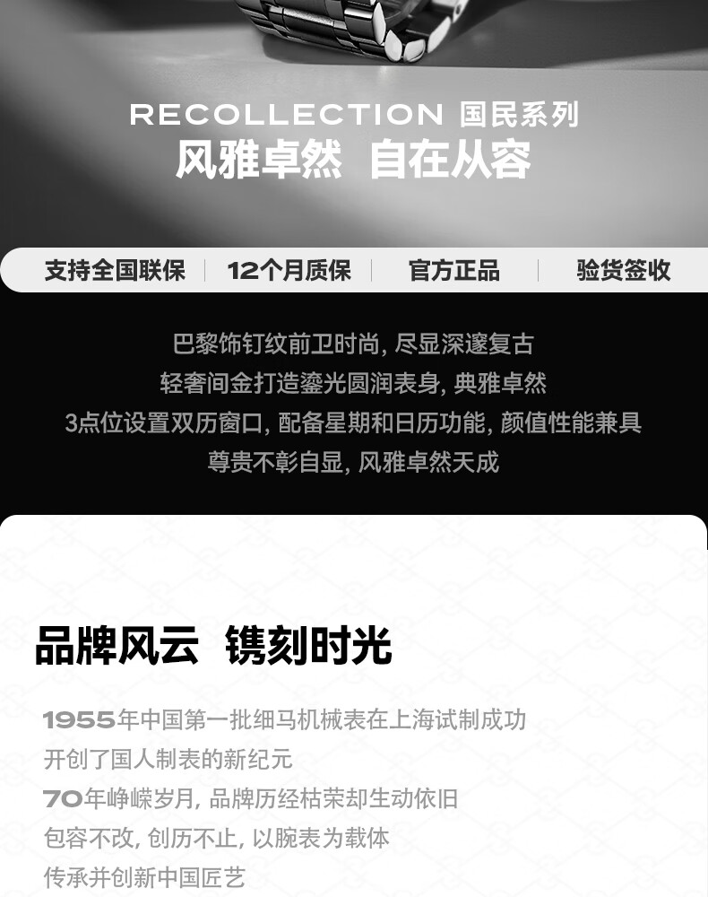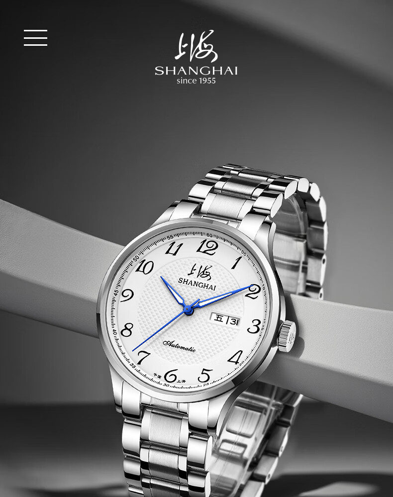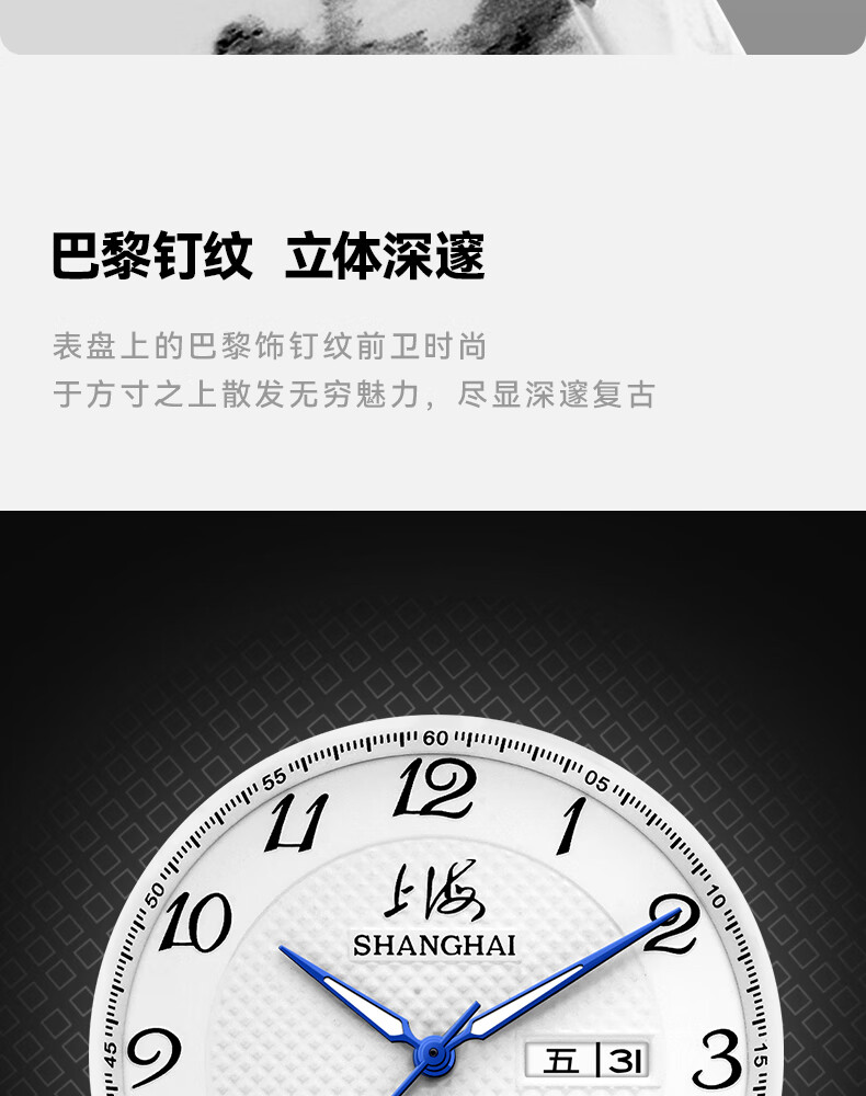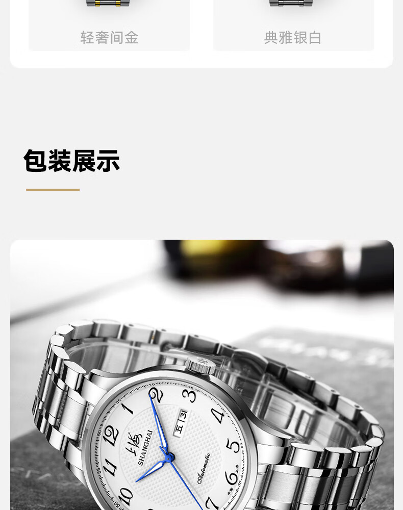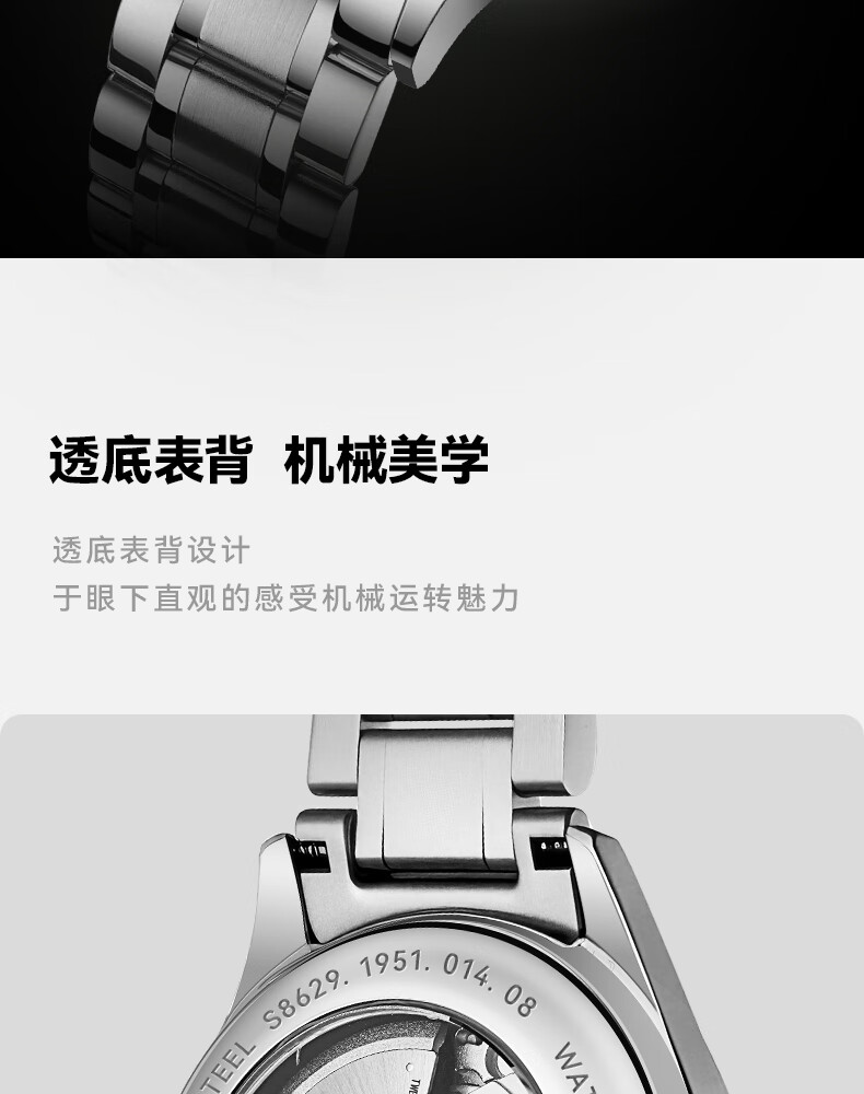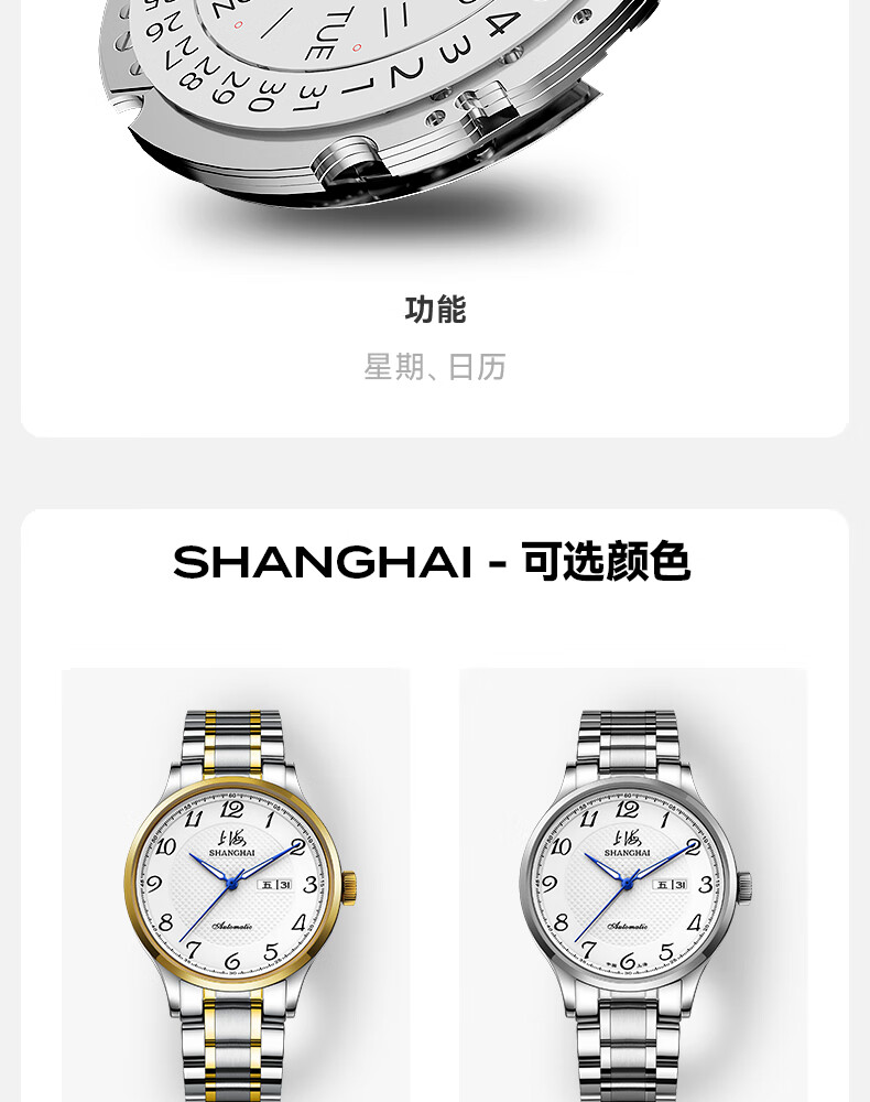 上海(SHANGHAI)手表礼物 国民系列 经典自动机械腕表透底钢带男表 S629B白双历
