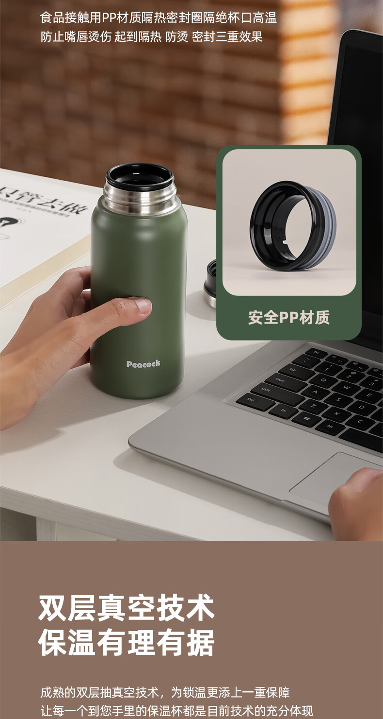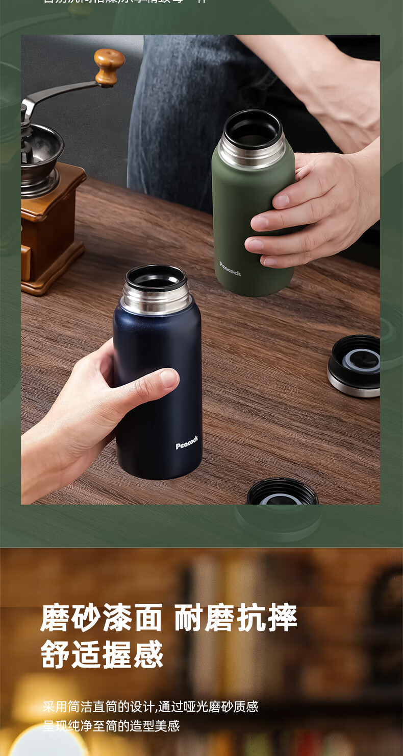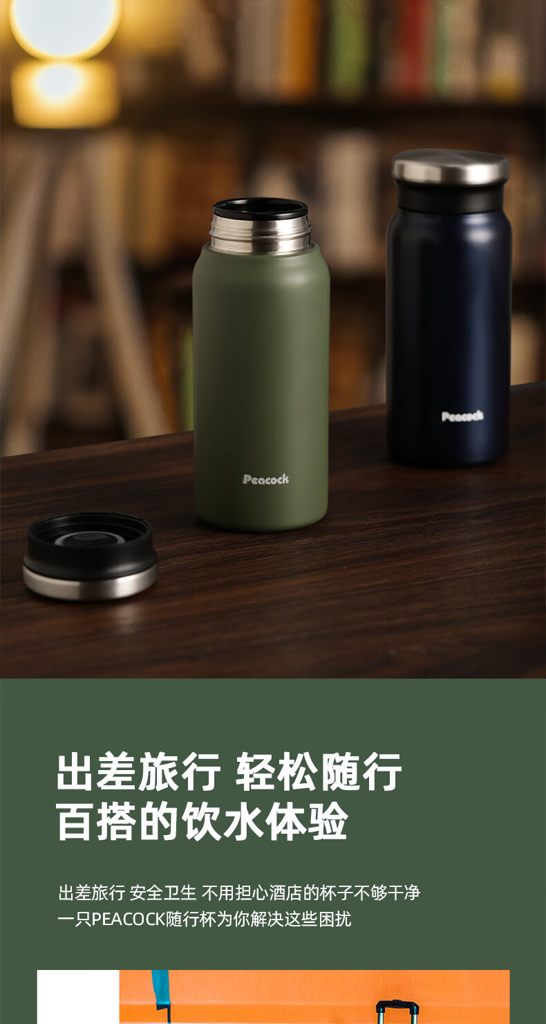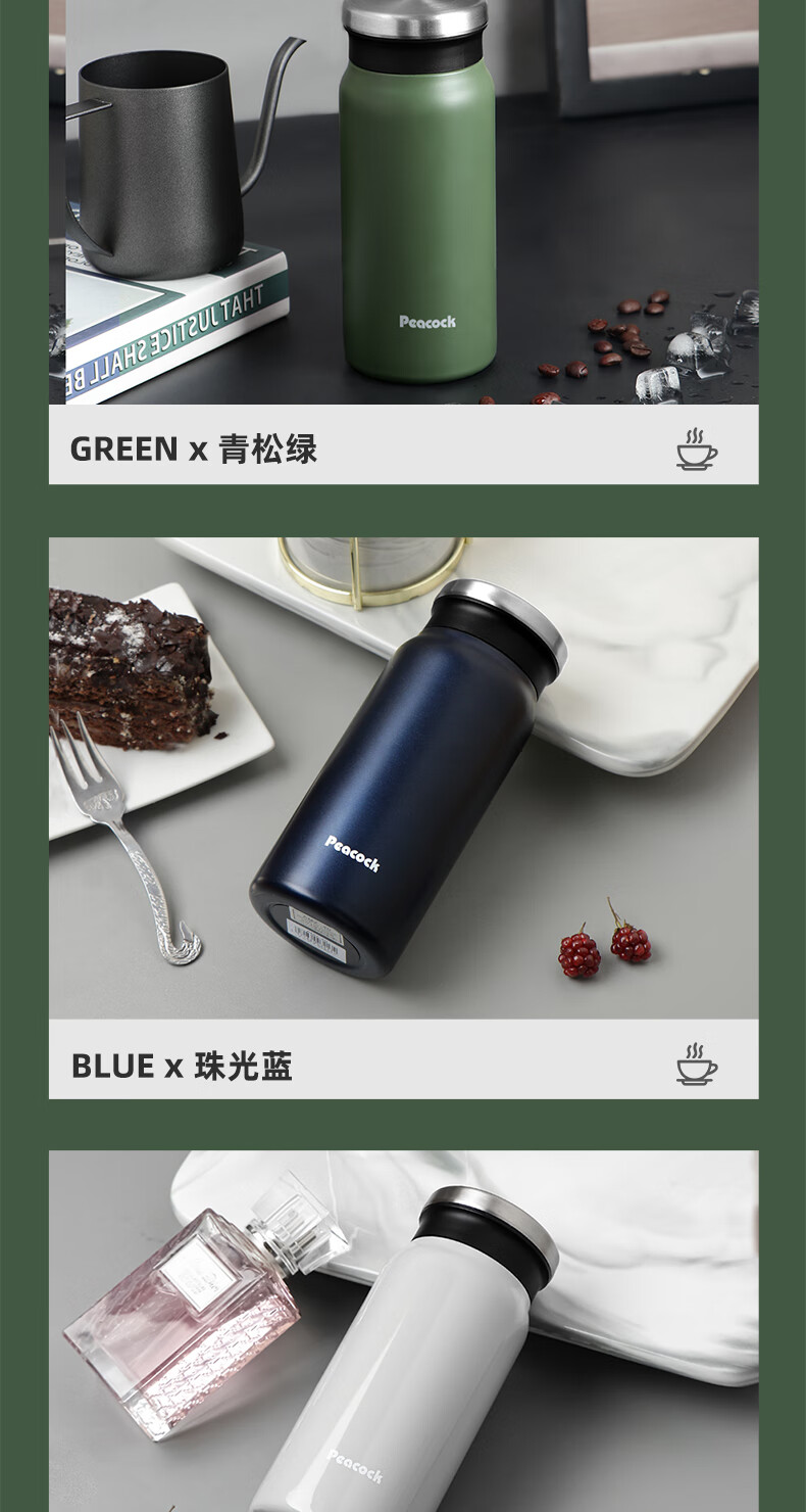 孔雀(Peacock)保温杯 送男士直身杯便携不锈钢水杯学生杯子