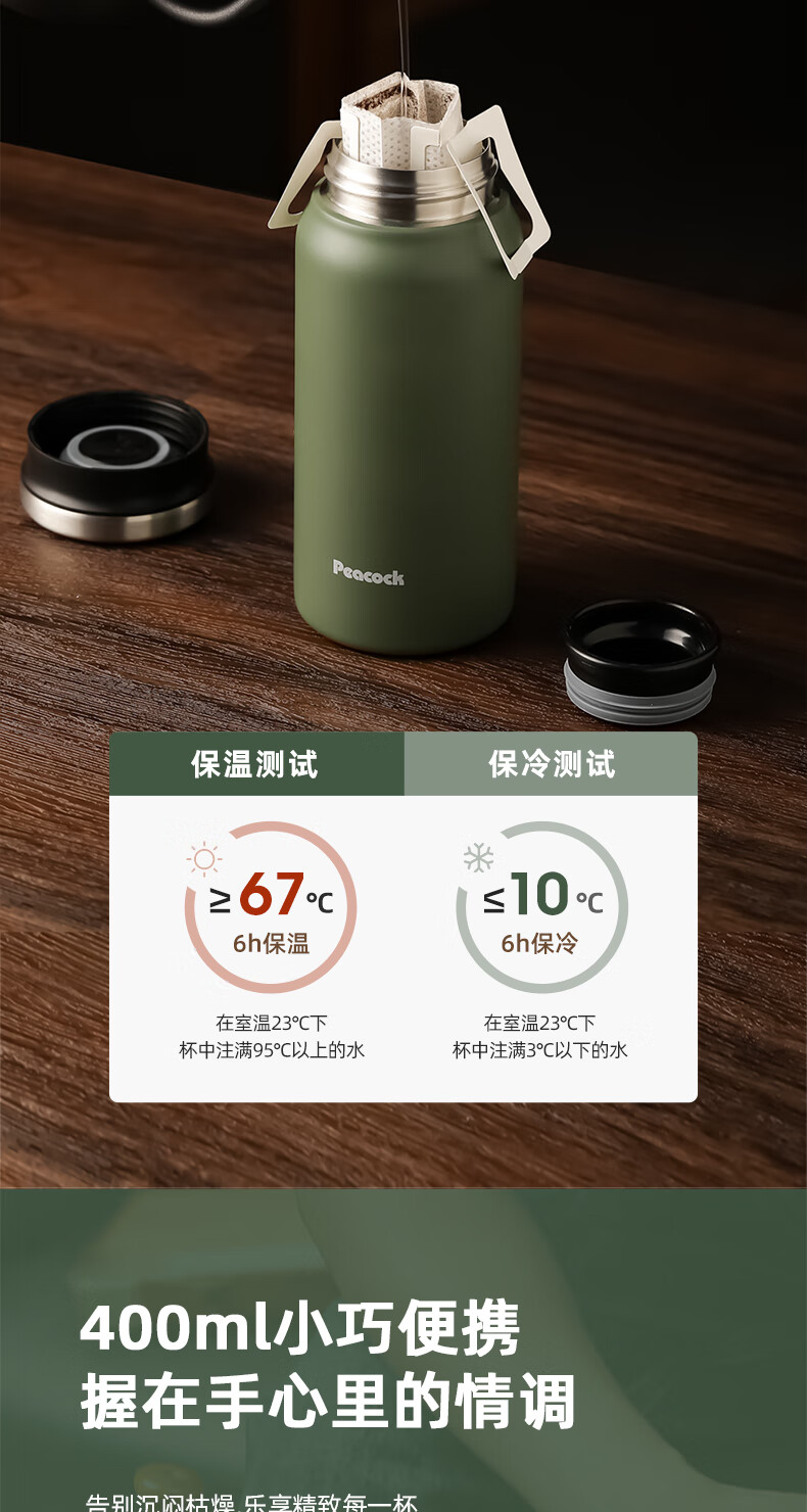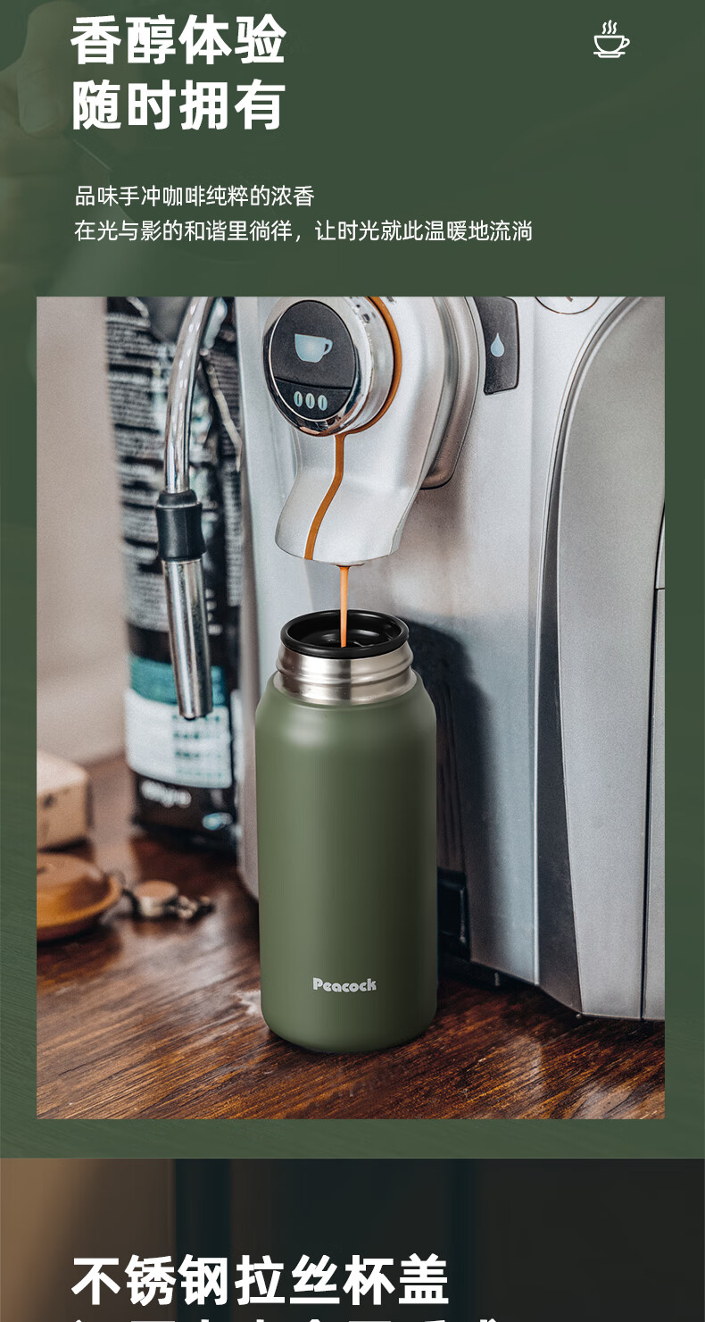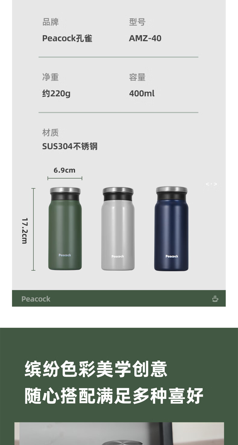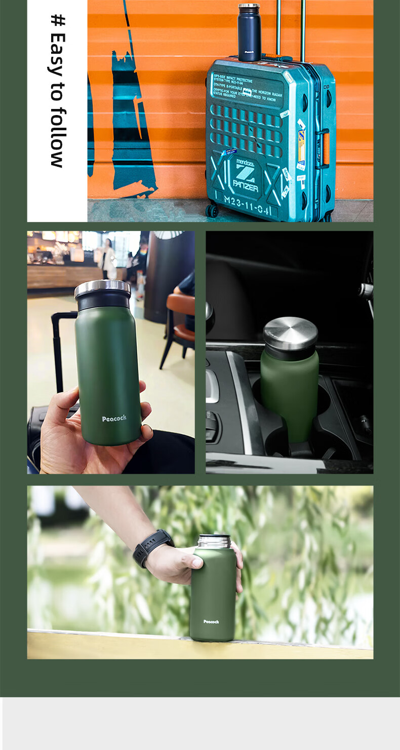孔雀(Peacock)保温杯 送男士直身杯便携不锈钢水杯学生杯子