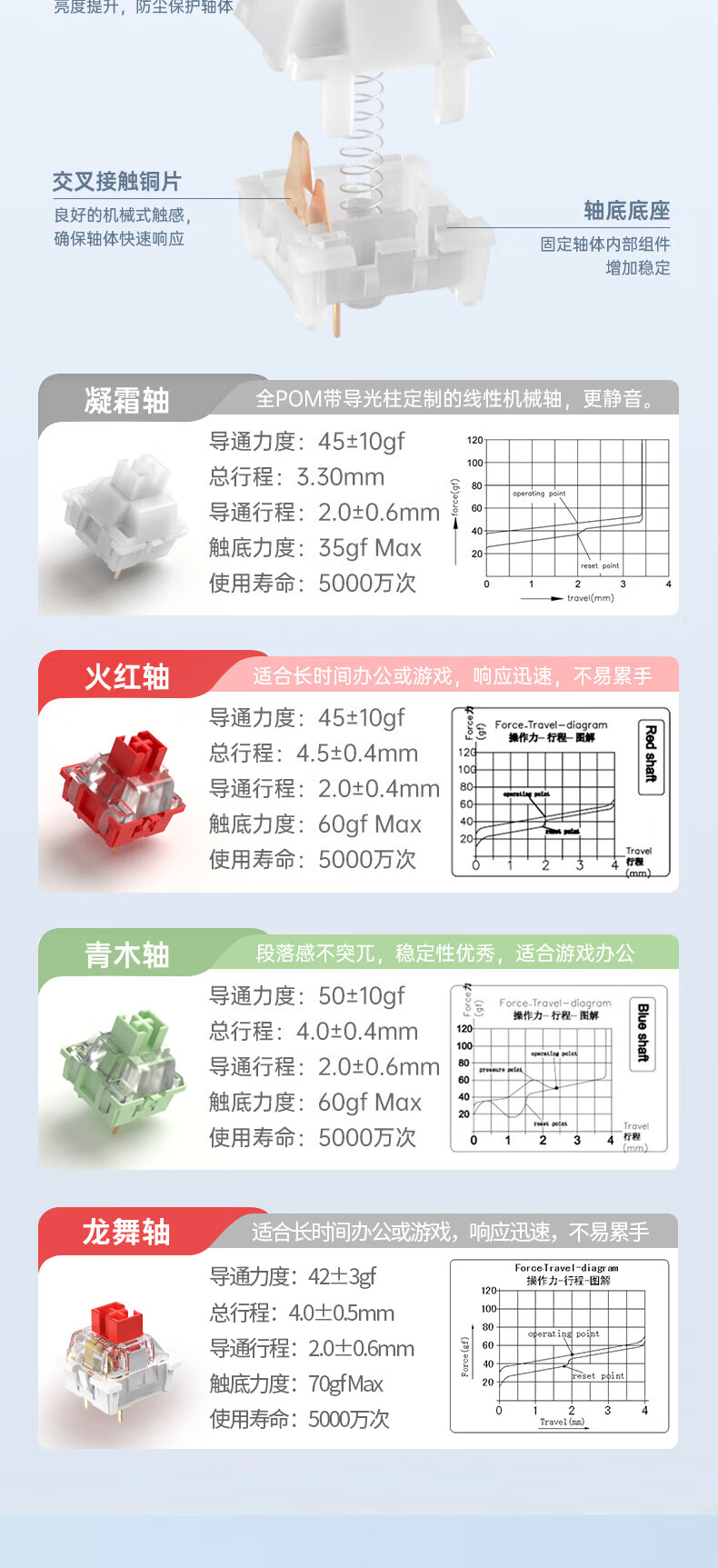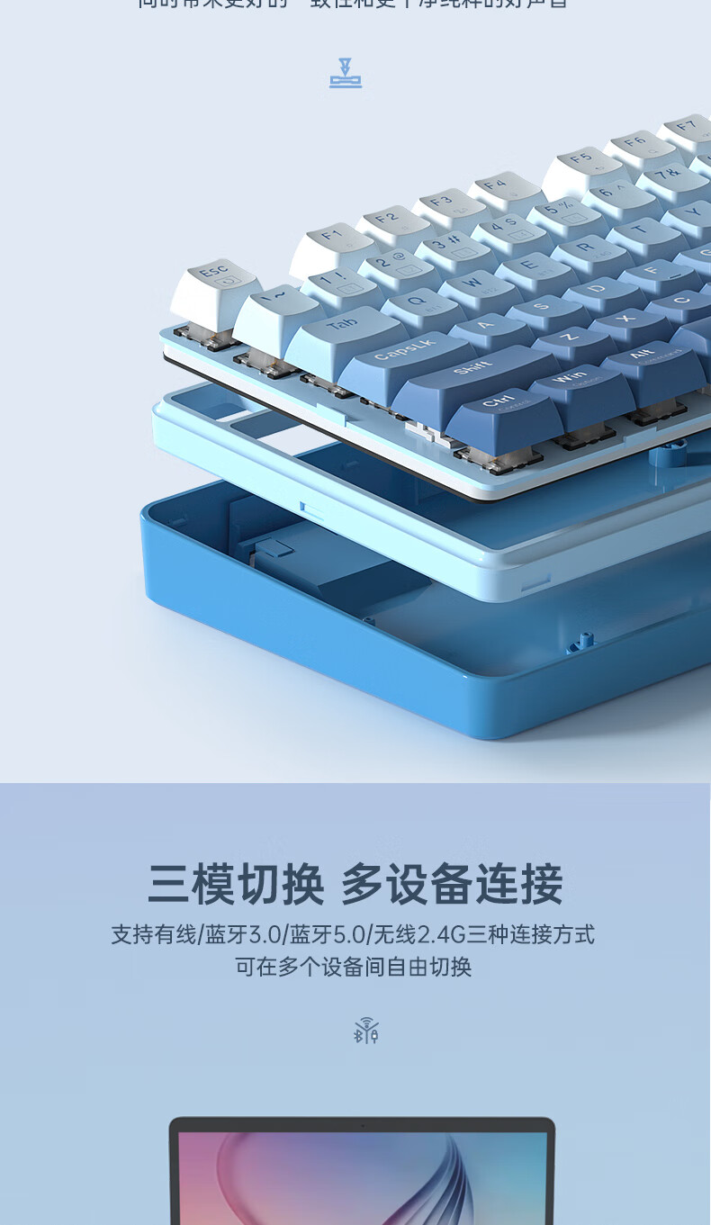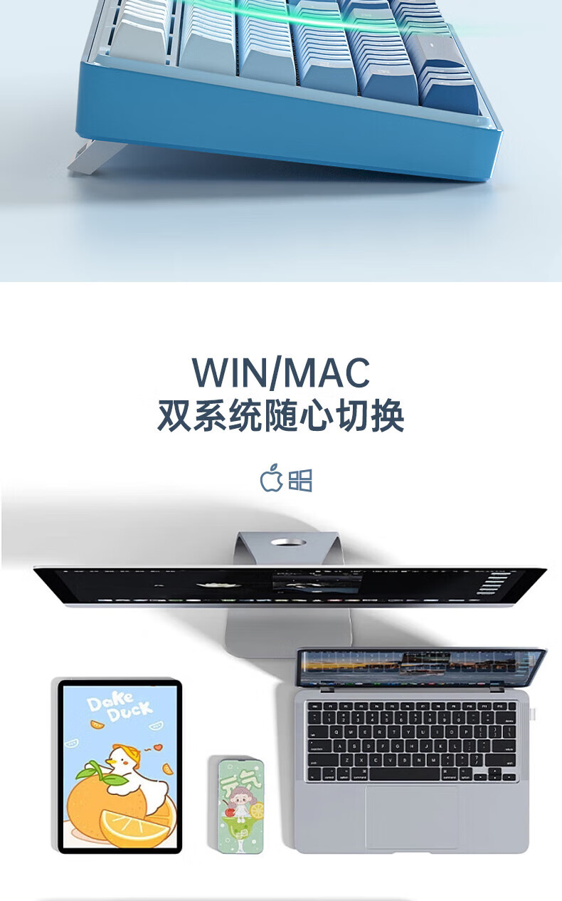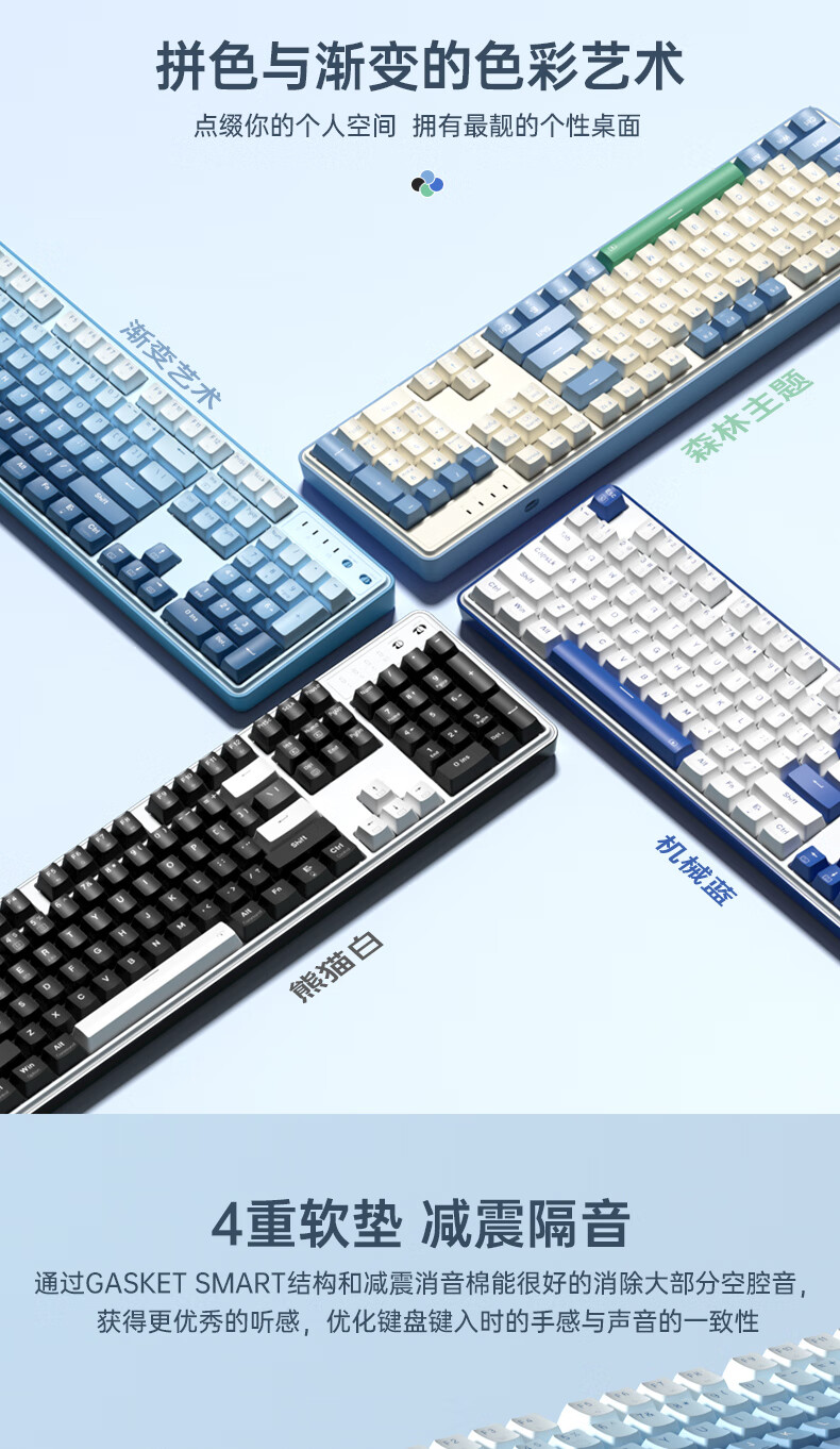 红龙(REDRAGON)KS104-B 机械键盘 有线键盘 全键热插拔PBT键帽全键无冲104键游戏办公键盘 白蓝-青木轴