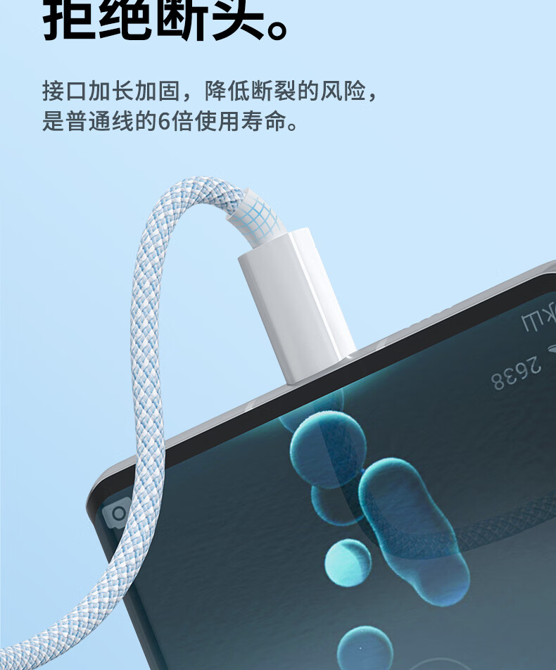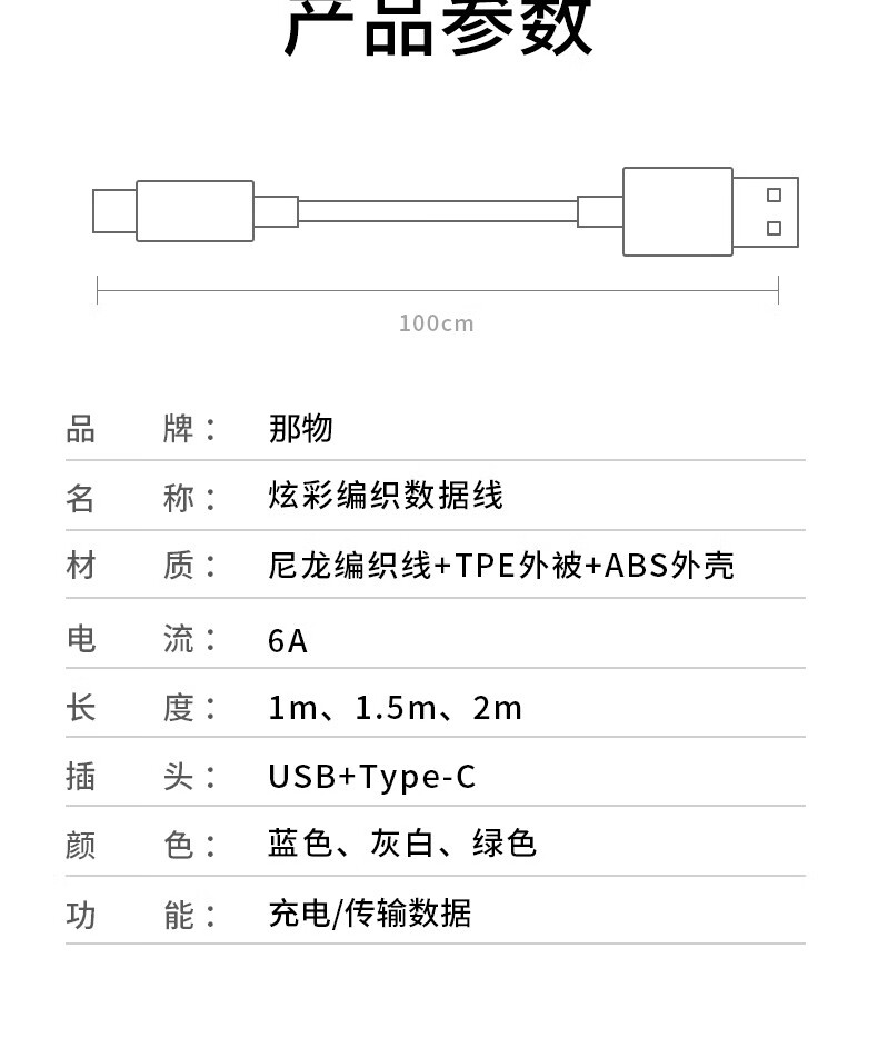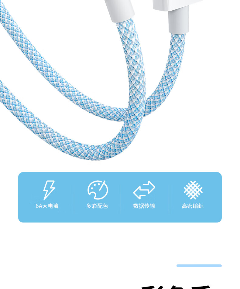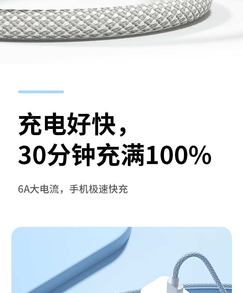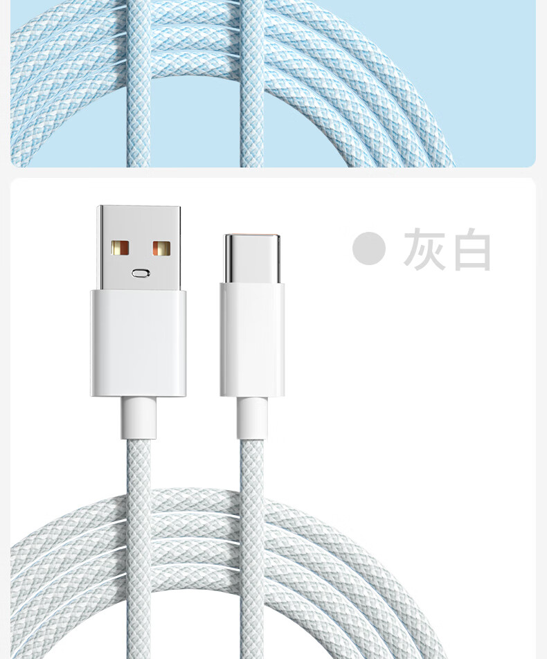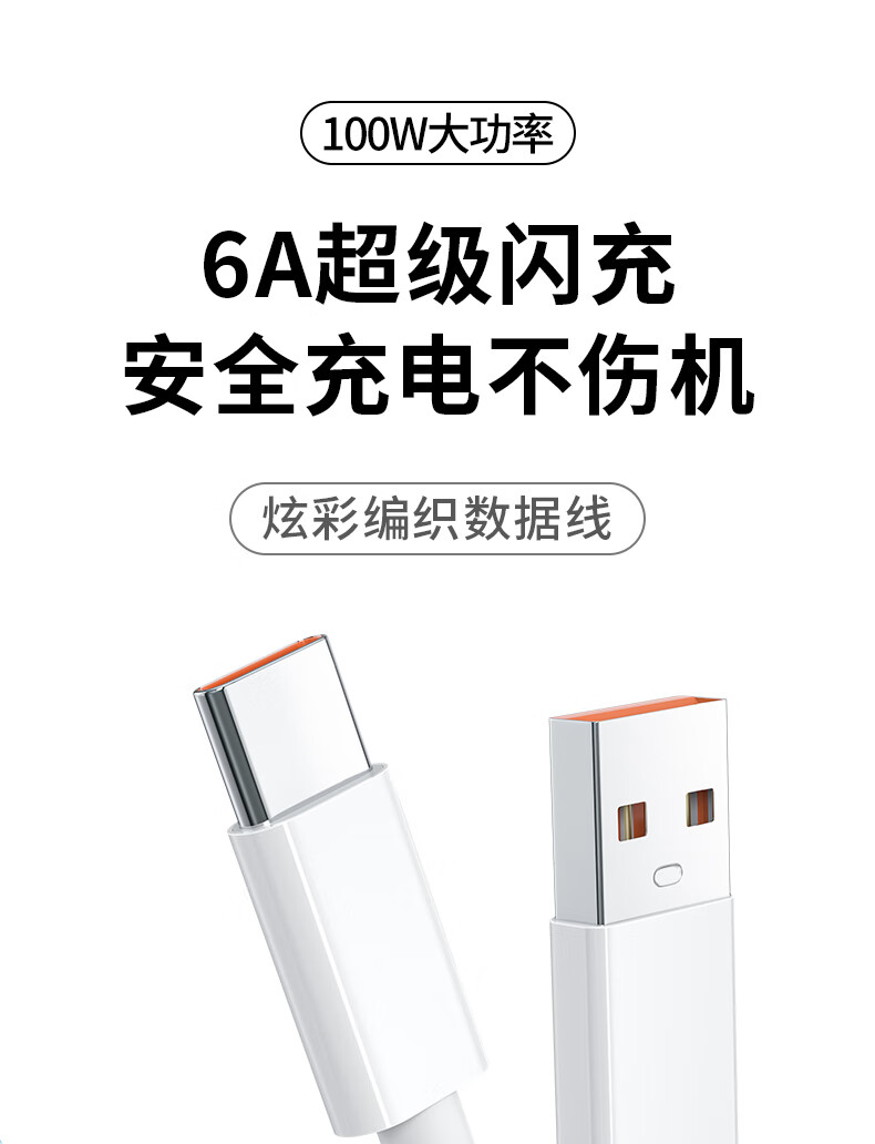 那物充电线Type-C数据线100w超级快充线6A编织防折断USB-C加粗耐用车载适用华为荣耀小米vivo手机oppo 一条装【白色】100W/88W/66W超级快充 1米