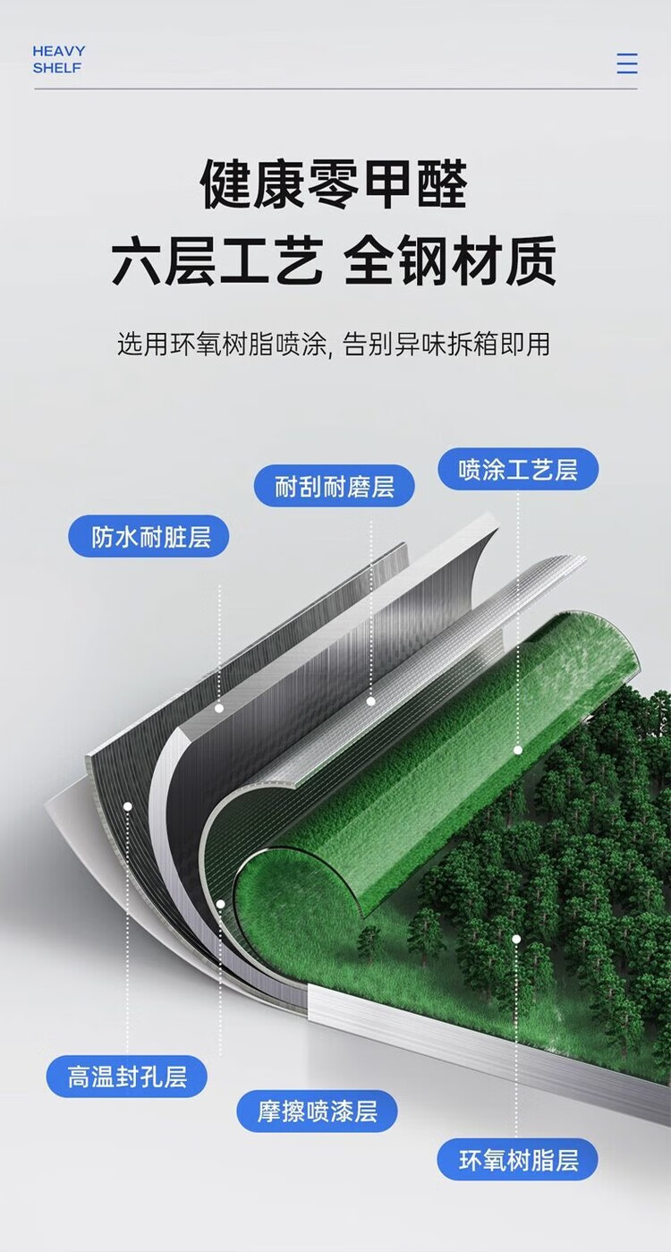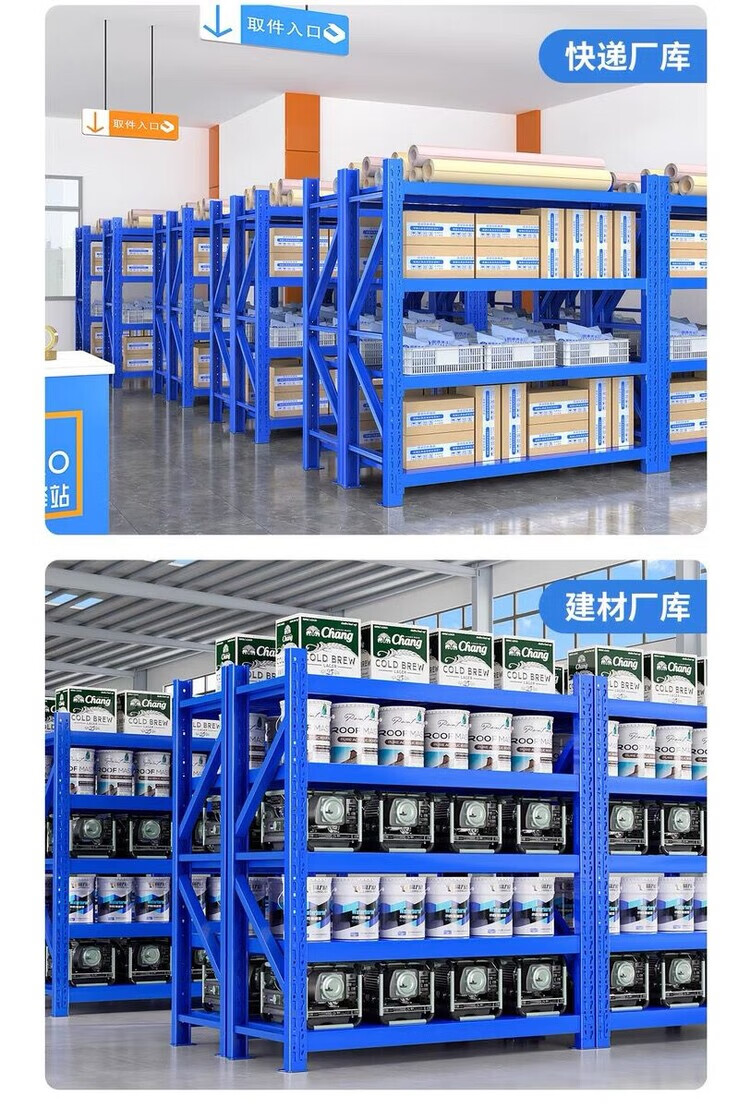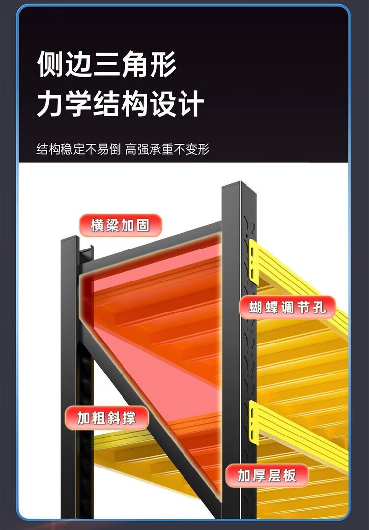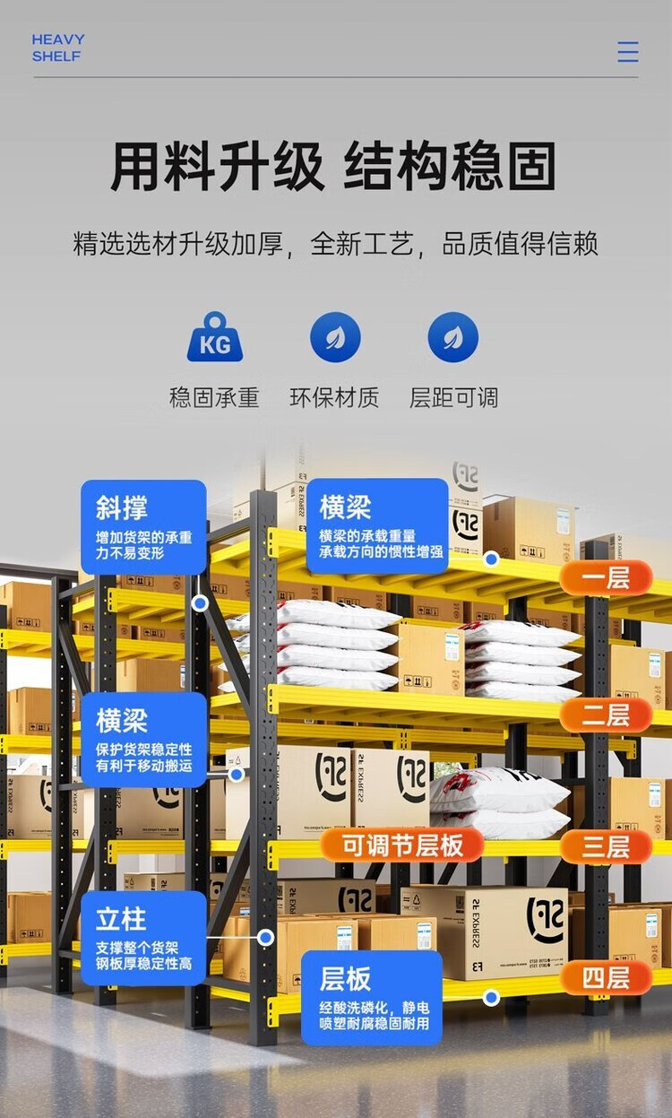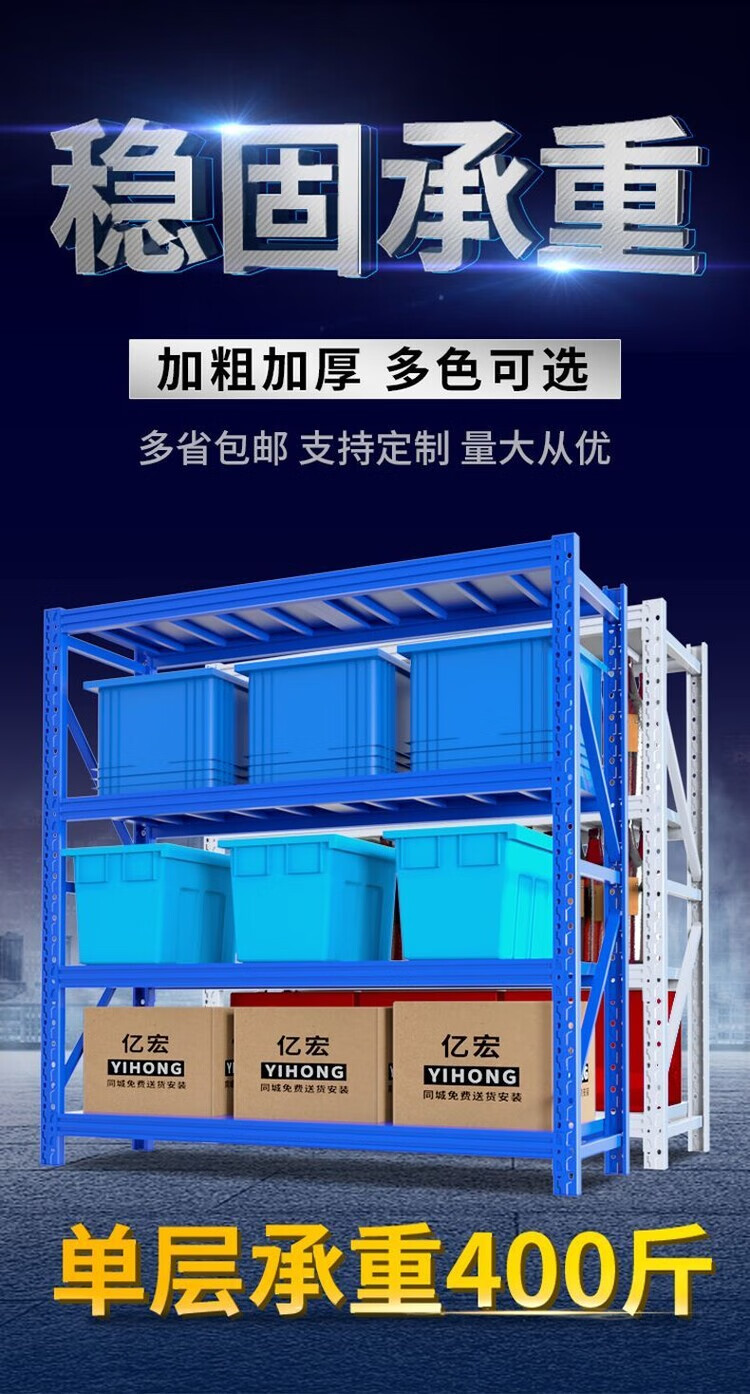 海诗圣堡货架置物架中型多层仓储货架仓库货架重型货架展示架货物架铁架子 【加厚】蓝色3层主架 长80宽40高198每层150KG