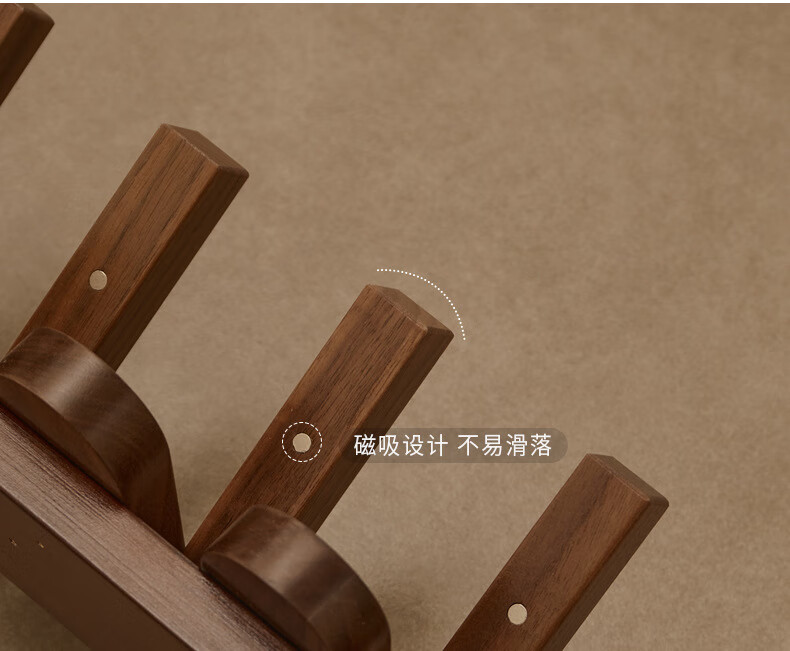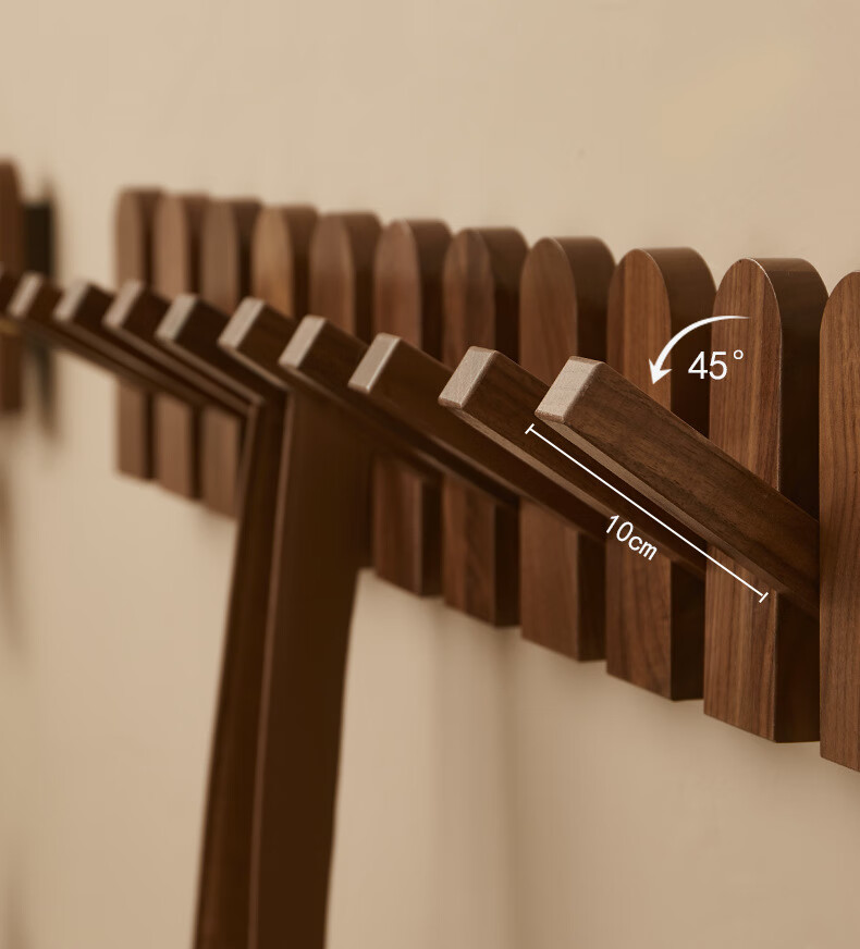 尔思家高端实木衣帽架入户玄关挂衣架室内墙上免打孔高级感钢琴键挂衣架 北美FAS级黑胡桃/4钩