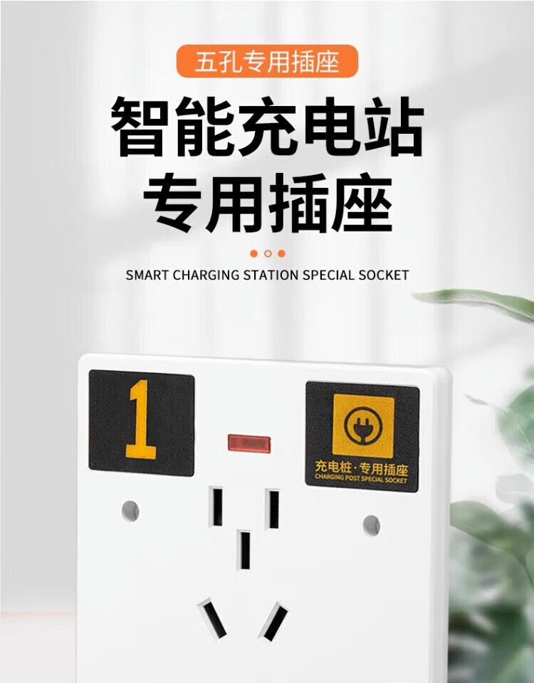国际电工86型电动车充电桩充电站户外专用防水防雨充电插座明暗装五孔十孔 【斜面明装】五孔带灯-可贴编号