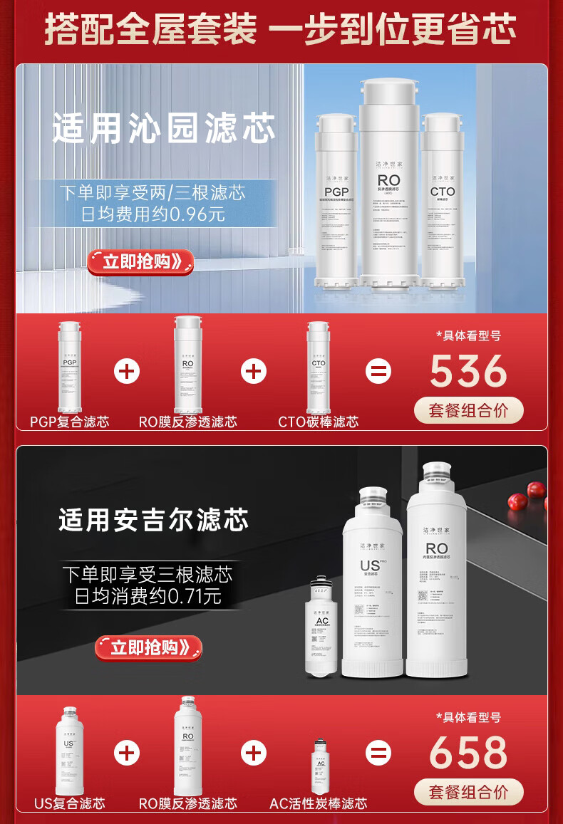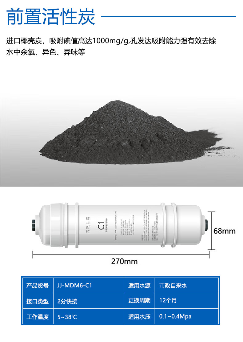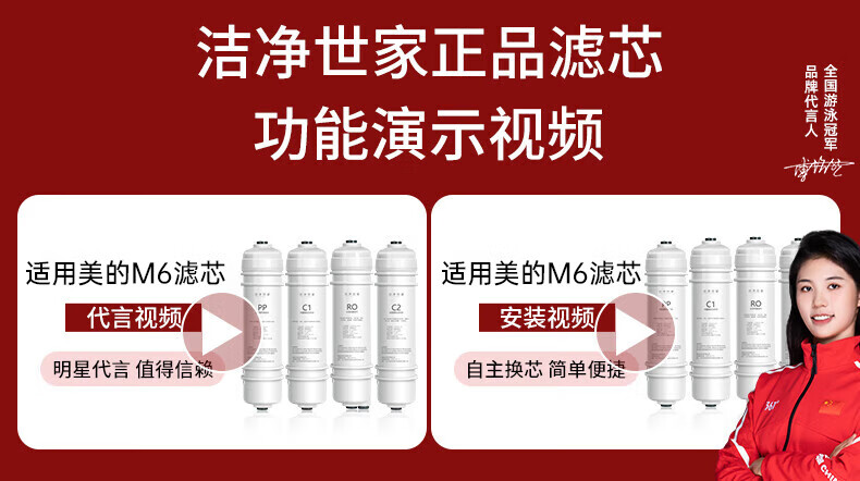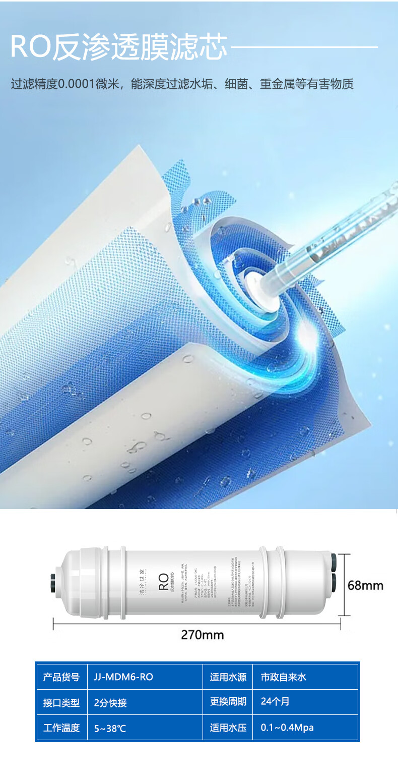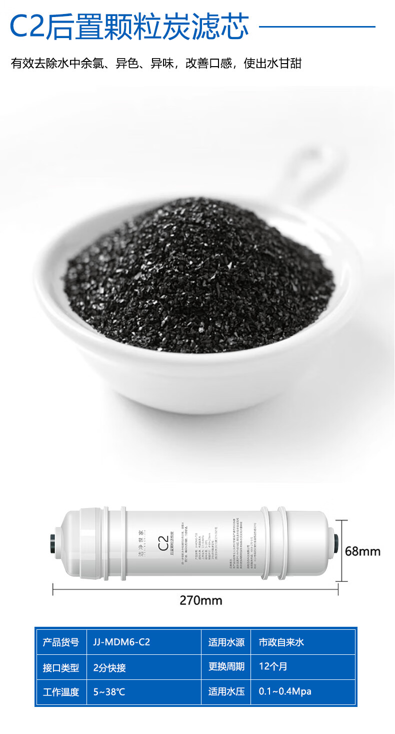 洁净世家适用美的净水器滤芯M6系列PP滤芯C1前置活性炭C2后置活性炭RO反渗透膜全套净水机滤芯 MRC1586-50G【全套4支】