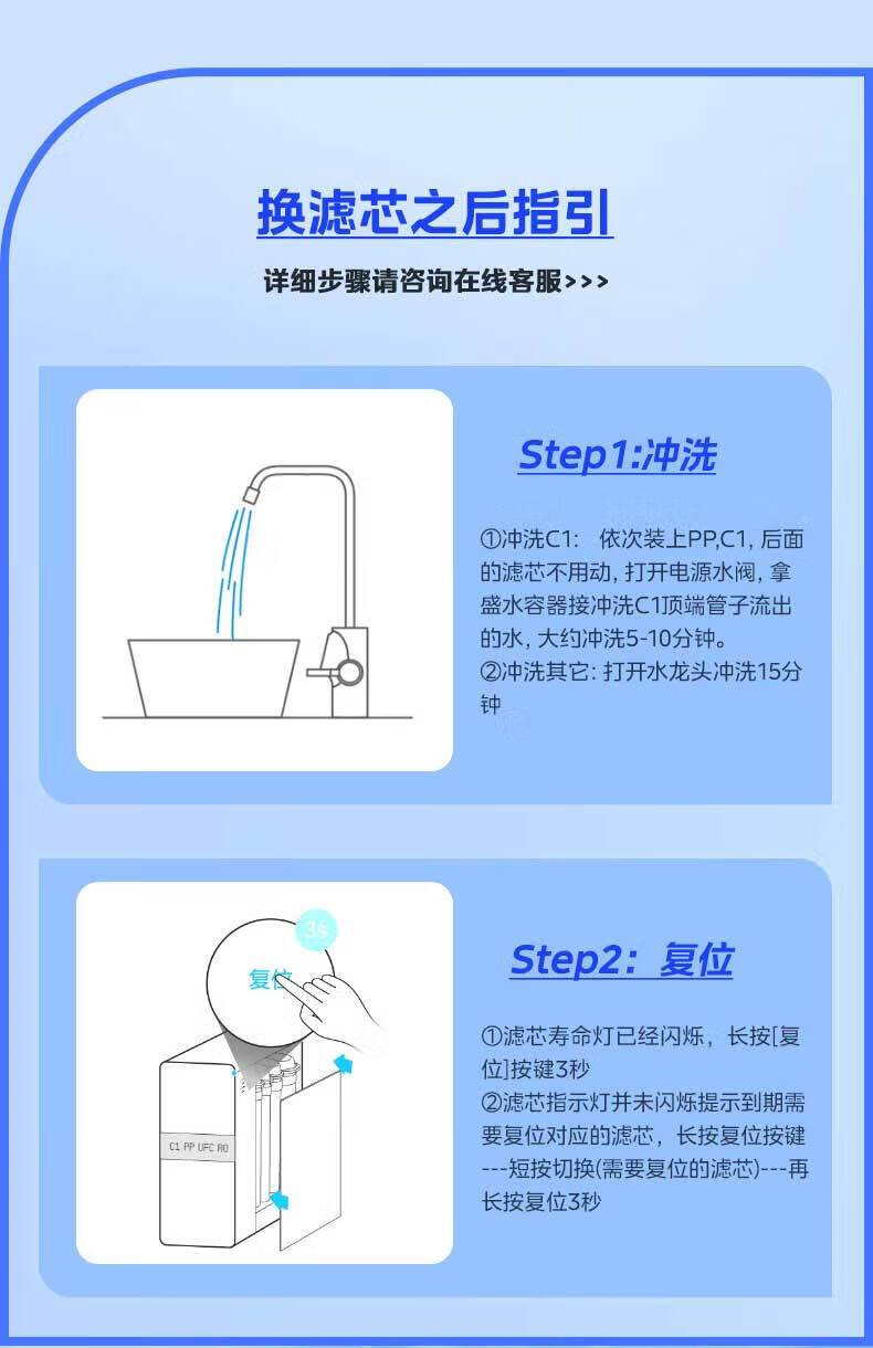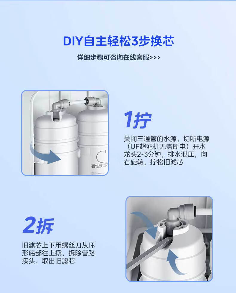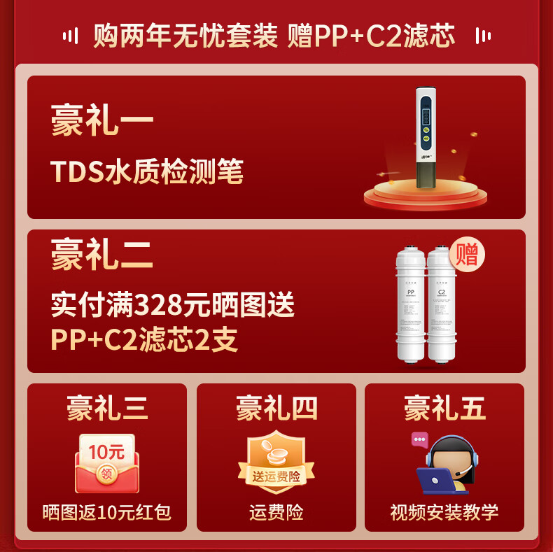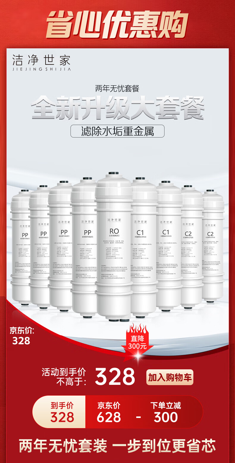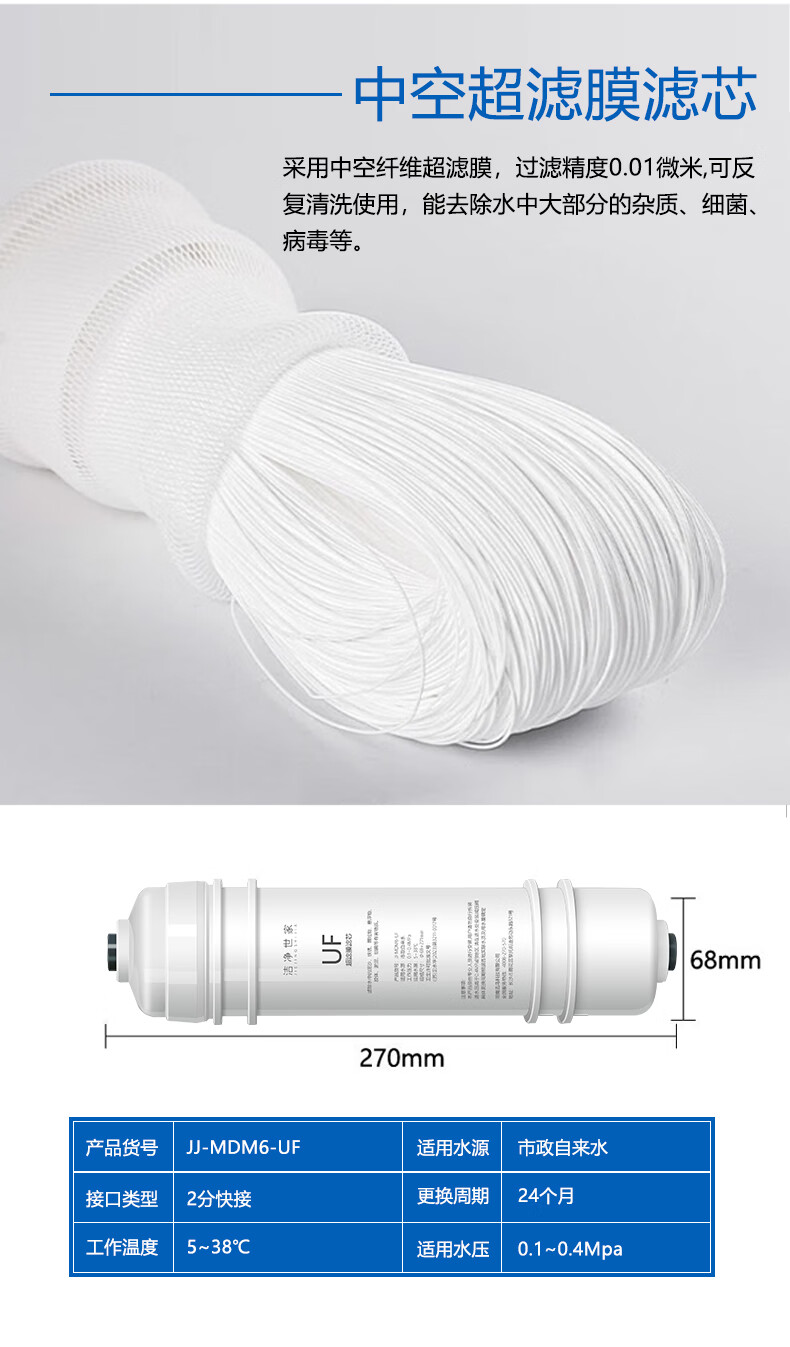 洁净世家适用美的净水器滤芯M6系列PP滤芯C1前置活性炭C2后置活性炭RO反渗透膜全套净水机滤芯 MRC1586-50G【全套4支】