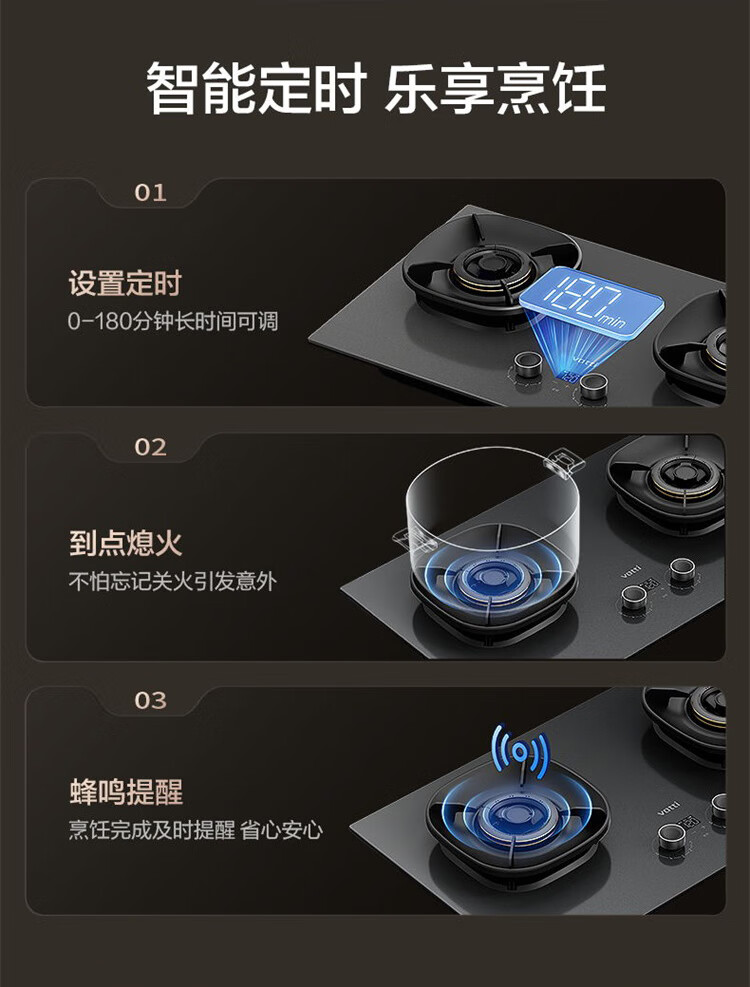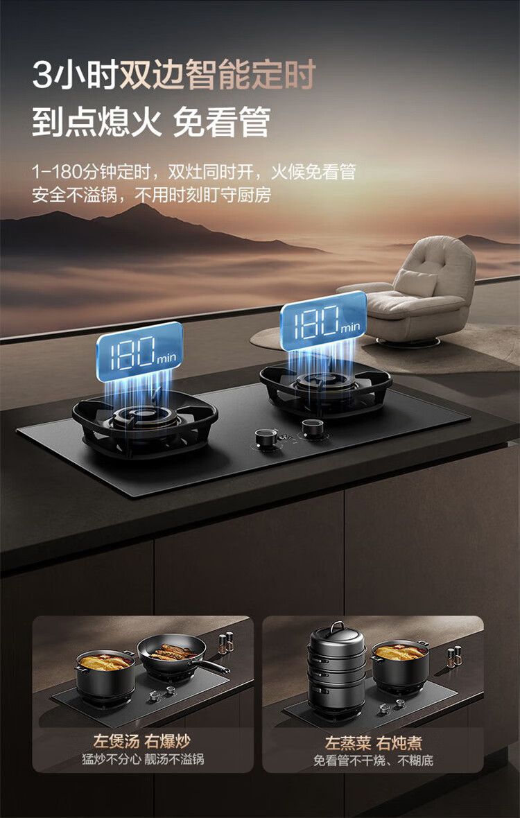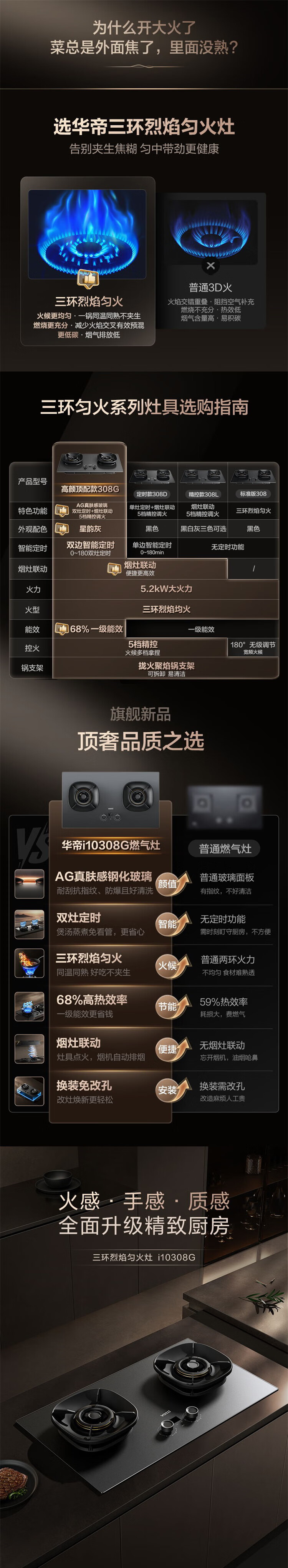 华帝(VATTI)【小飞碟Max】国家补贴双边定时燃气灶天然气专用嵌入式5.2kW猛火AG玻璃煤气炉双灶台灶具i10308G