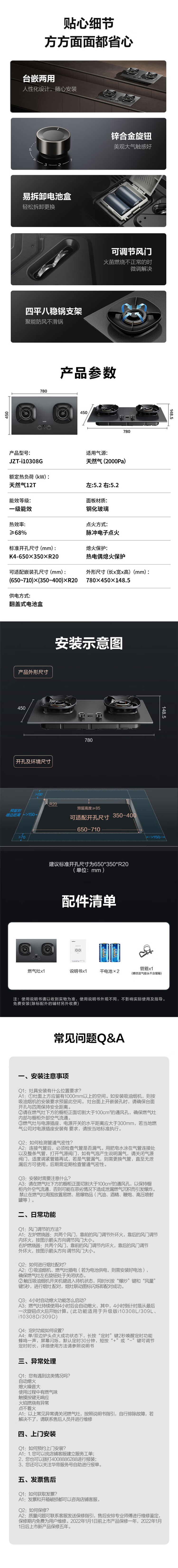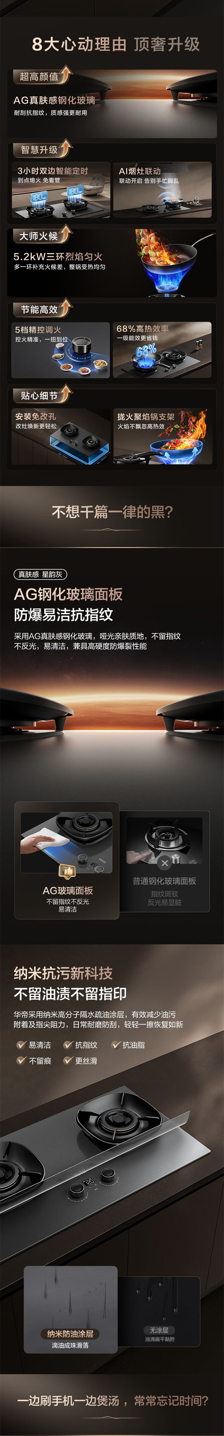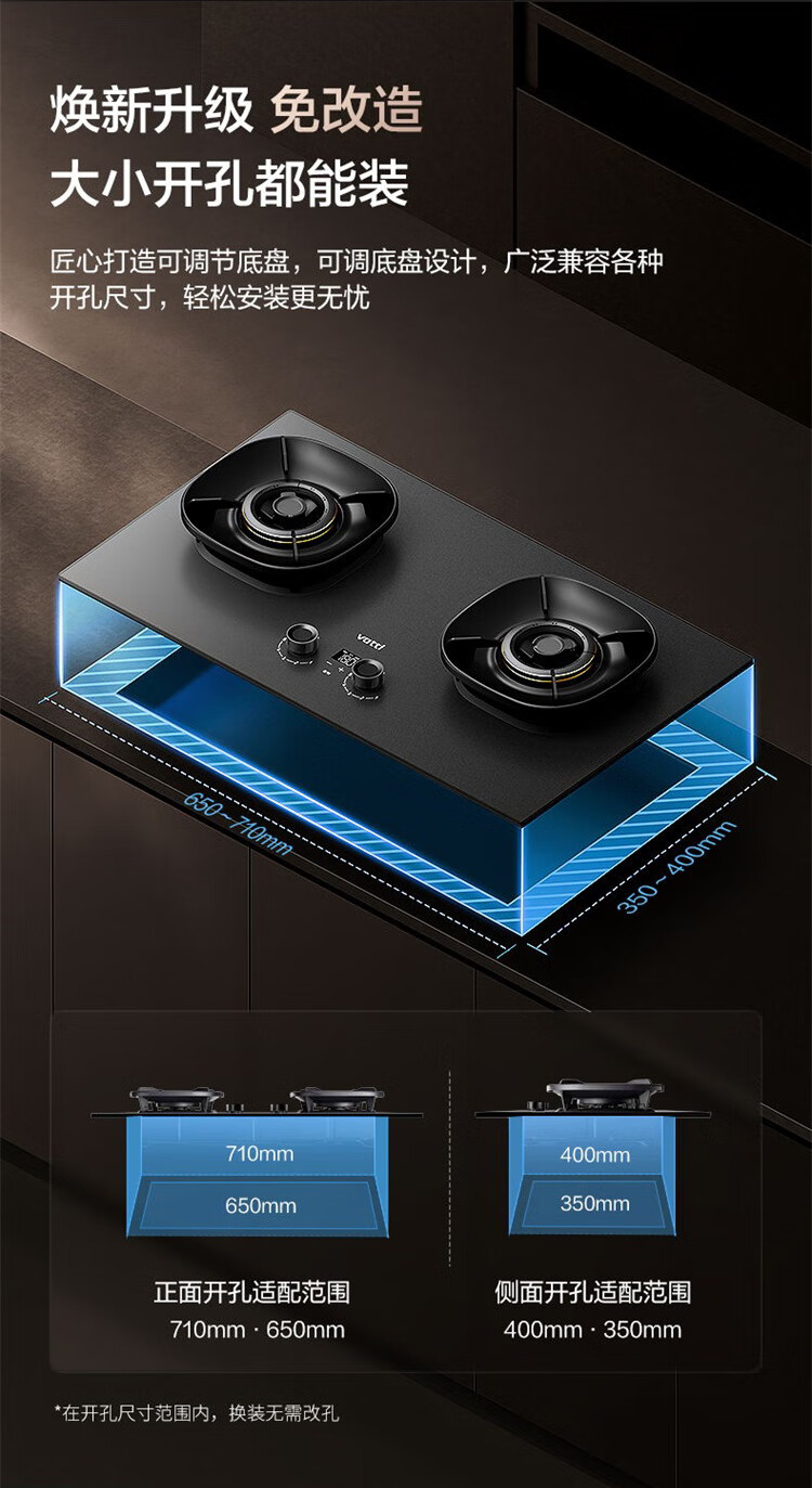 华帝(VATTI)【小飞碟Max】国家补贴双边定时燃气灶天然气专用嵌入式5.2kW猛火AG玻璃煤气炉双灶台灶具i10308G