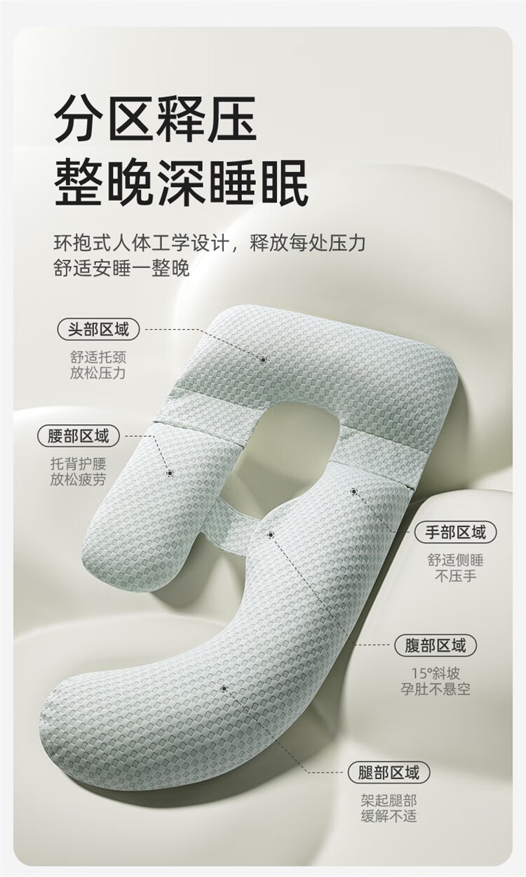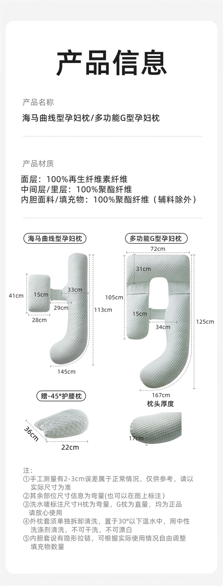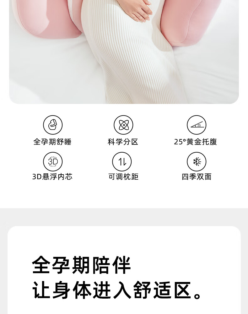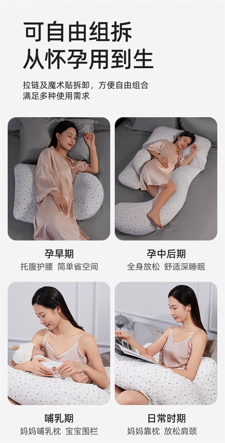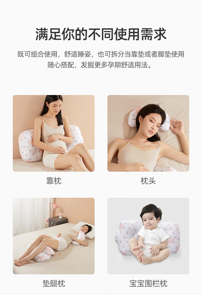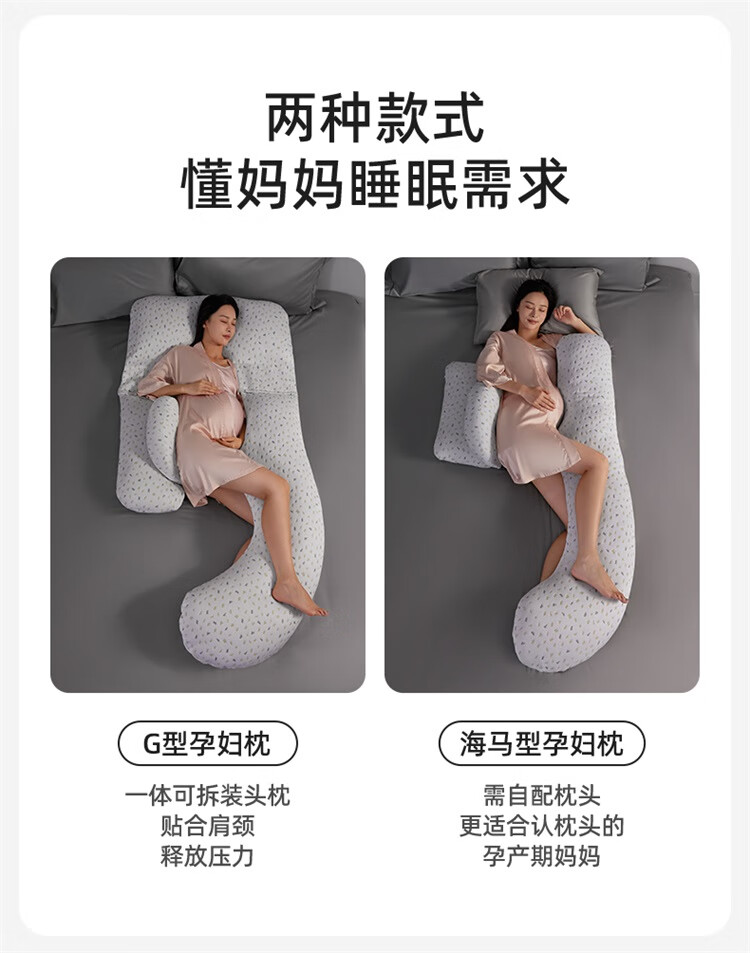 十月结晶孕妇枕头护腰侧睡枕托腹睡觉神器侧卧枕怀孕期G型抱枕 【双面悬浮芯】静逸粉