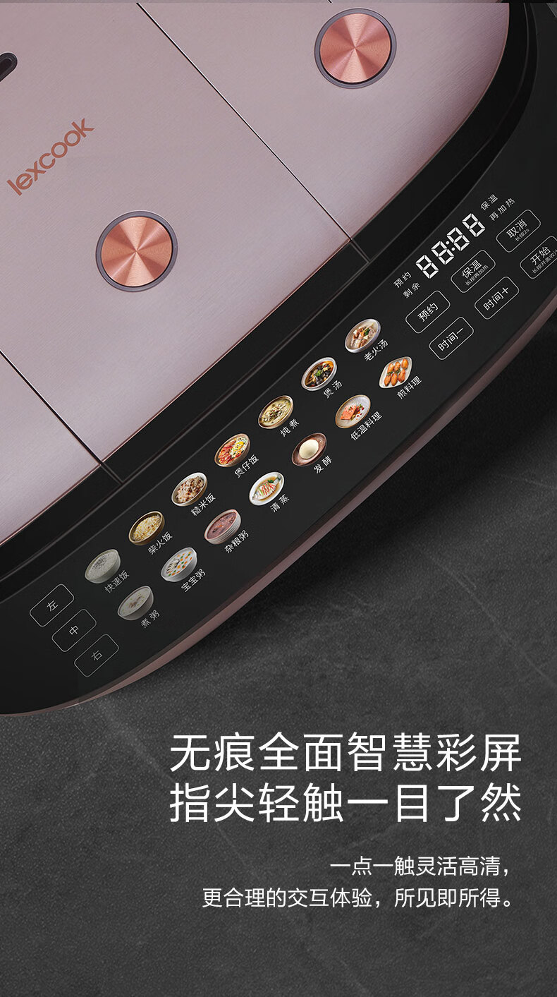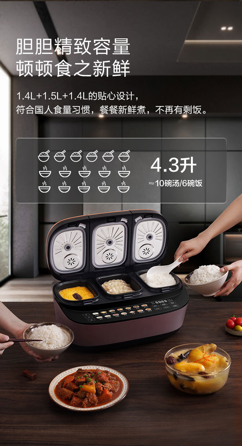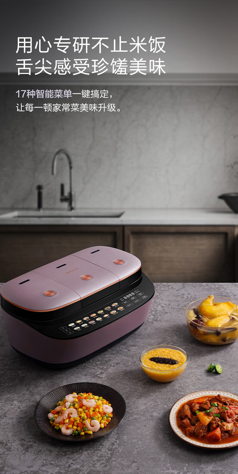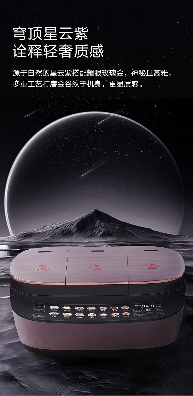 莱小厨(Lexcook)微压电饭煲三拼三胆电饭锅家用智能可预约4.3L蒸煮煲汤一体3-5人多功能煮饭锅 4.3L 星云紫