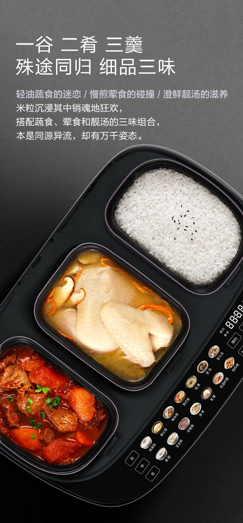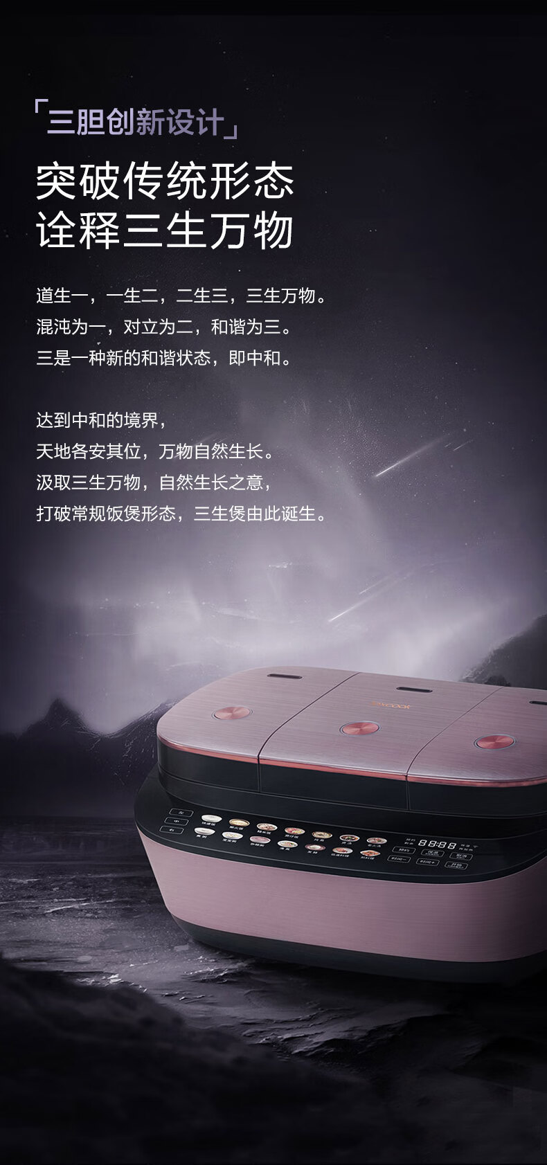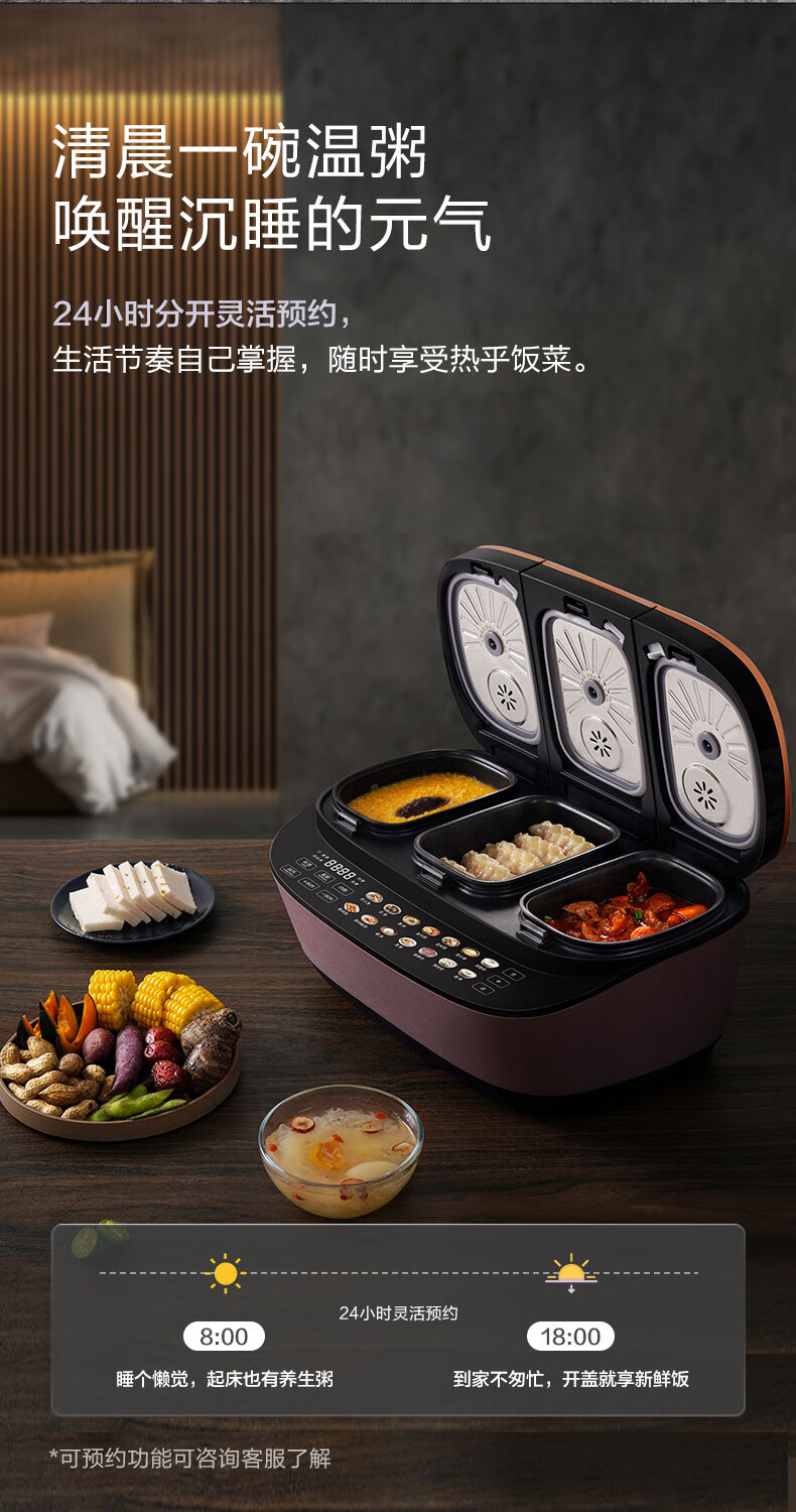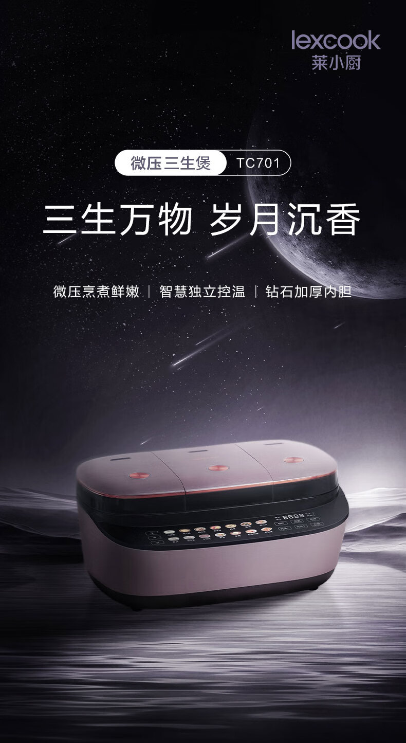 莱小厨(Lexcook)微压电饭煲三拼三胆电饭锅家用智能可预约4.3L蒸煮煲汤一体3-5人多功能煮饭锅 4.3L 星云紫