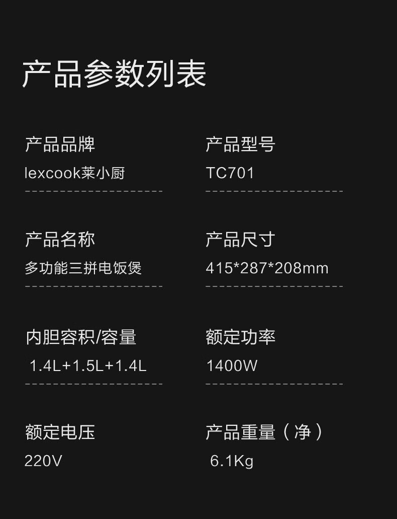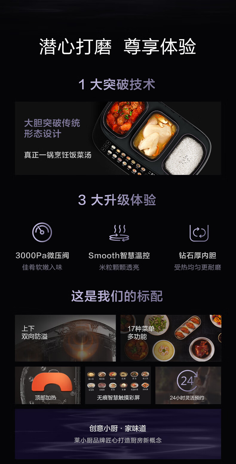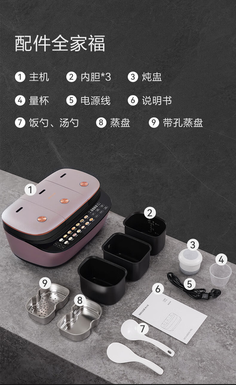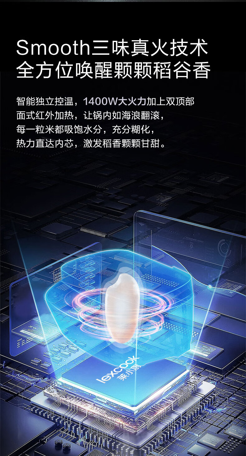 莱小厨(Lexcook)微压电饭煲三拼三胆电饭锅家用智能可预约4.3L蒸煮煲汤一体3-5人多功能煮饭锅 4.3L 星云紫
