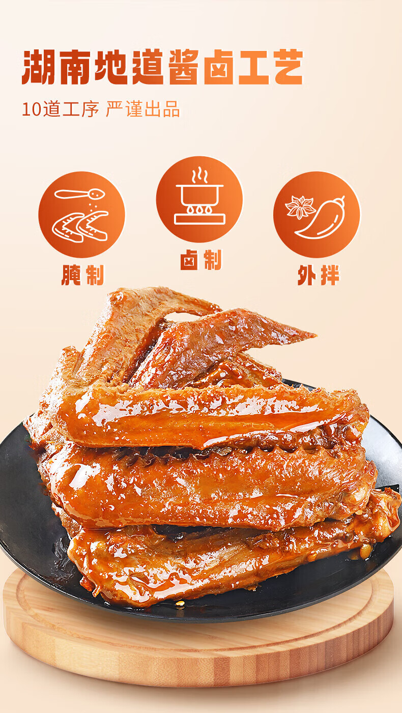 盐津铺子香卤鸭翅鸭肉熟食卤味零食夜宵下酒菜即食食品小吃解馋 180g香卤鸭翅(混合味)(10个)