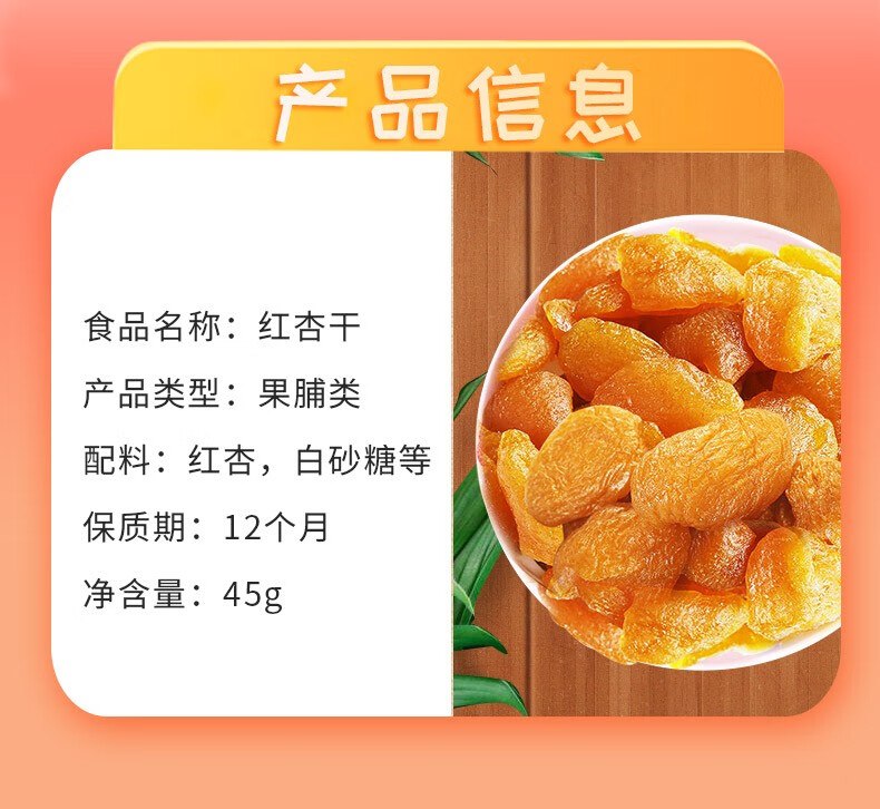 味滋源果干蜜饯果脯 酸甜可口办公室休闲小零食 红杏干45g/袋 4袋