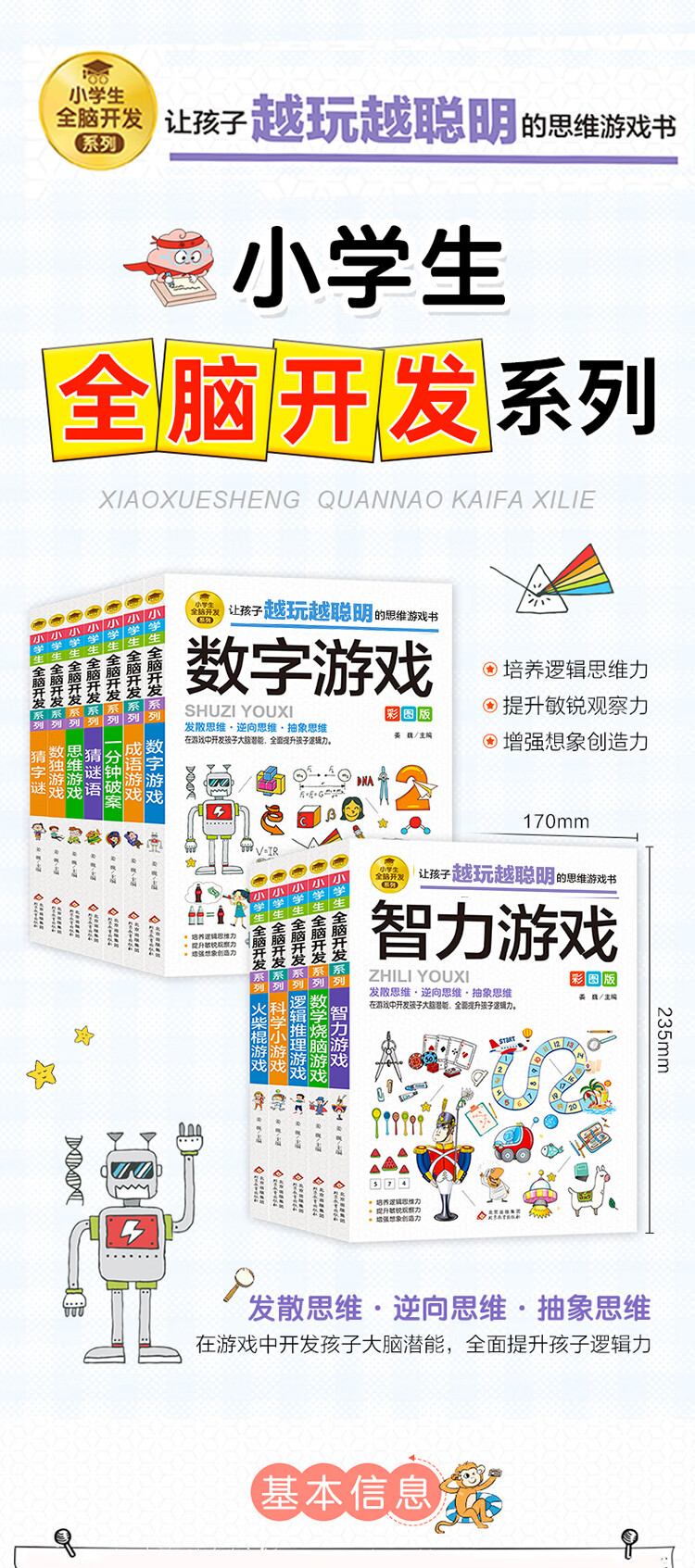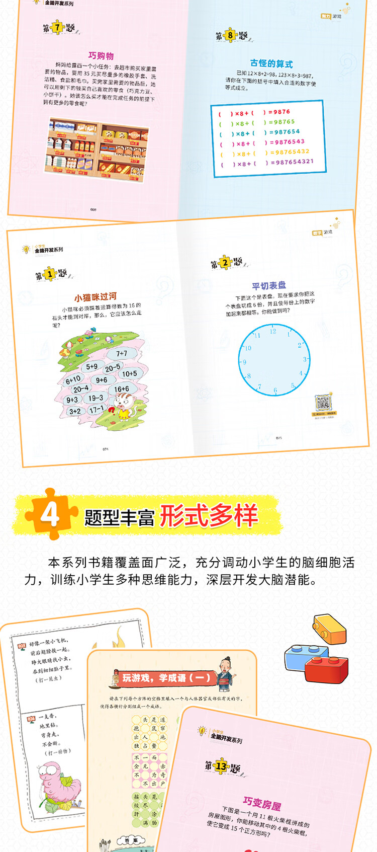 小学生全脑开发系列【13册分类自选】数独游戏+思维游戏+智力游戏+脑筋急转弯+一分钟破案+逻辑推理游戏等小学生课外阅读 逻辑推理游戏书彩图版由简入难阶梯式 6-12岁 【脑力开发4册】逻辑推理破案+逻