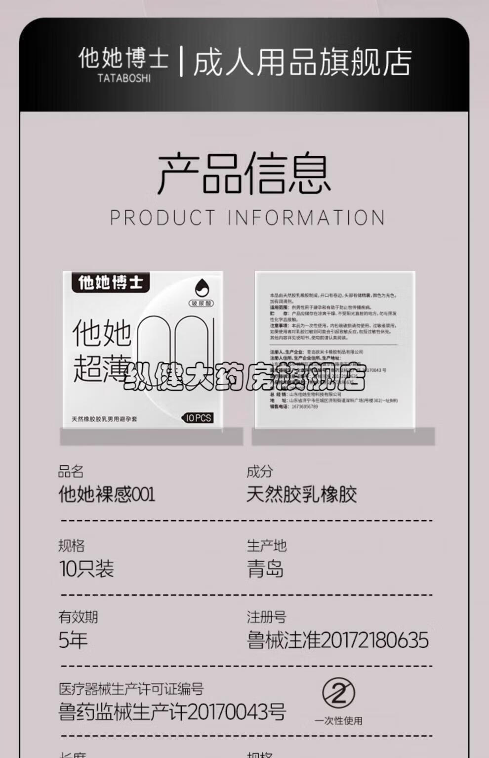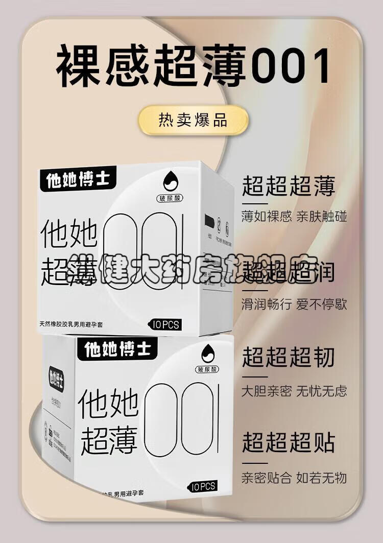 通用他她博士 零感001安全套他她001套裸感情趣男女玻尿酸 裸感001单 裸感001柔滑10只装【体验装】
