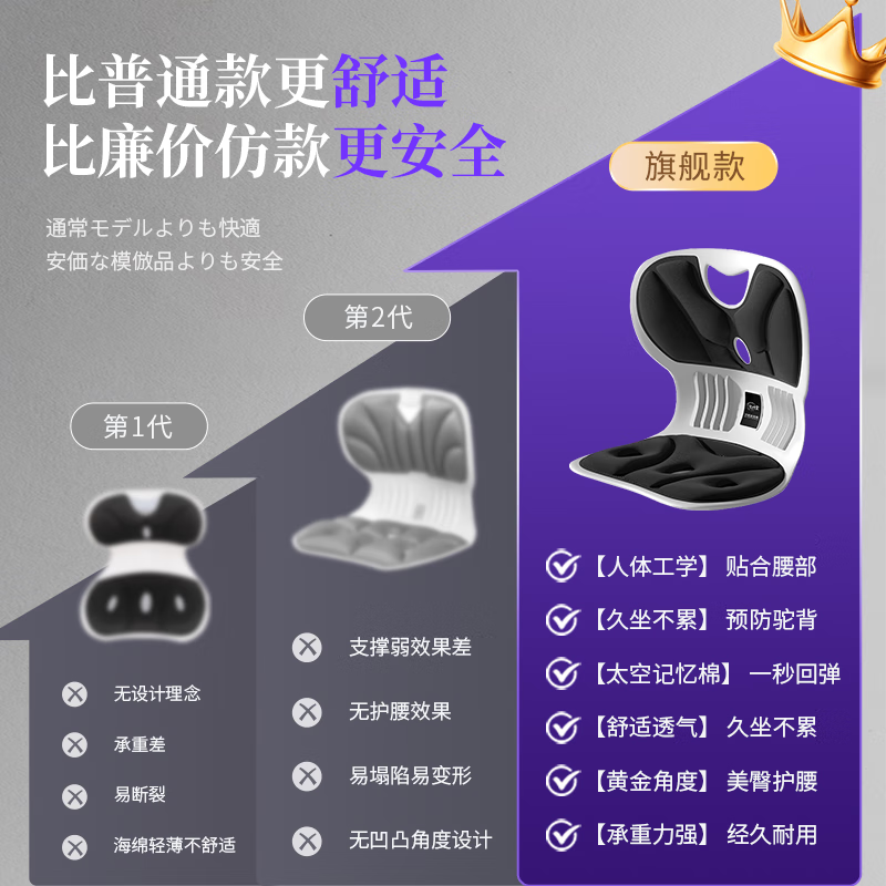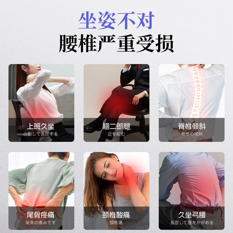 守诚堂人体工学护腰坐垫靠背一体式孕妇矫正坐姿 黑色