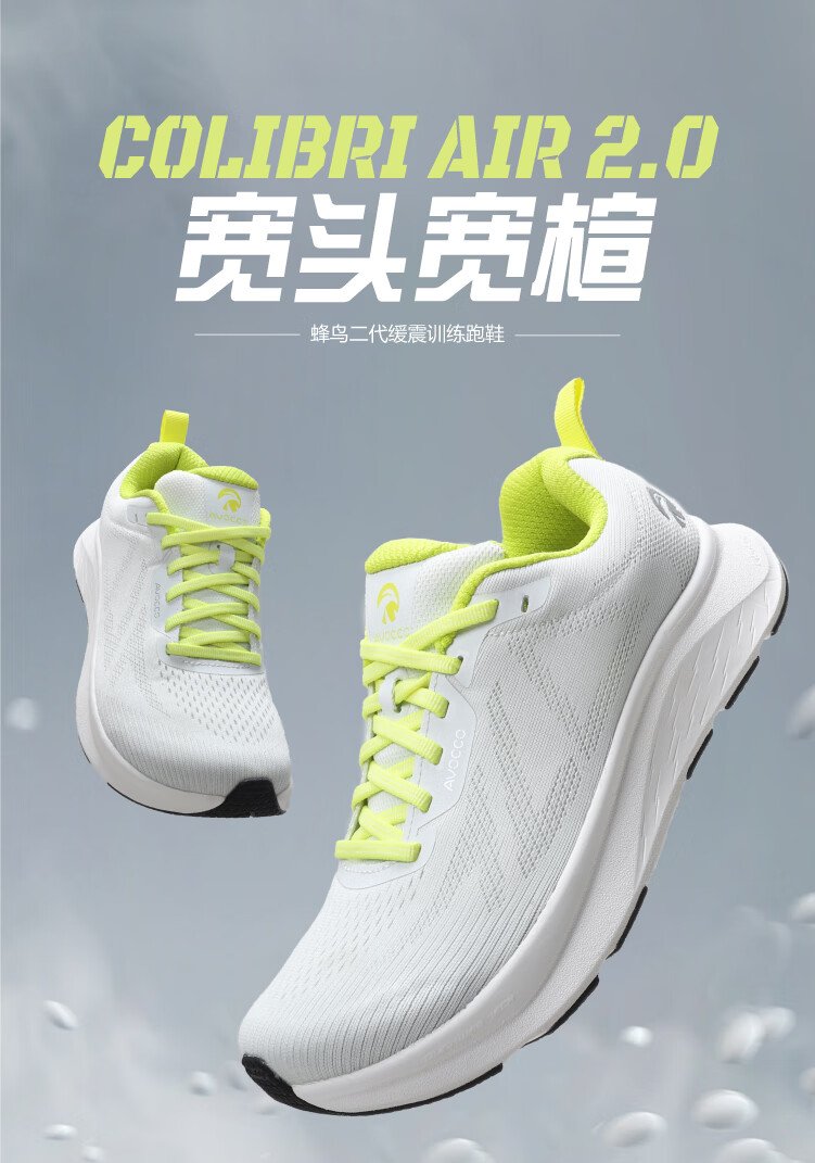 AVOCCO翱戈 跑步鞋缓震高弹透气网面宽掌宽楦运动鞋Colibri蜂鸟二代 冰川蓝 38