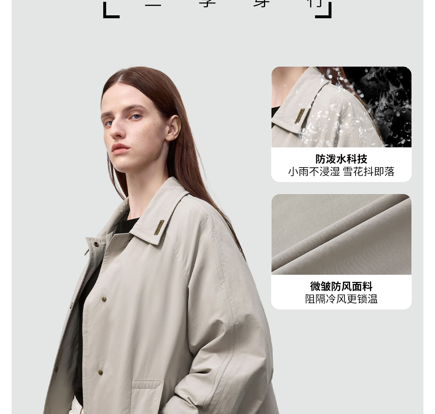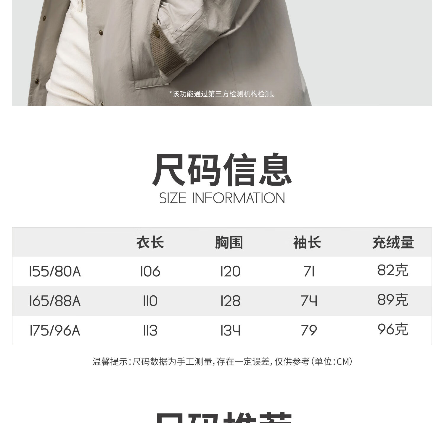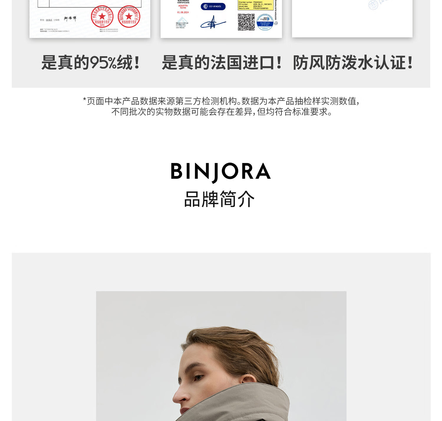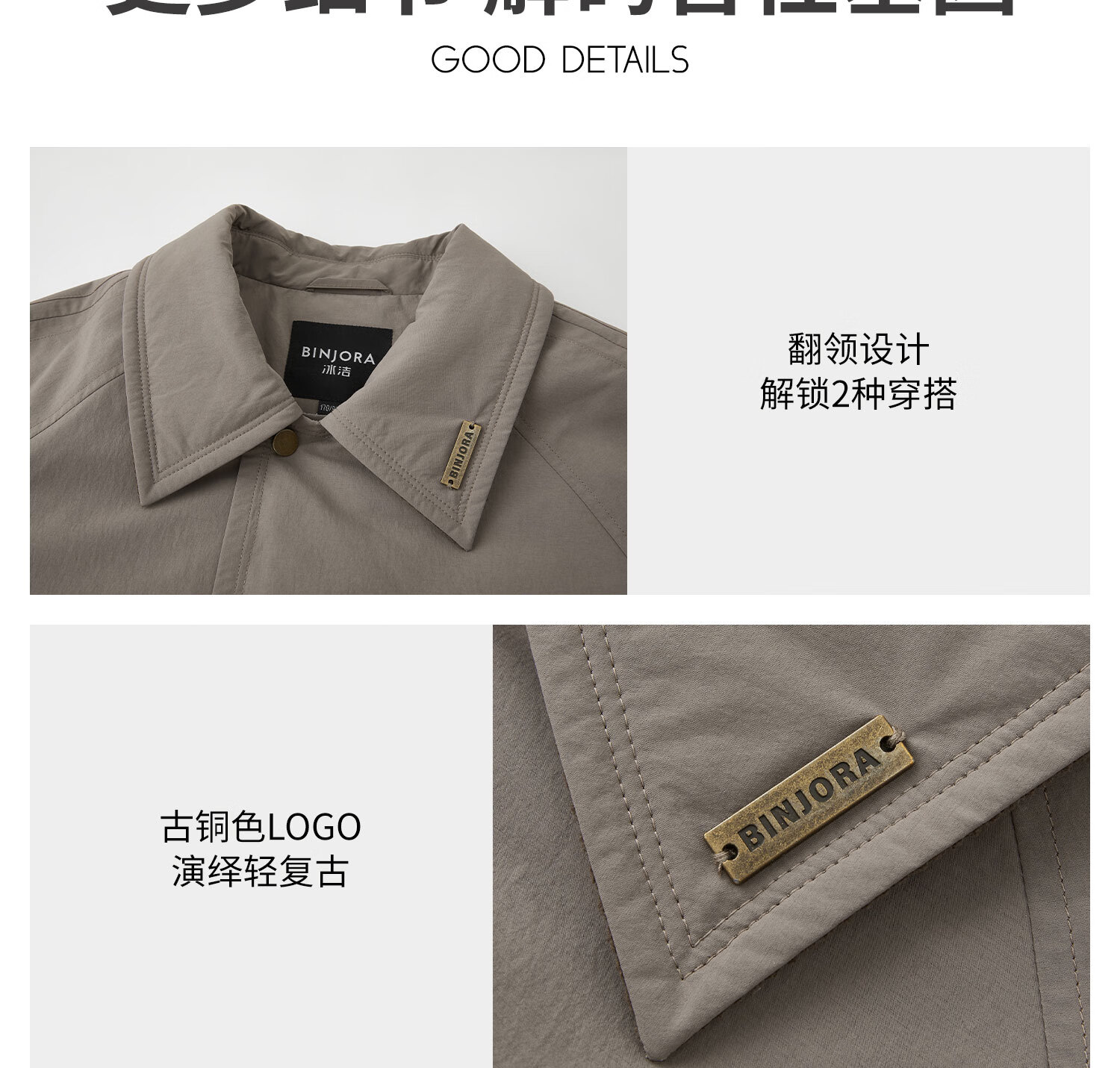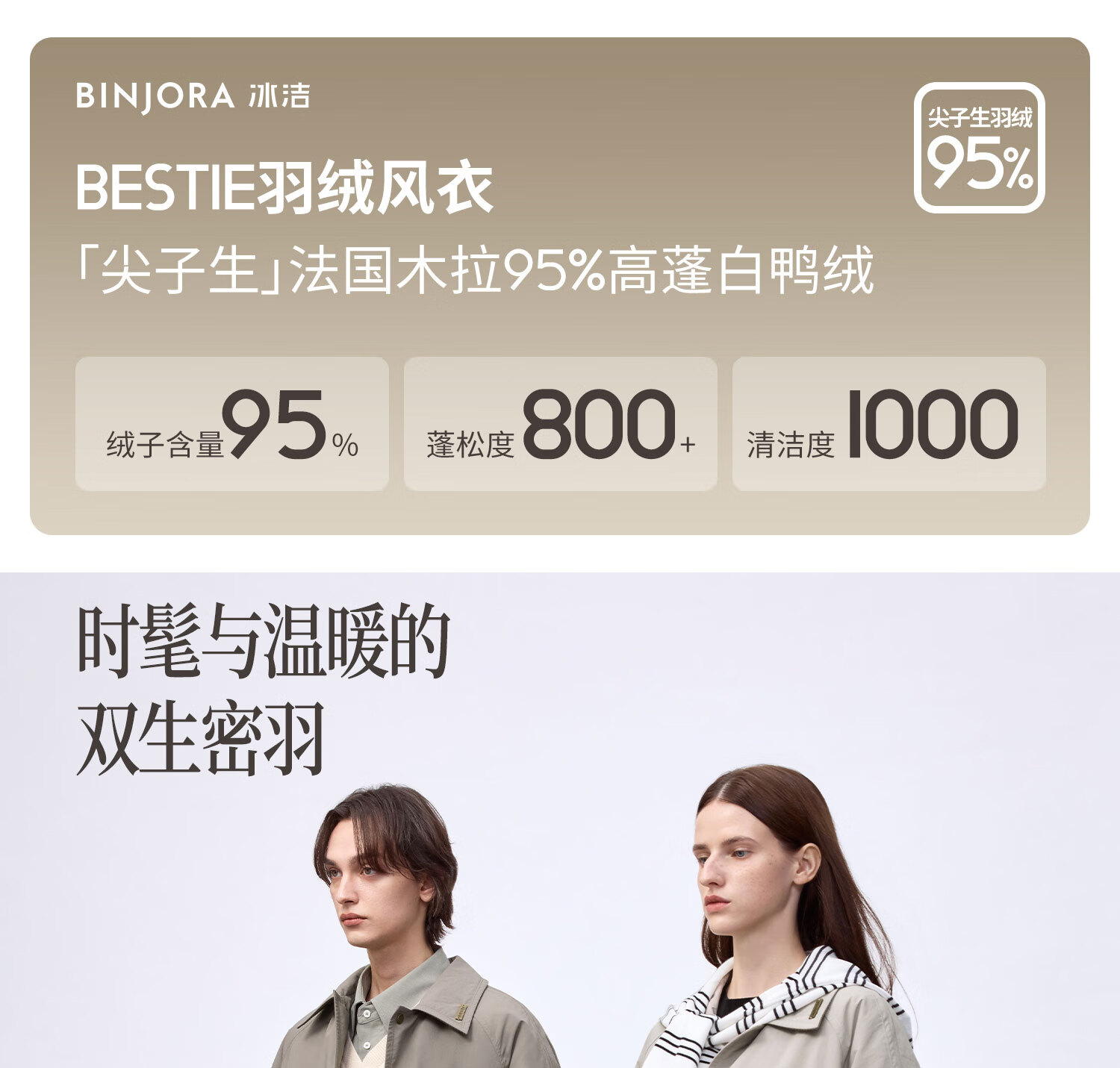 冰洁BINJORA2025秋冬新款风衣羽绒服 95鸭绒外套男女同款【明星同款】 雾漫卡其 专供 XS 155/80A 【体重约45-65KG】