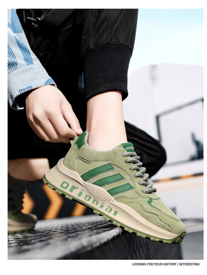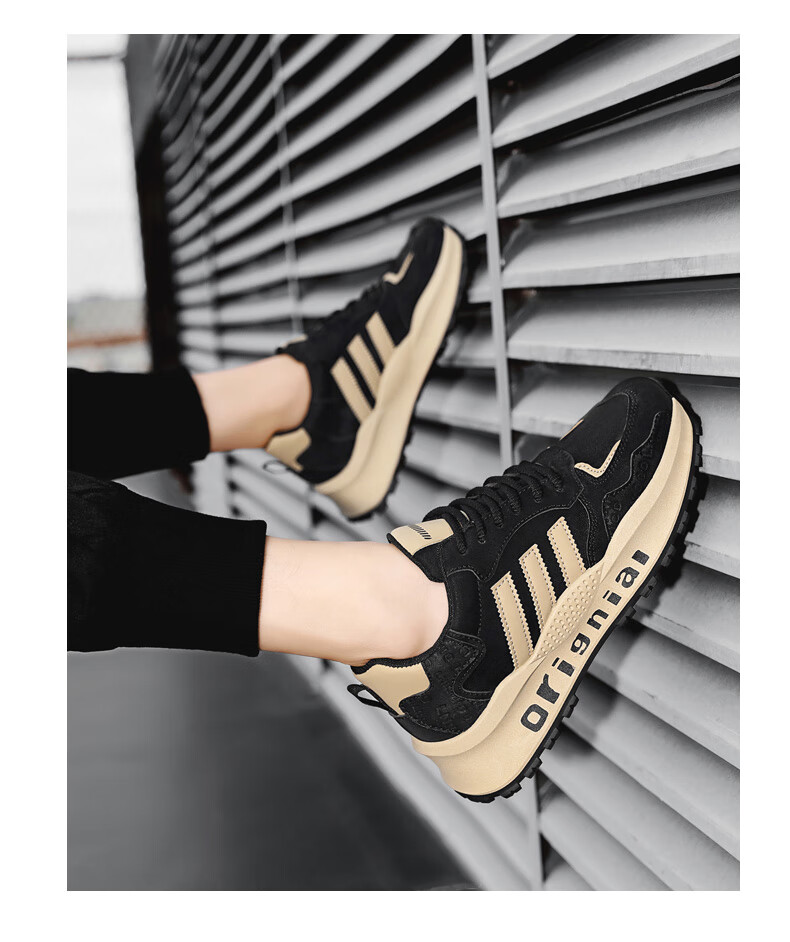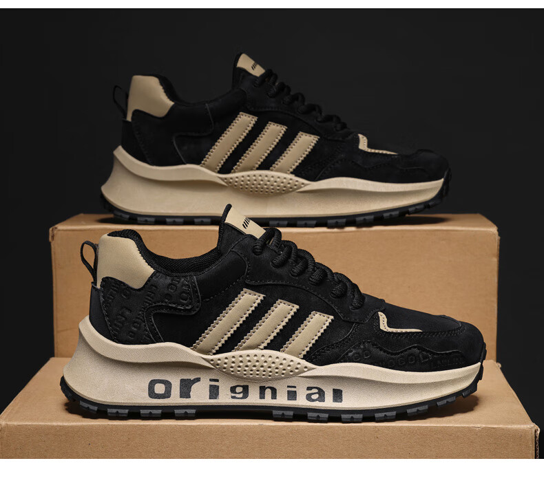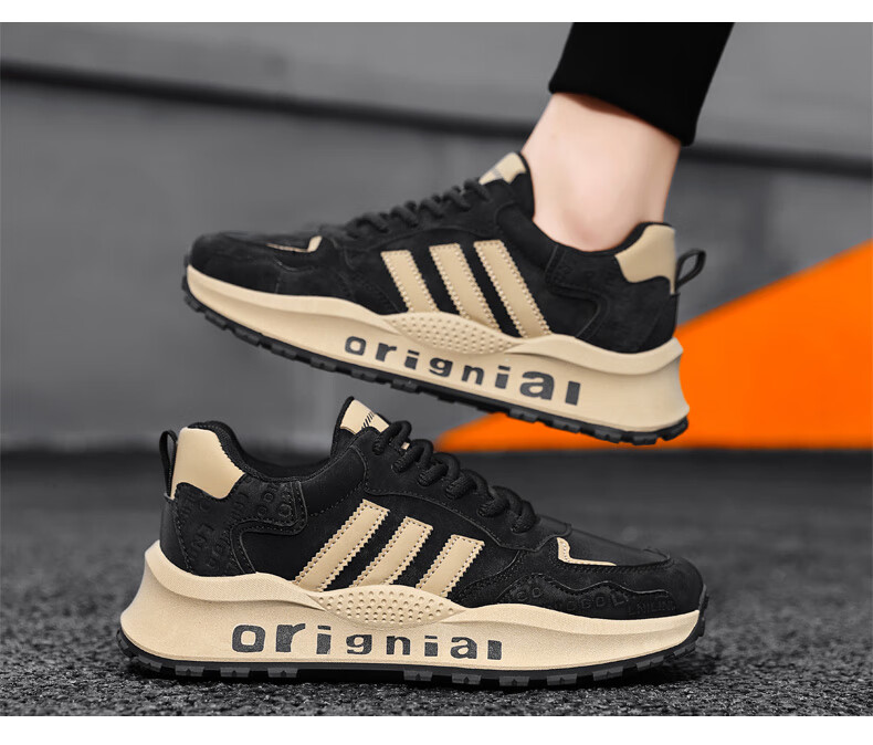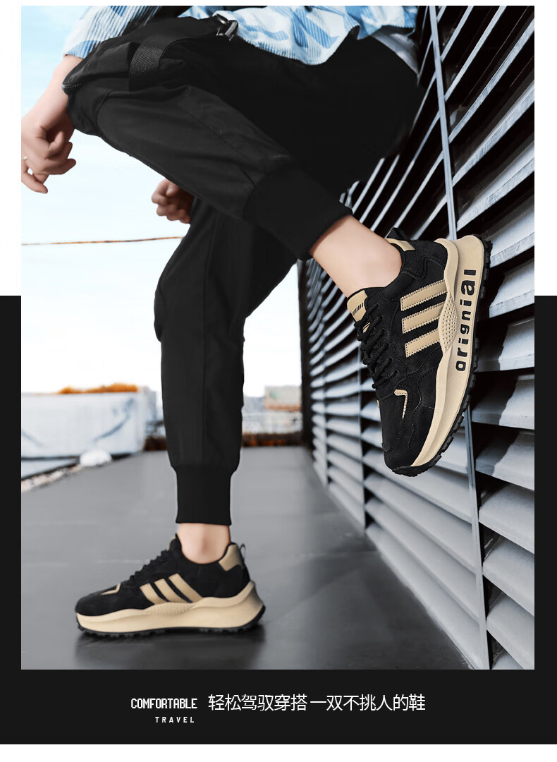 LRTH轻奢牛皮男鞋秋季新款老爹鞋男百搭运动鞋子男士休闲鞋内增高鞋男 黑色-增高6cm 39