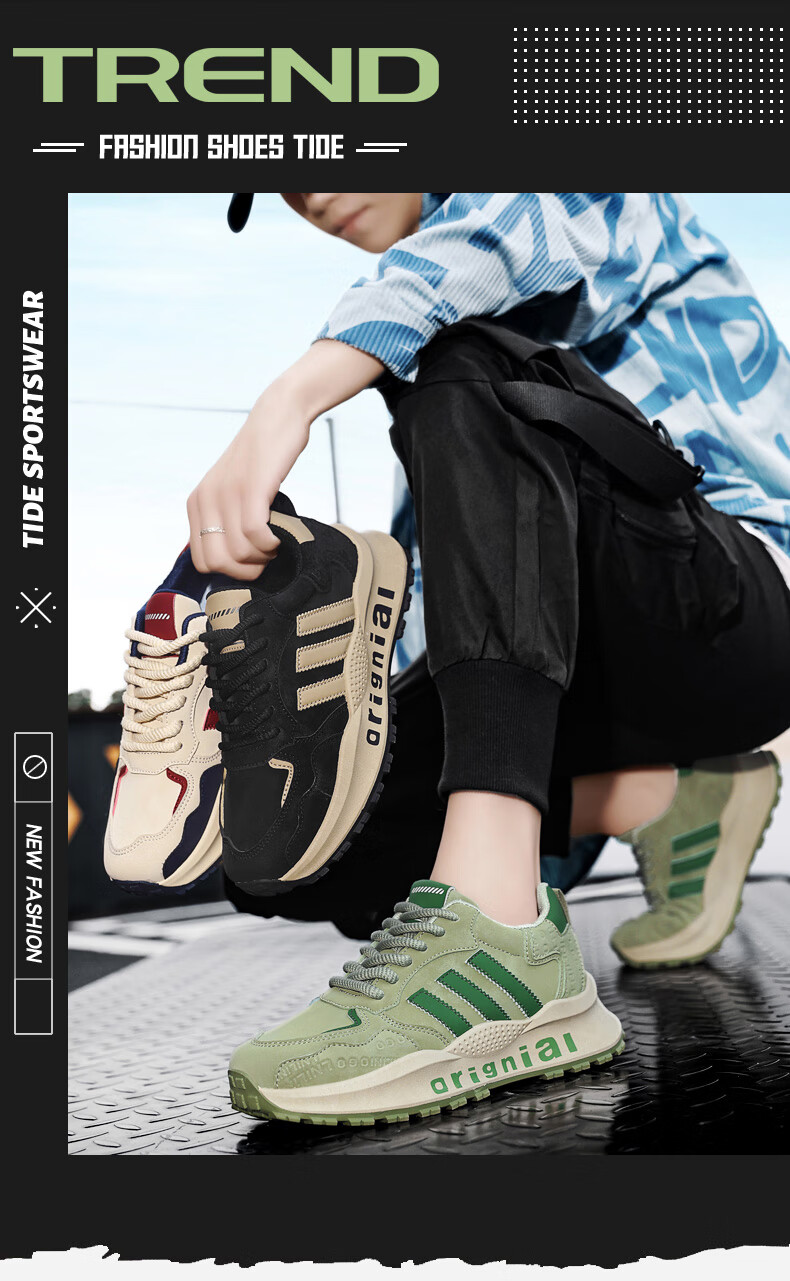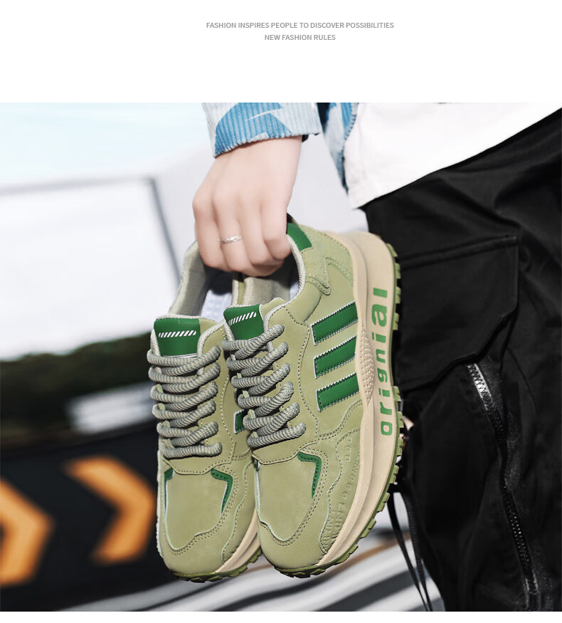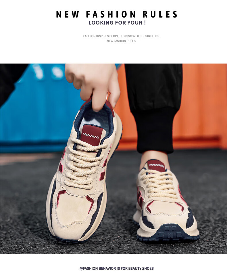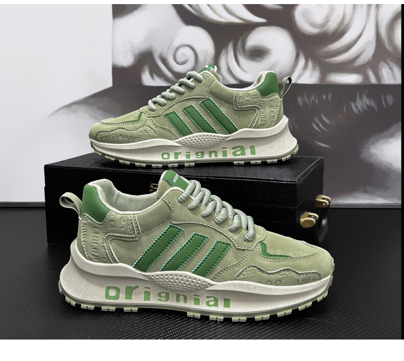 LRTH轻奢牛皮男鞋秋季新款老爹鞋男百搭运动鞋子男士休闲鞋内增高鞋男 黑色-增高6cm 39