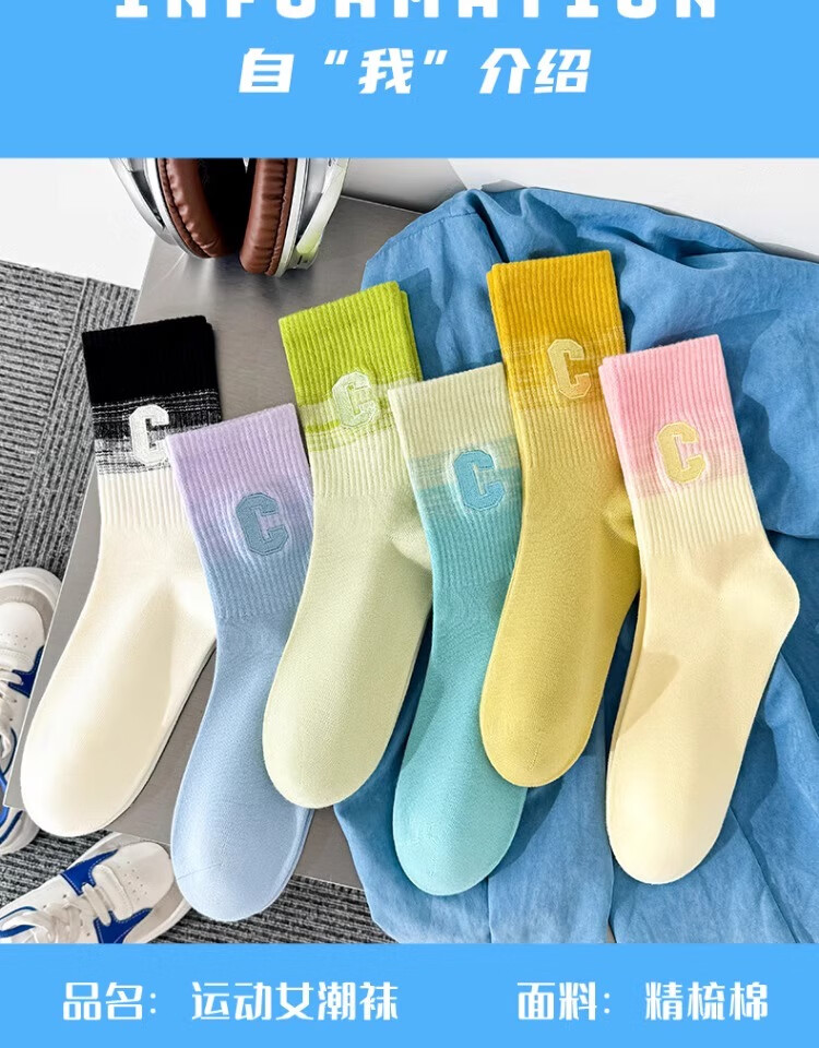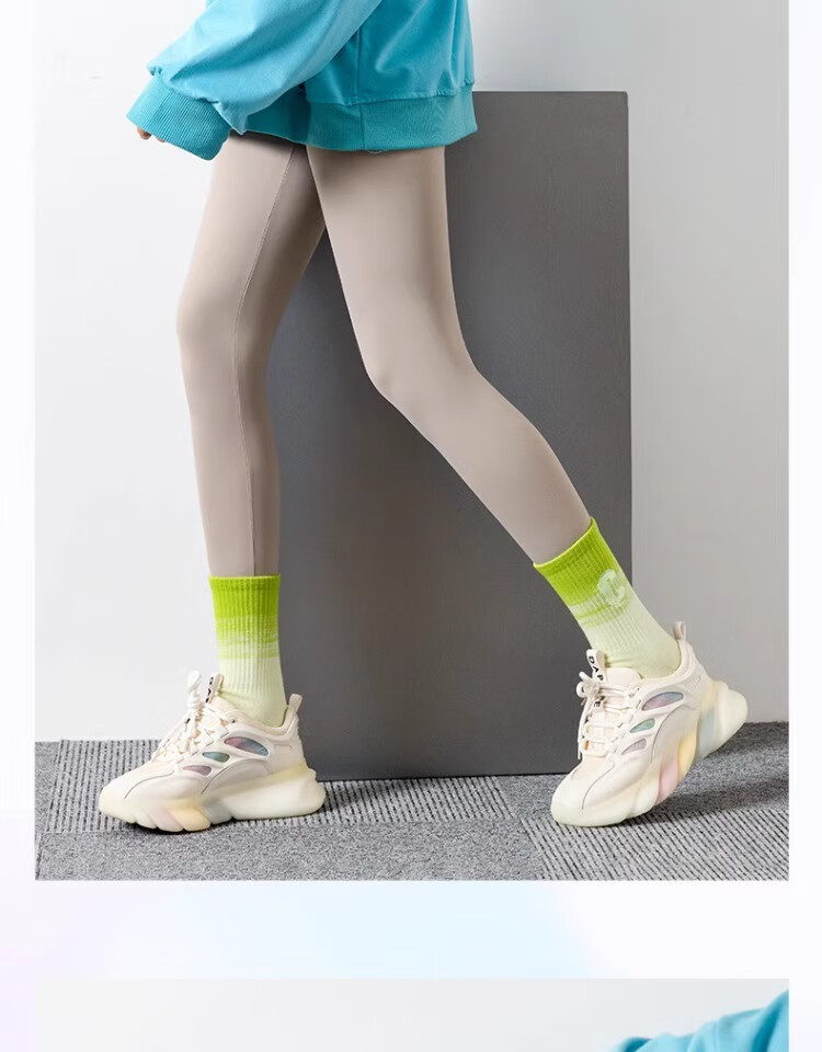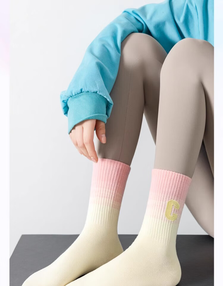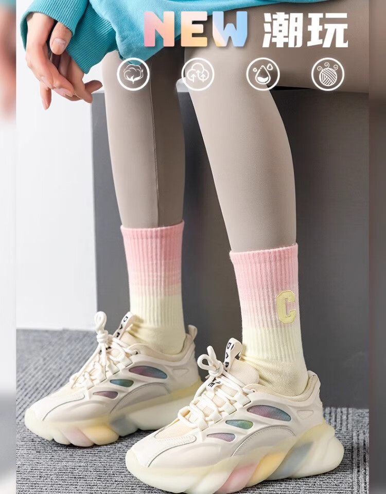 本曲长袜子女中筒春秋季纯棉跑步女孩长筒彩色渐变袜女士配鲨鱼裤运动 H1混色 4双 均码