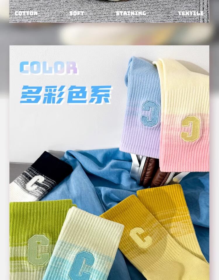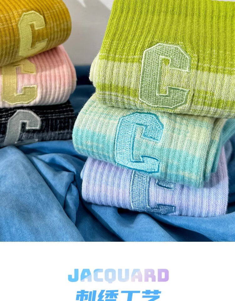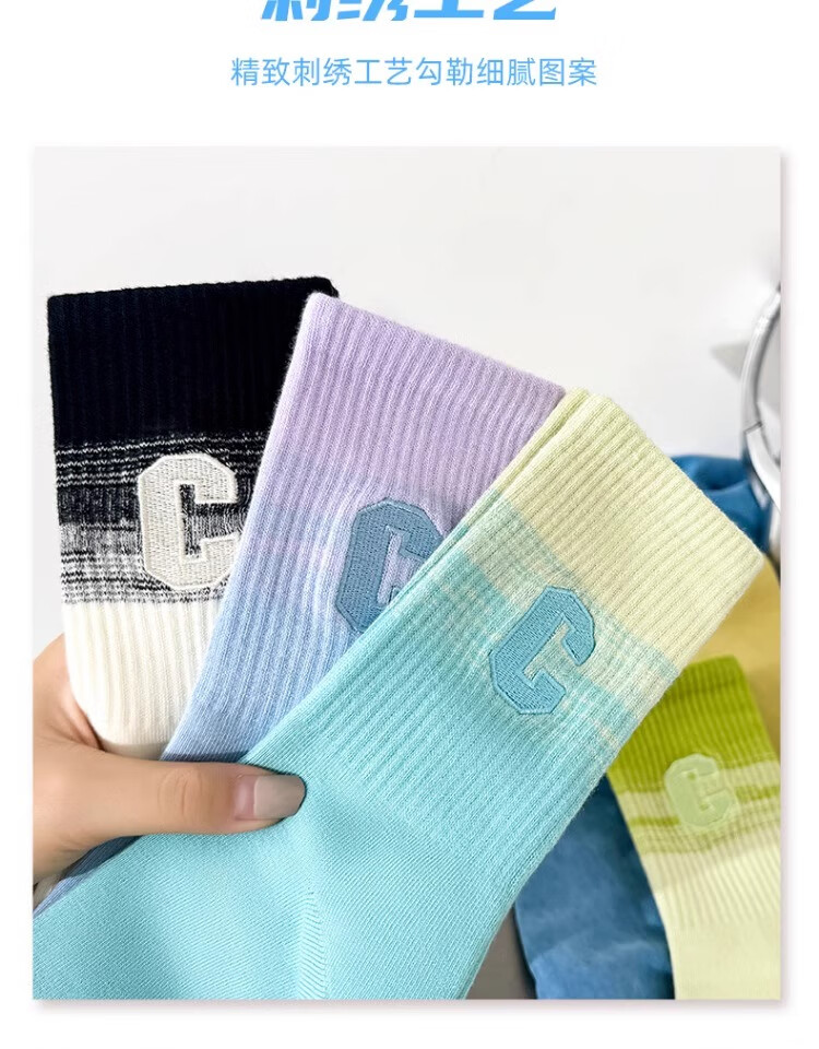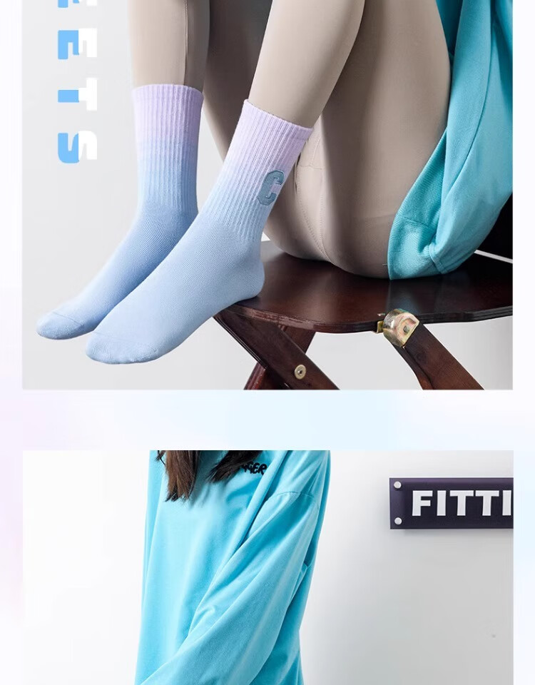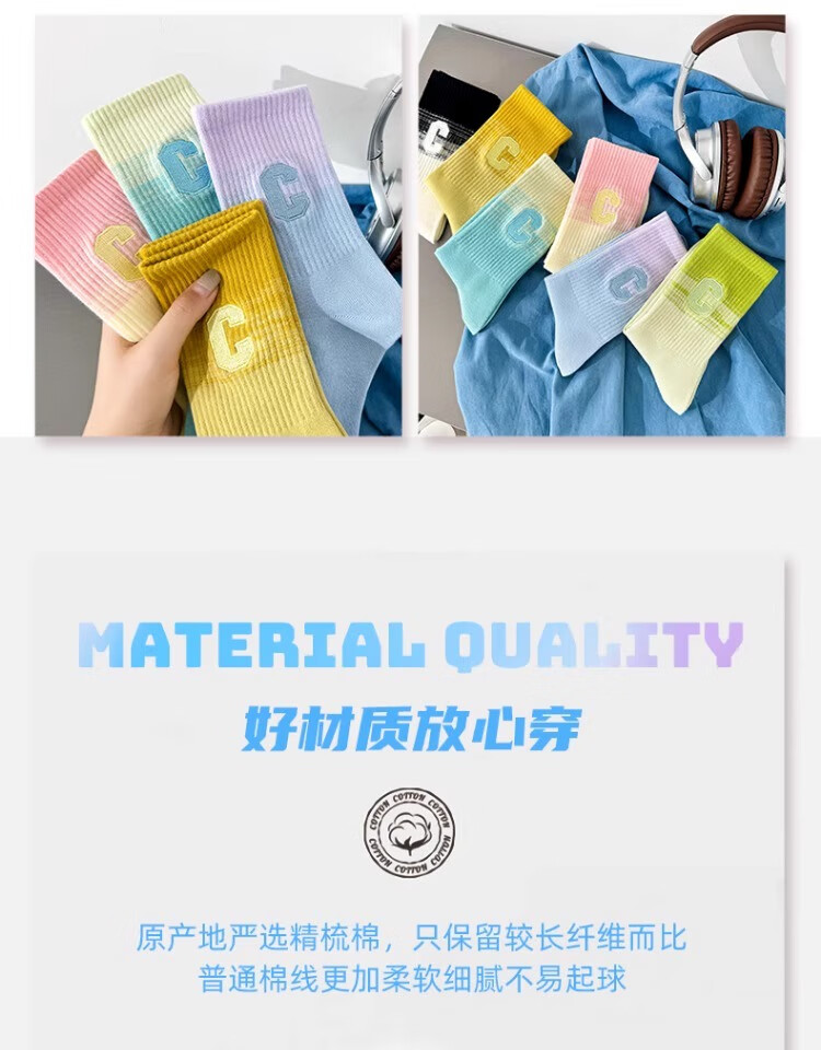 本曲长袜子女中筒春秋季纯棉跑步女孩长筒彩色渐变袜女士配鲨鱼裤运动 H1混色 4双 均码