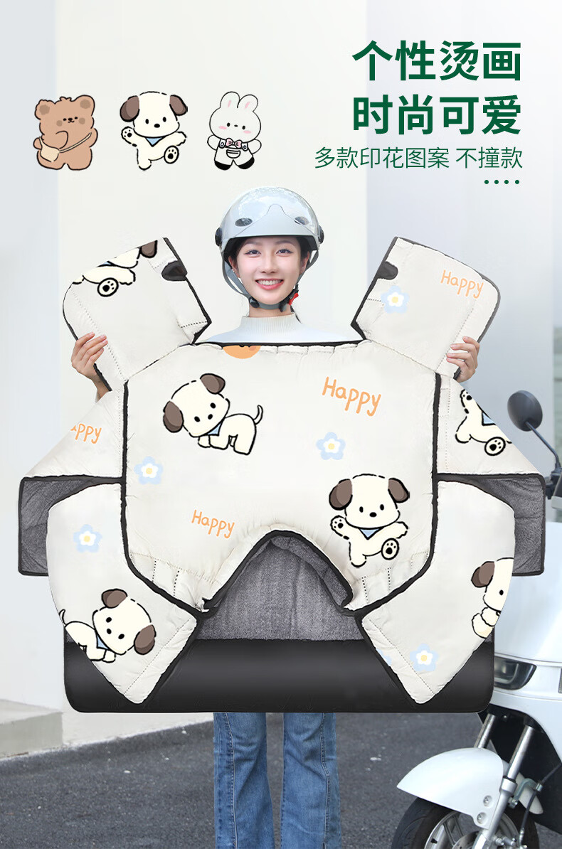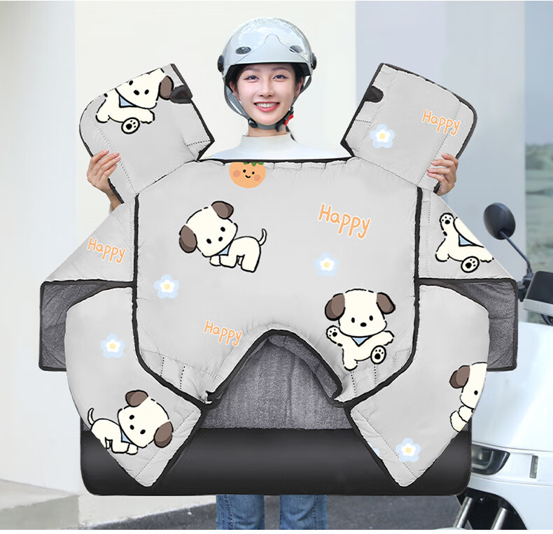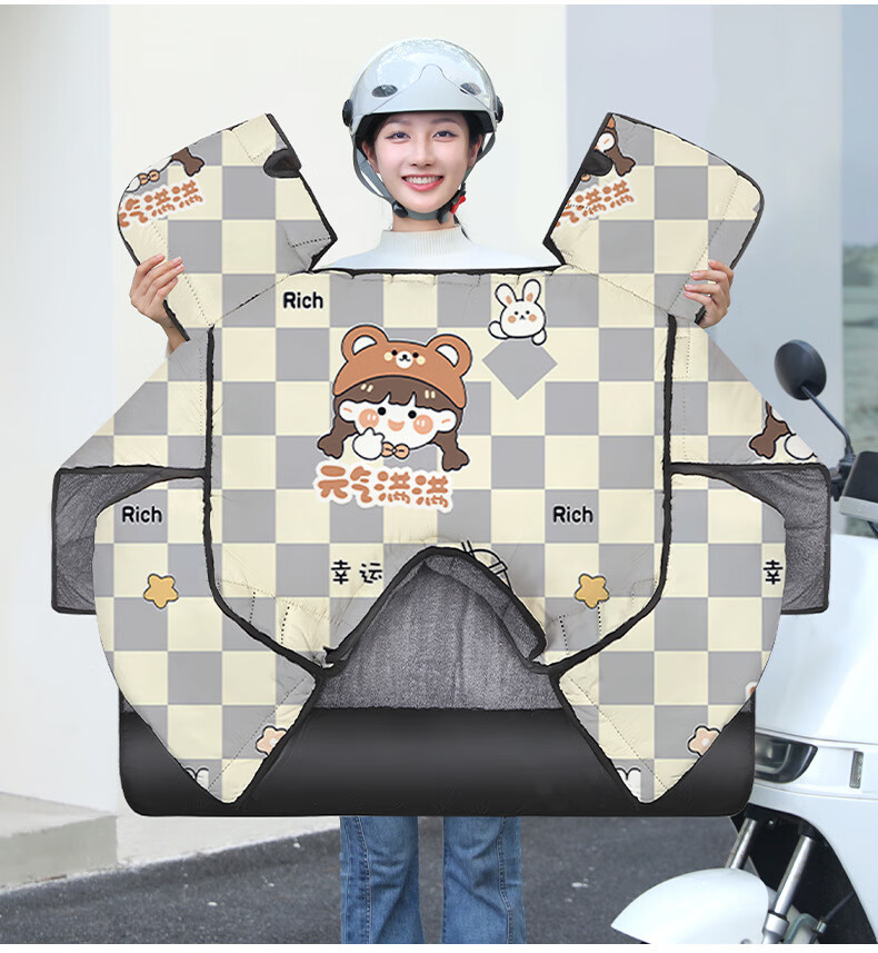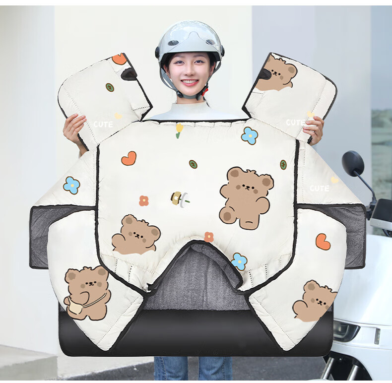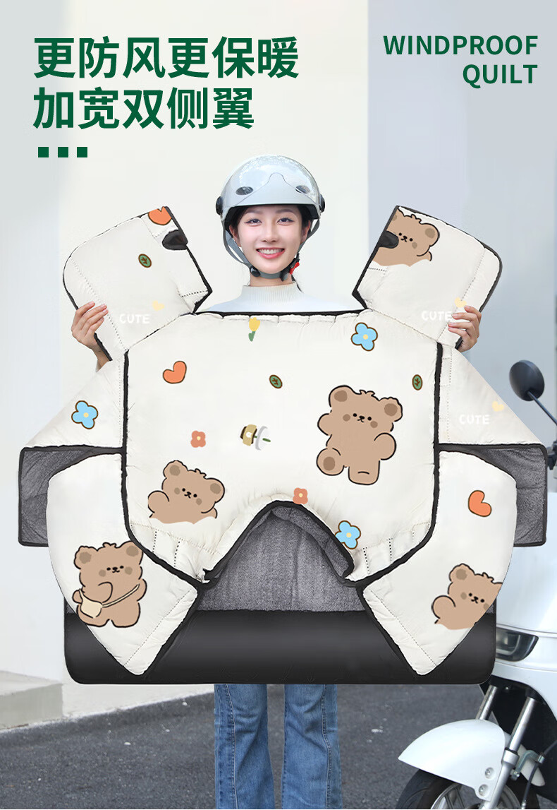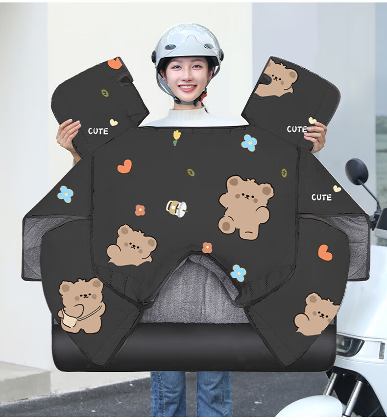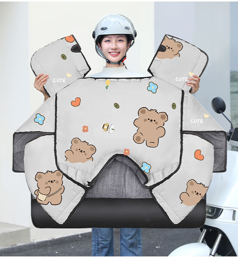 【优选好物】挡风被电动车冬季加厚加绒挡风罩电瓶车档风被冬天防 【升级加厚侧翼款加绒】浅灰咖啡熊 均码