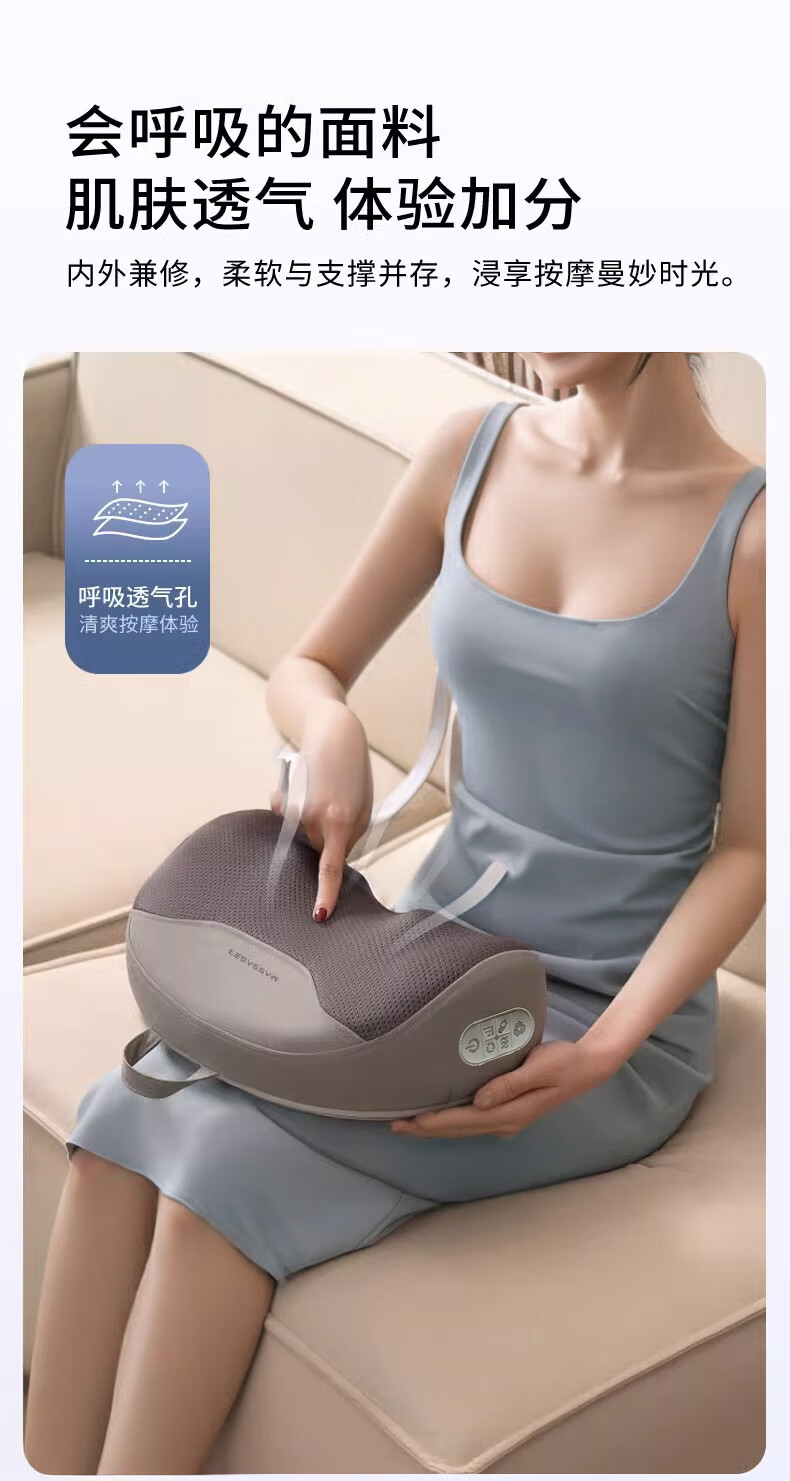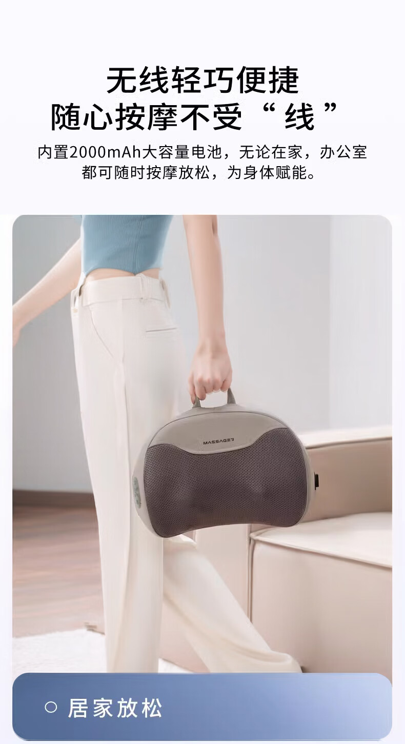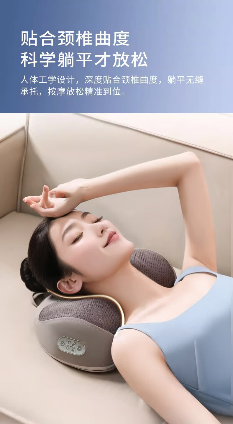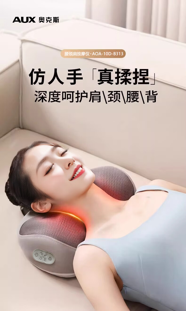 奥克斯(AUX)颈椎按摩器肩颈按摩仪多功能热敷腰椎揉捏靠枕家用按摩神器送中秋生日礼物长辈父母亲节礼物实用 【蓝充电款】3D立体枕形+20头正反揉捏+3档力度