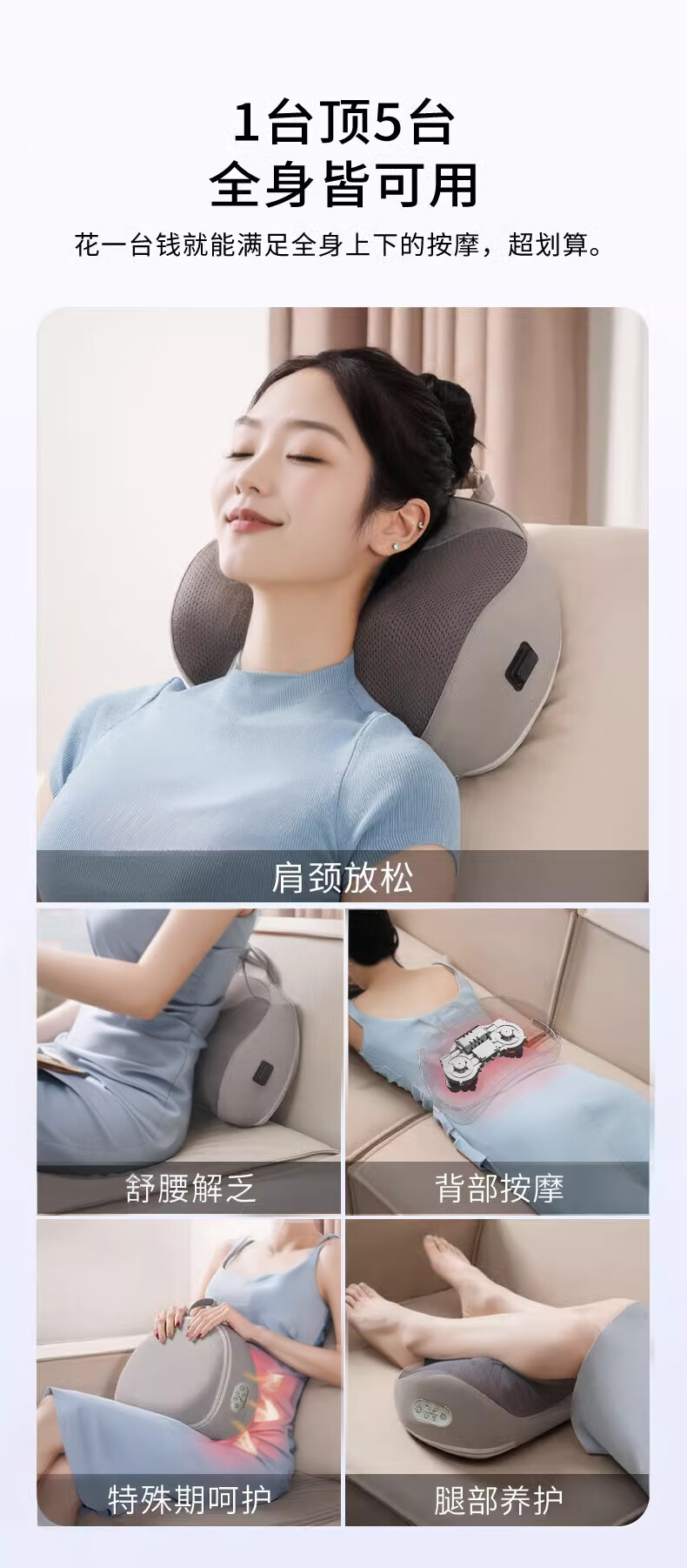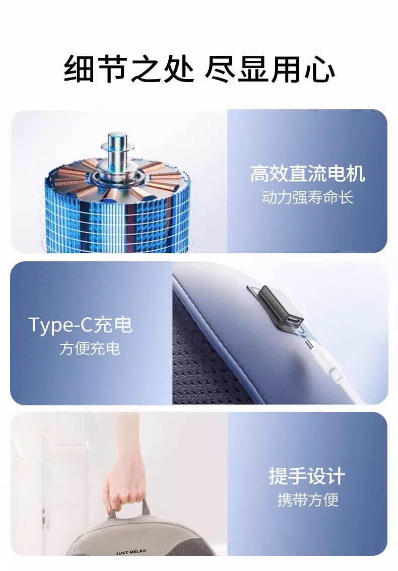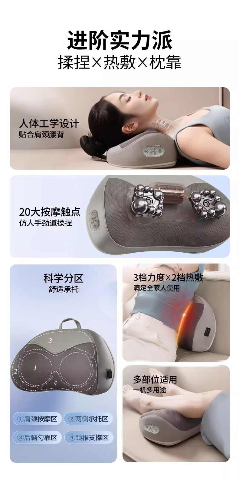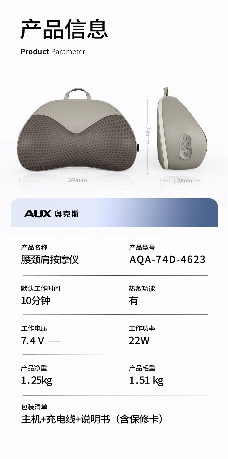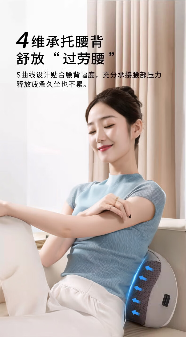 奥克斯(AUX)颈椎按摩器肩颈按摩仪多功能热敷腰椎揉捏靠枕家用按摩神器送中秋生日礼物长辈父母亲节礼物实用 【蓝充电款】3D立体枕形+20头正反揉捏+3档力度