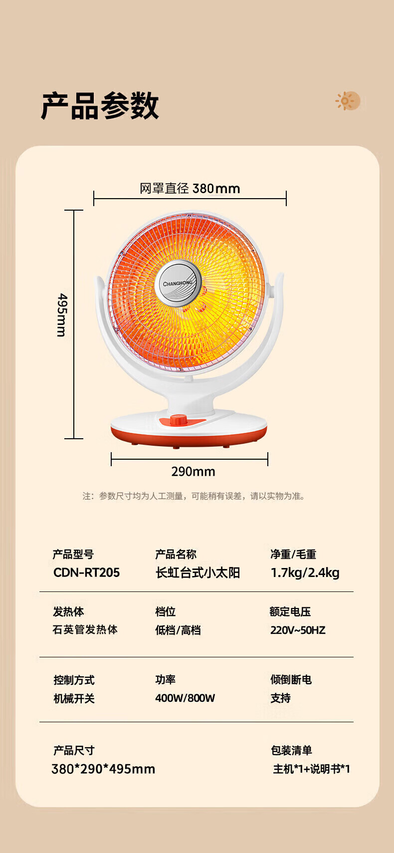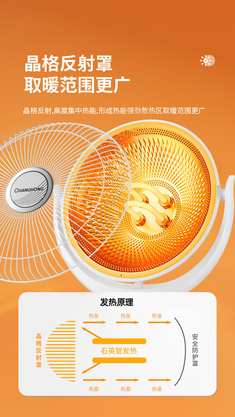 长虹(CHANGHONG)取暖器/小太阳/电暖器/电暖气/取暖电器/电热扇/电暖炉小型/烤火炉/快热炉 速热取暖 小号花篮标准款【直径340mm】 1