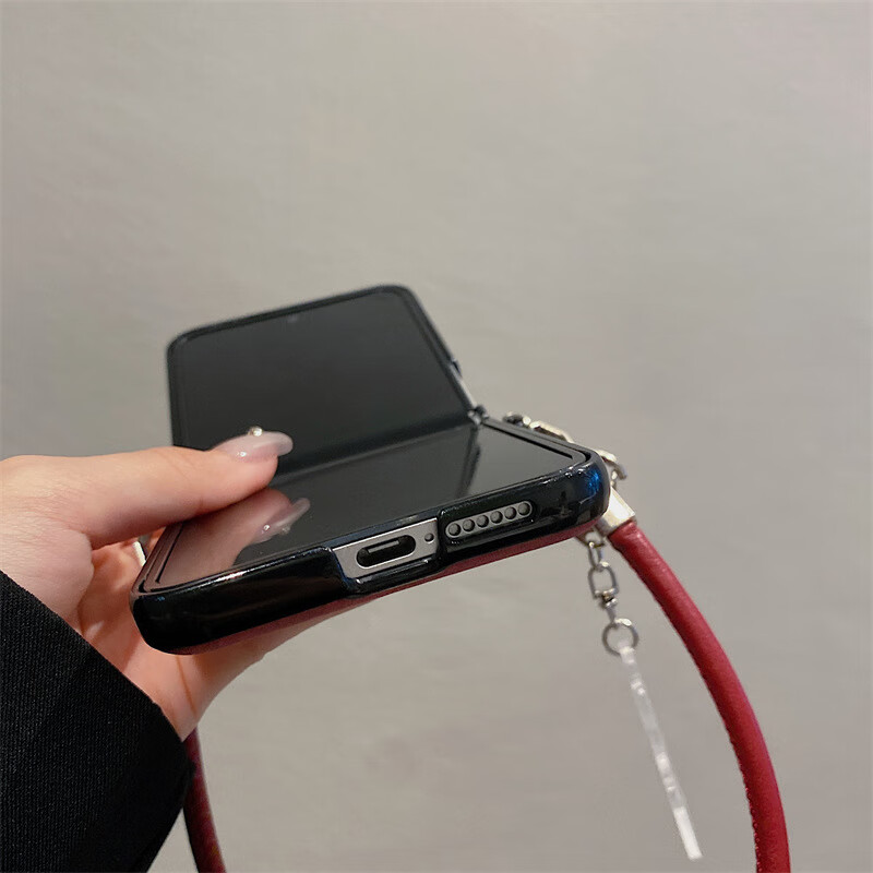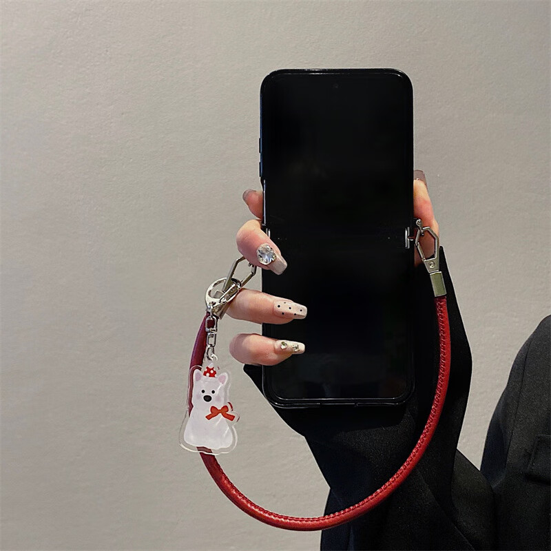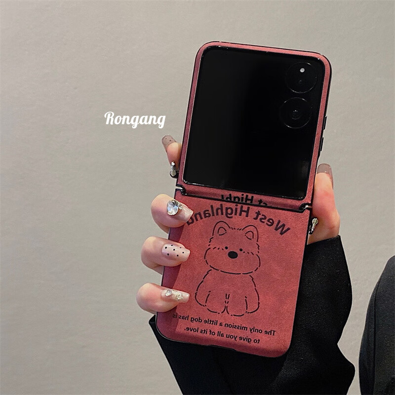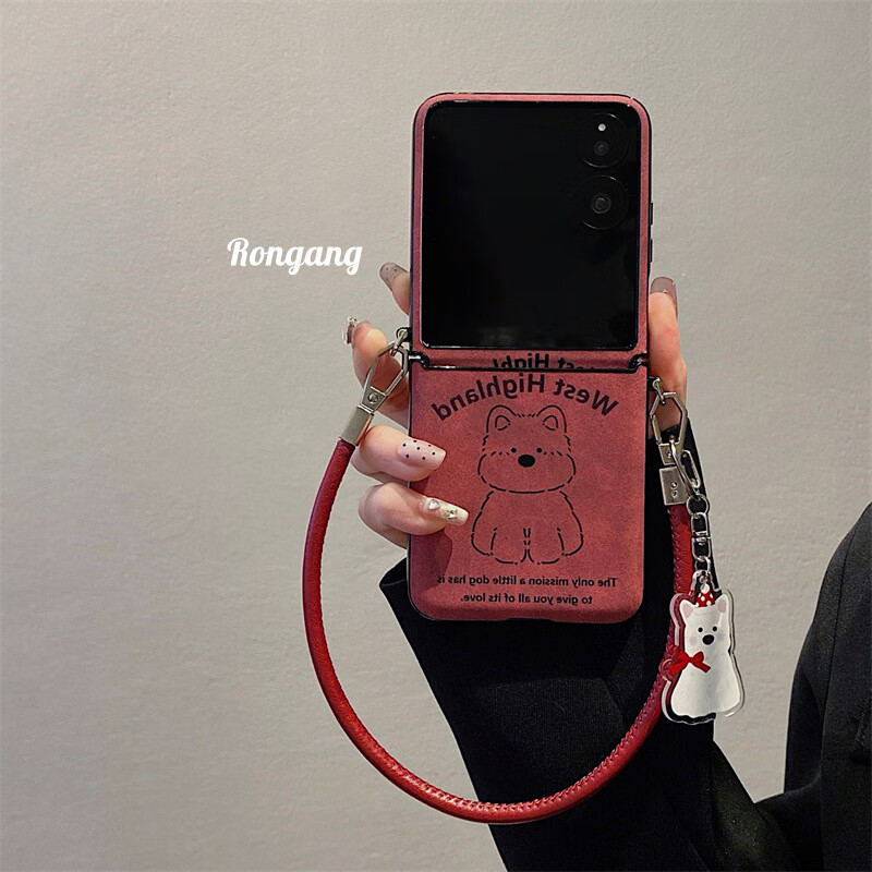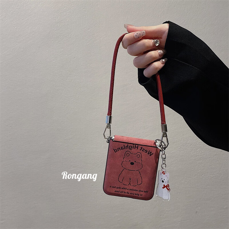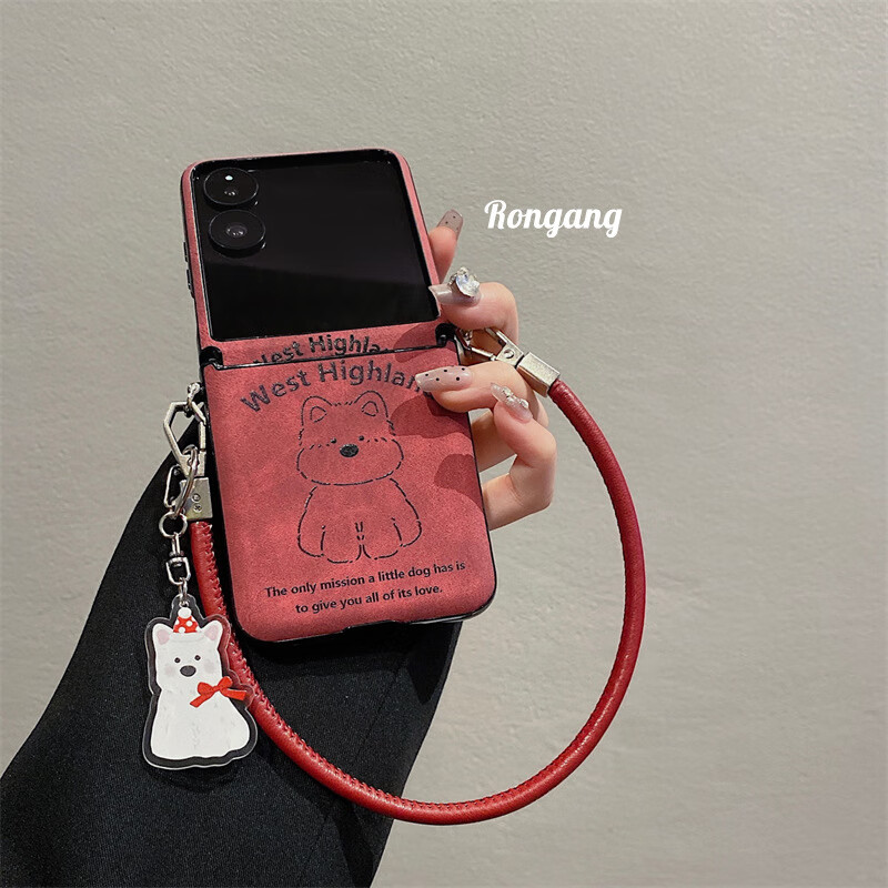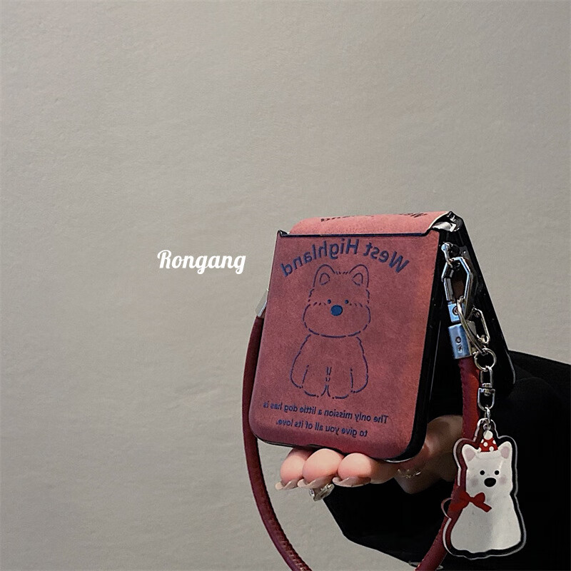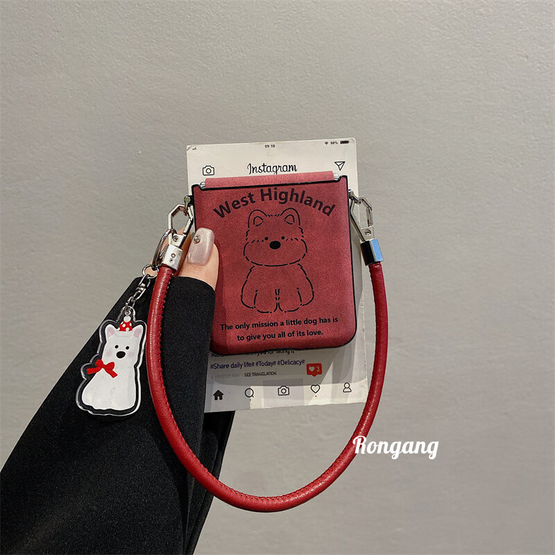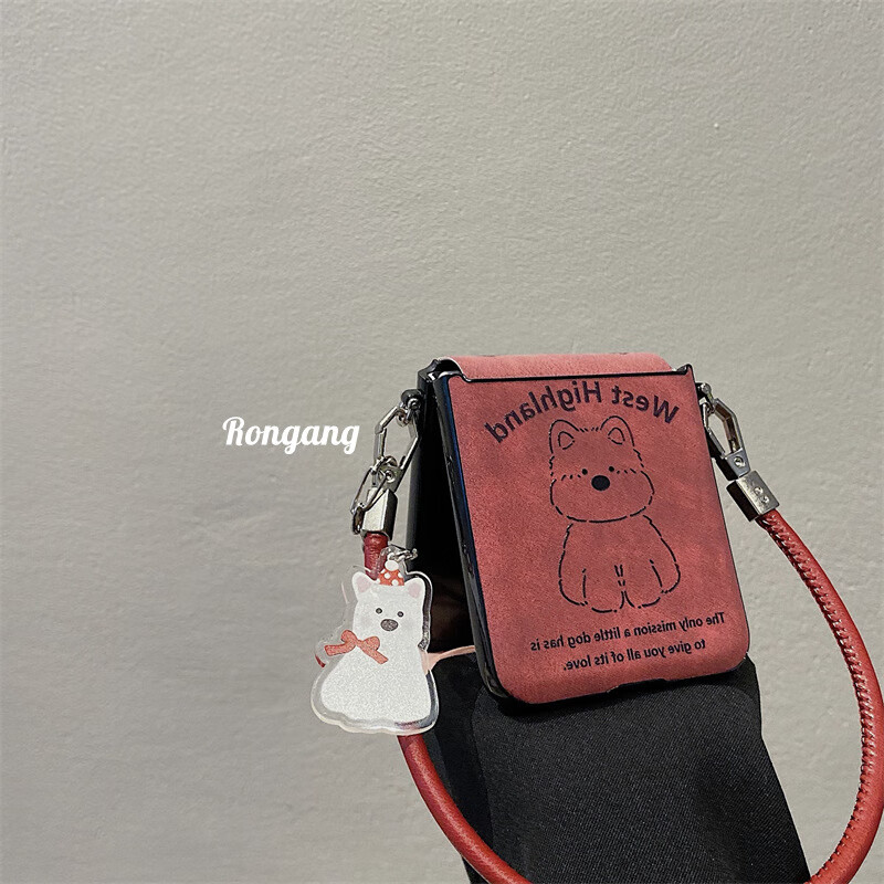 Hnew可爱皮纹西高地狗狗适用小米mixflip手机壳新款华为pocket2/s小折叠屏全包zflip6/5外壳n3/2Flip女 手提绳+挂件【玫红西高地】铰链保护 轻奢皮纹 华为 Pocket 2