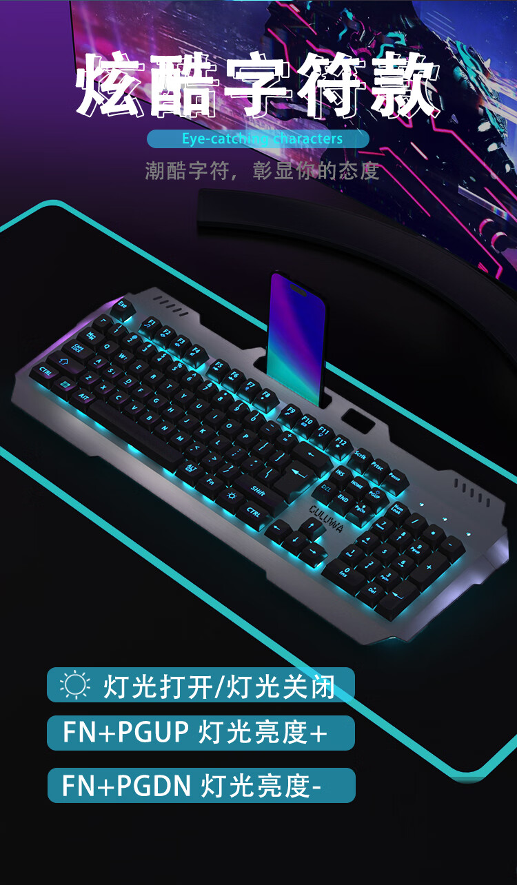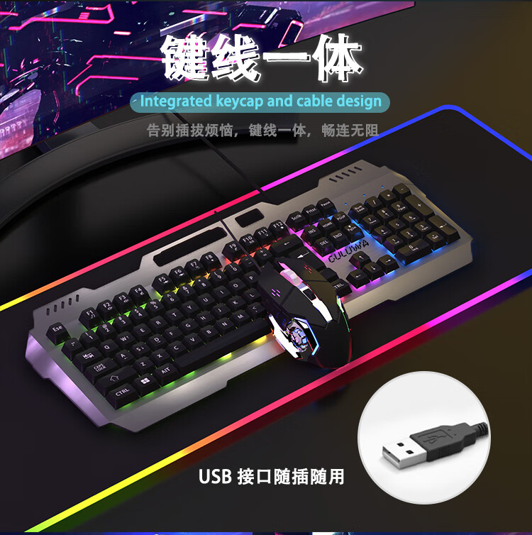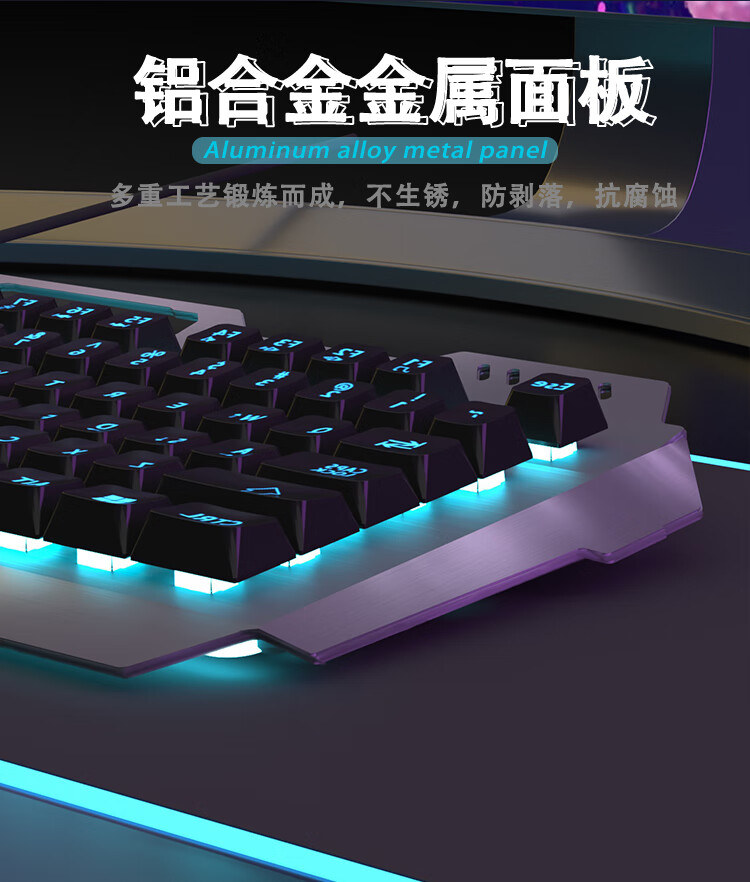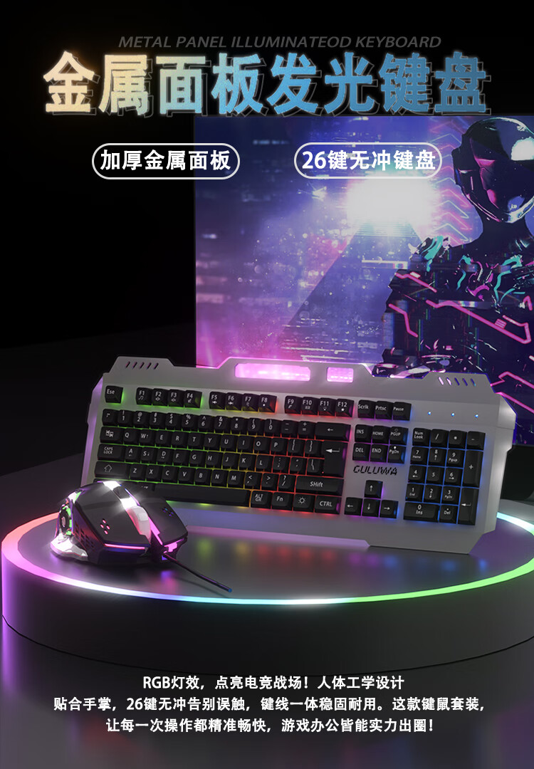 黑暗武士机械手感键盘鼠标合金面板有线游戏三角洲电脑台式外设办公高颜值 【金属】缝隙混光-洁白-键盘+机械鼠标