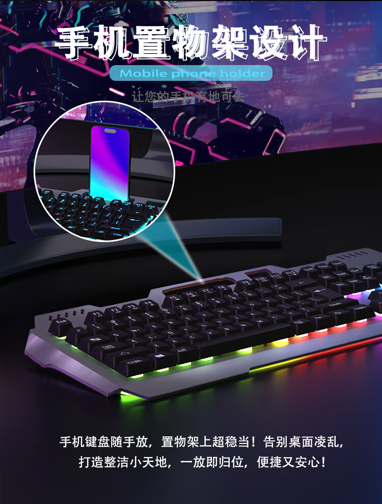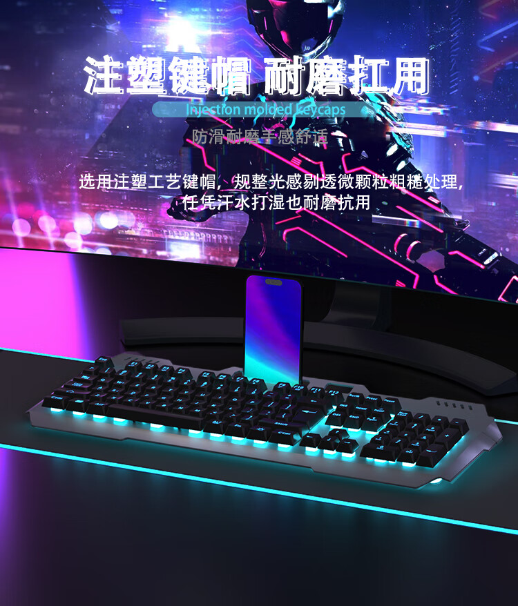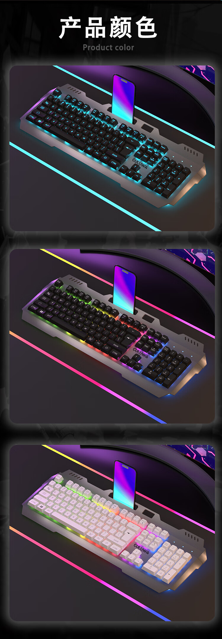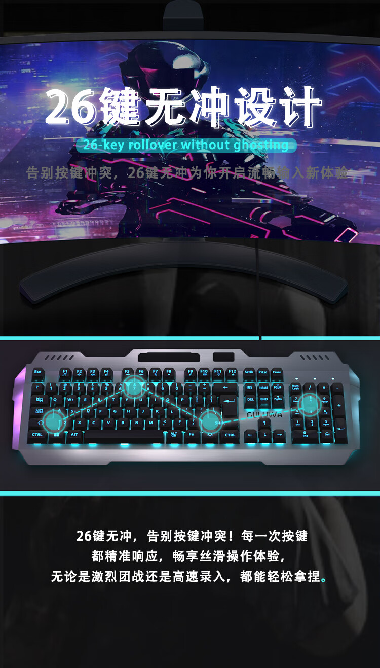 黑暗武士机械手感键盘鼠标合金面板有线游戏三角洲电脑台式外设办公高颜值 【金属】缝隙混光-洁白-键盘+机械鼠标