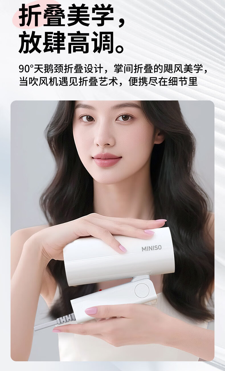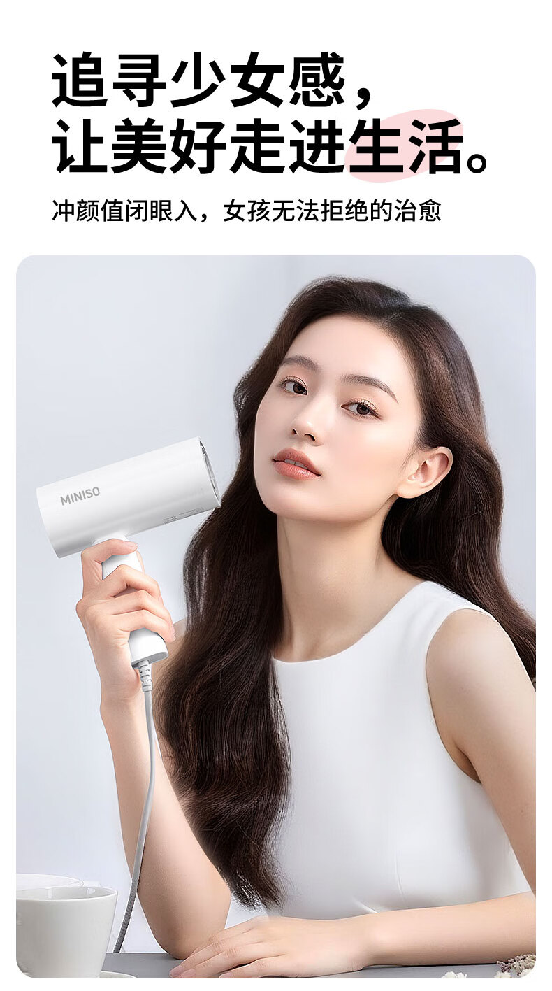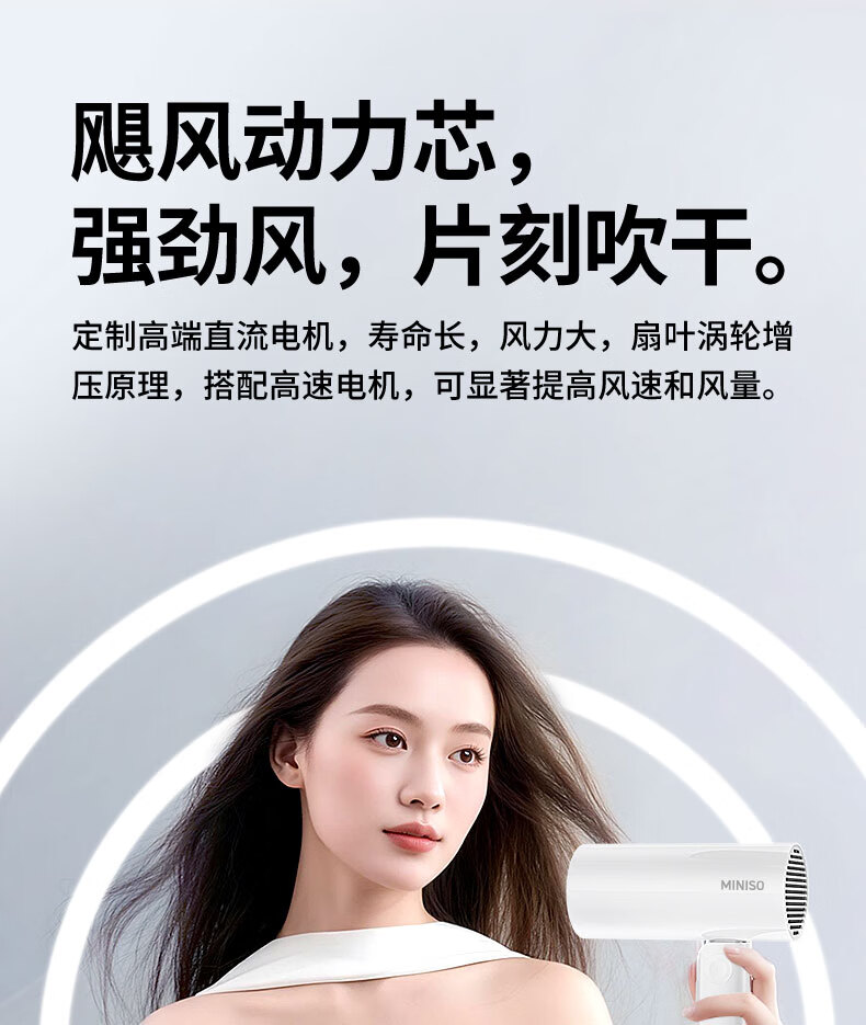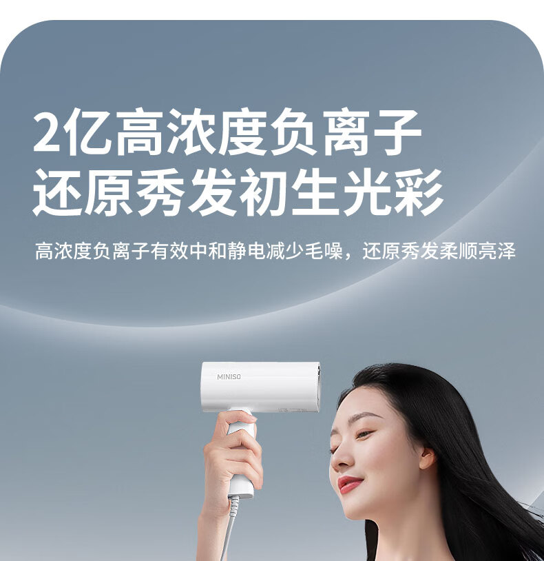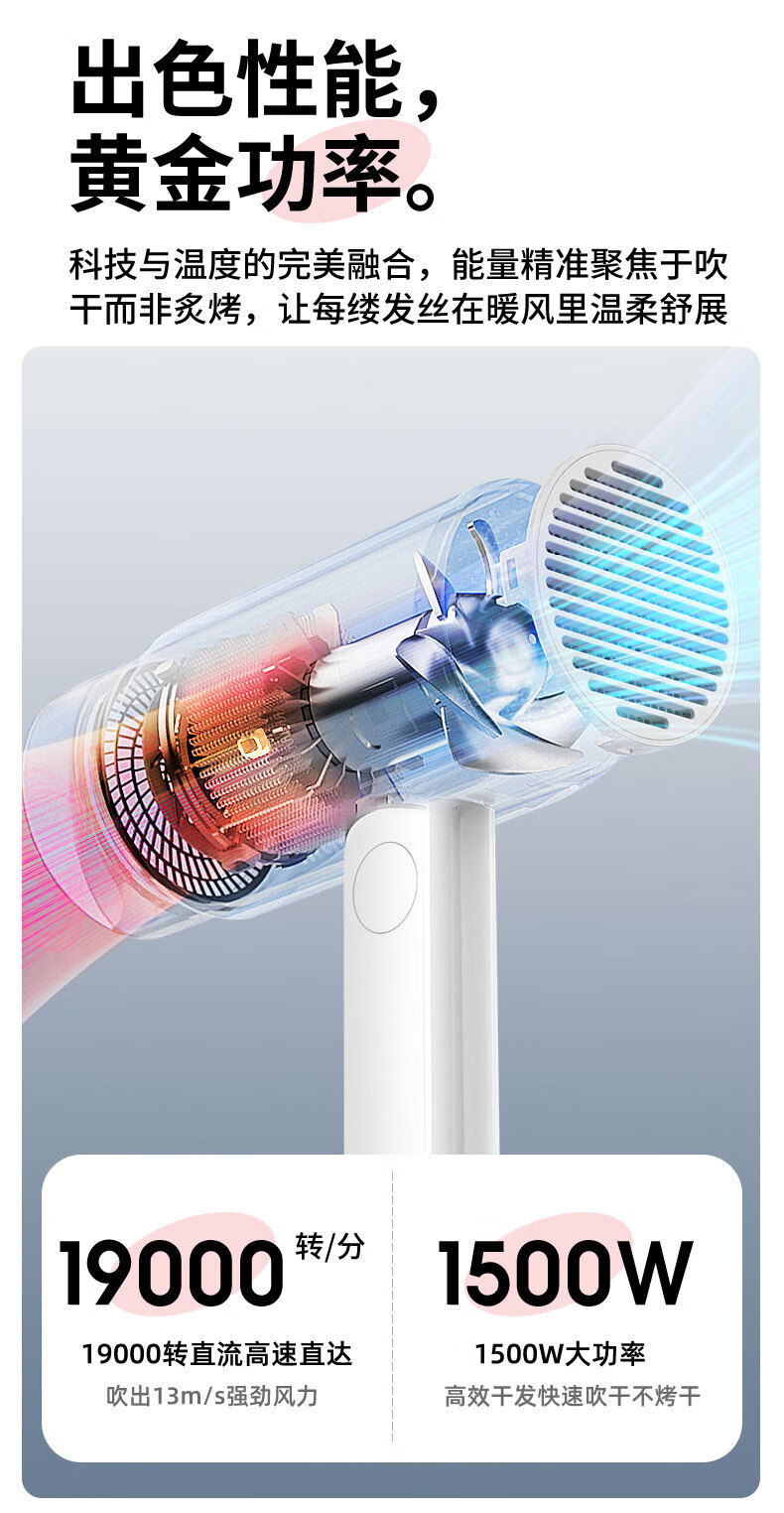 名创优品(MINISO)吹风机家用静音负离子大功率不伤发高速3C电吹风机学生宿舍吹风筒大功率中秋礼物 落樱粉-2亿负离子+1500W恒温速干+降噪静音