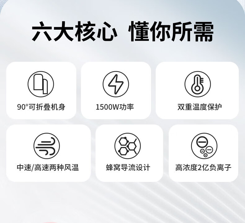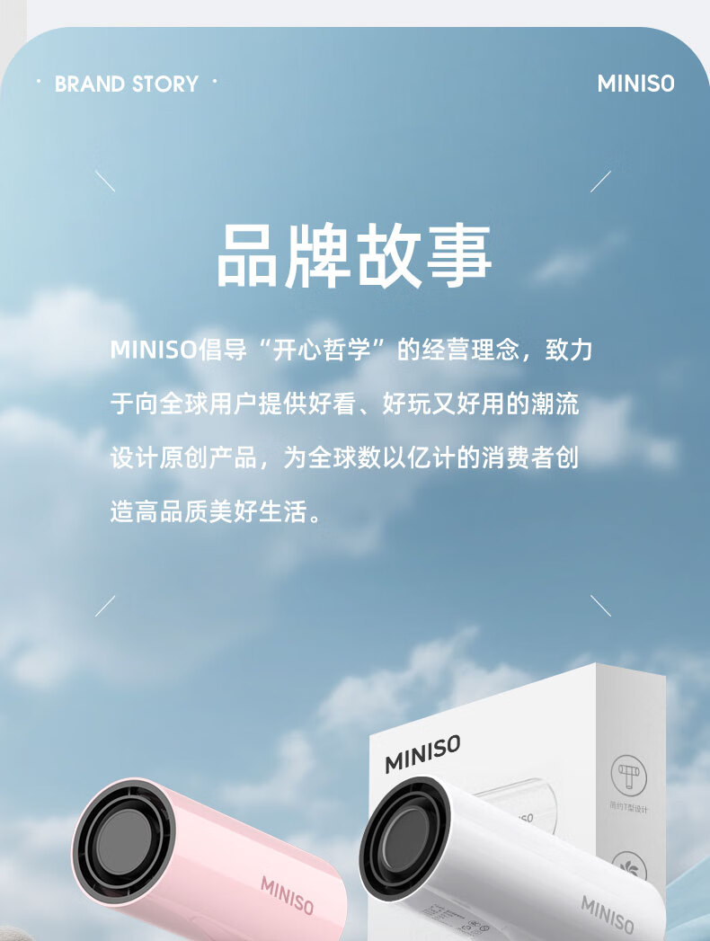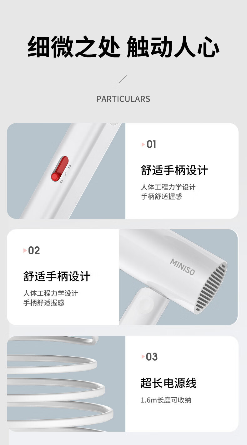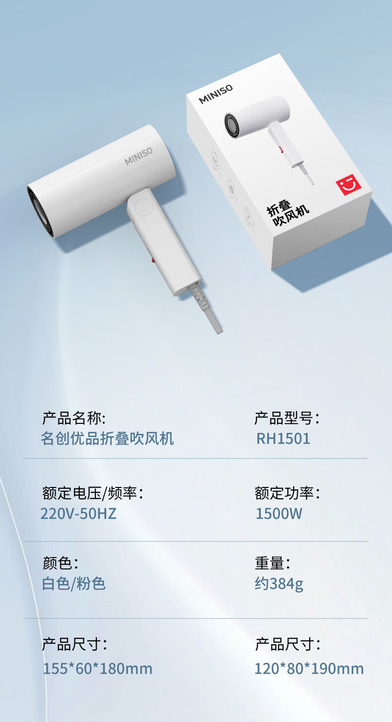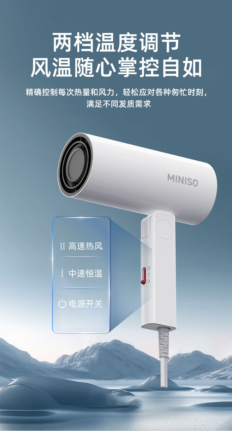 名创优品(MINISO)吹风机家用静音负离子大功率不伤发高速3C电吹风机学生宿舍吹风筒大功率中秋礼物 落樱粉-2亿负离子+1500W恒温速干+降噪静音