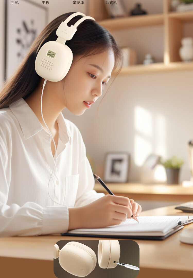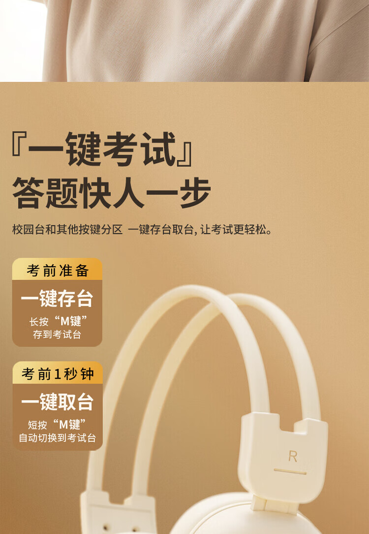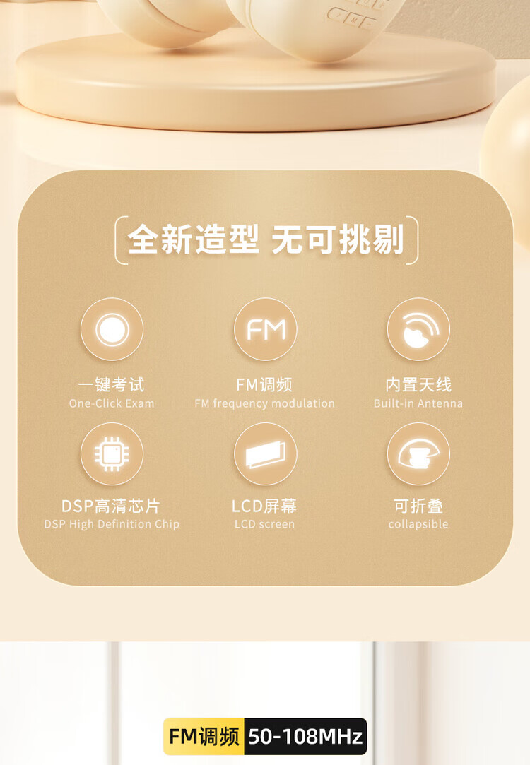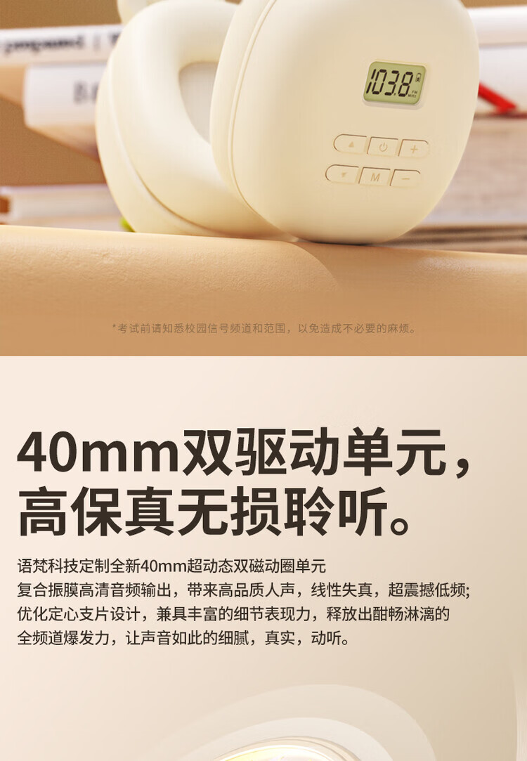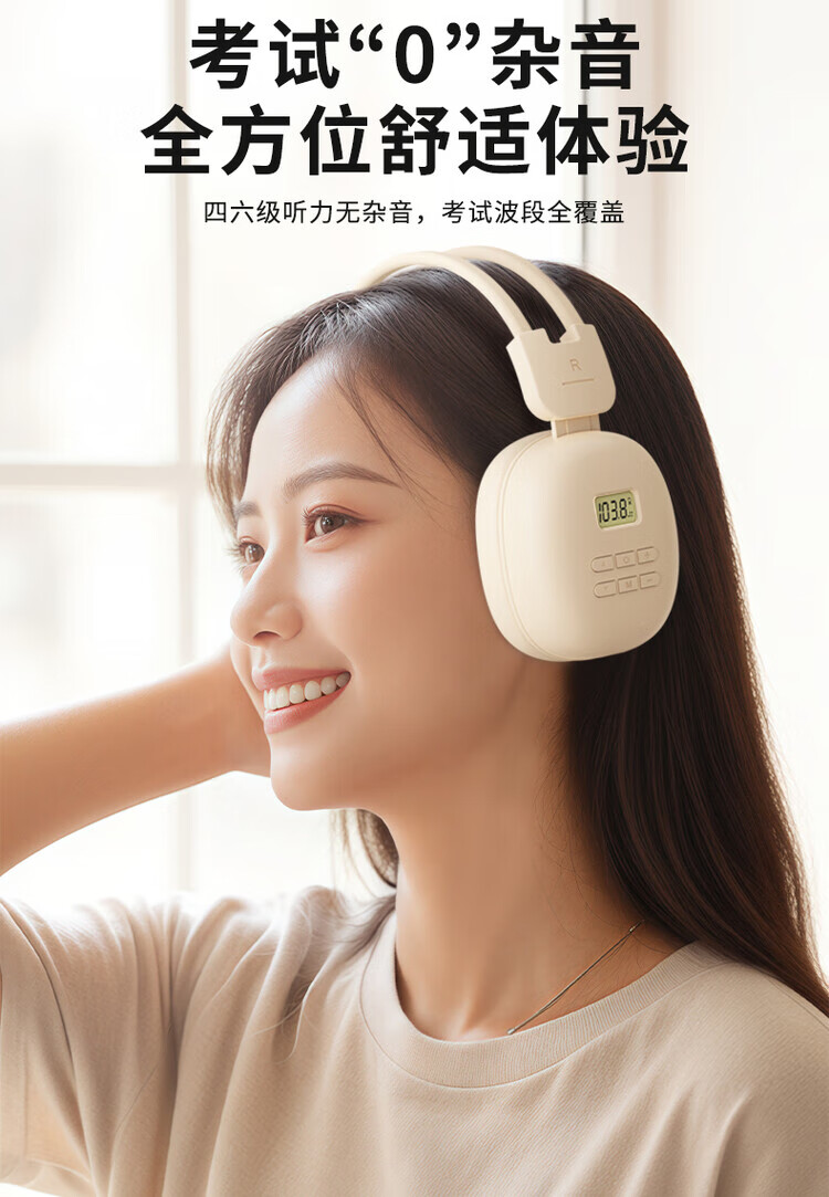 语梵(YUFFUN) 英语四六级听力耳机四级调频FM六级46级蓝牙大学生考试三级 白色 经典款【时间/电量显示】送电池 标配 标配耳机