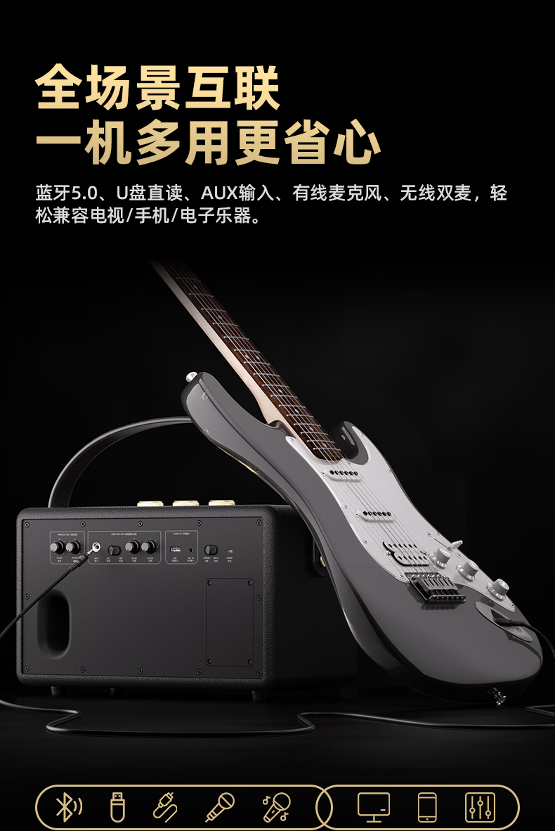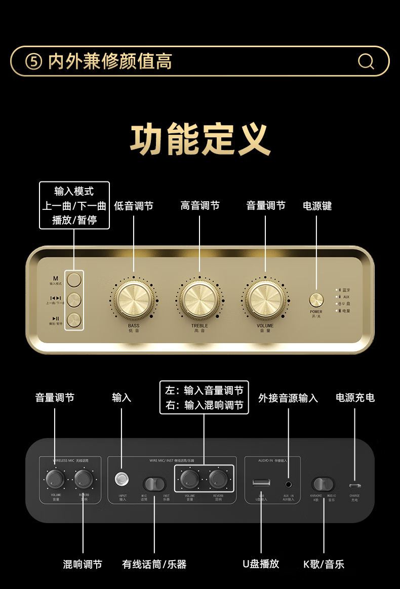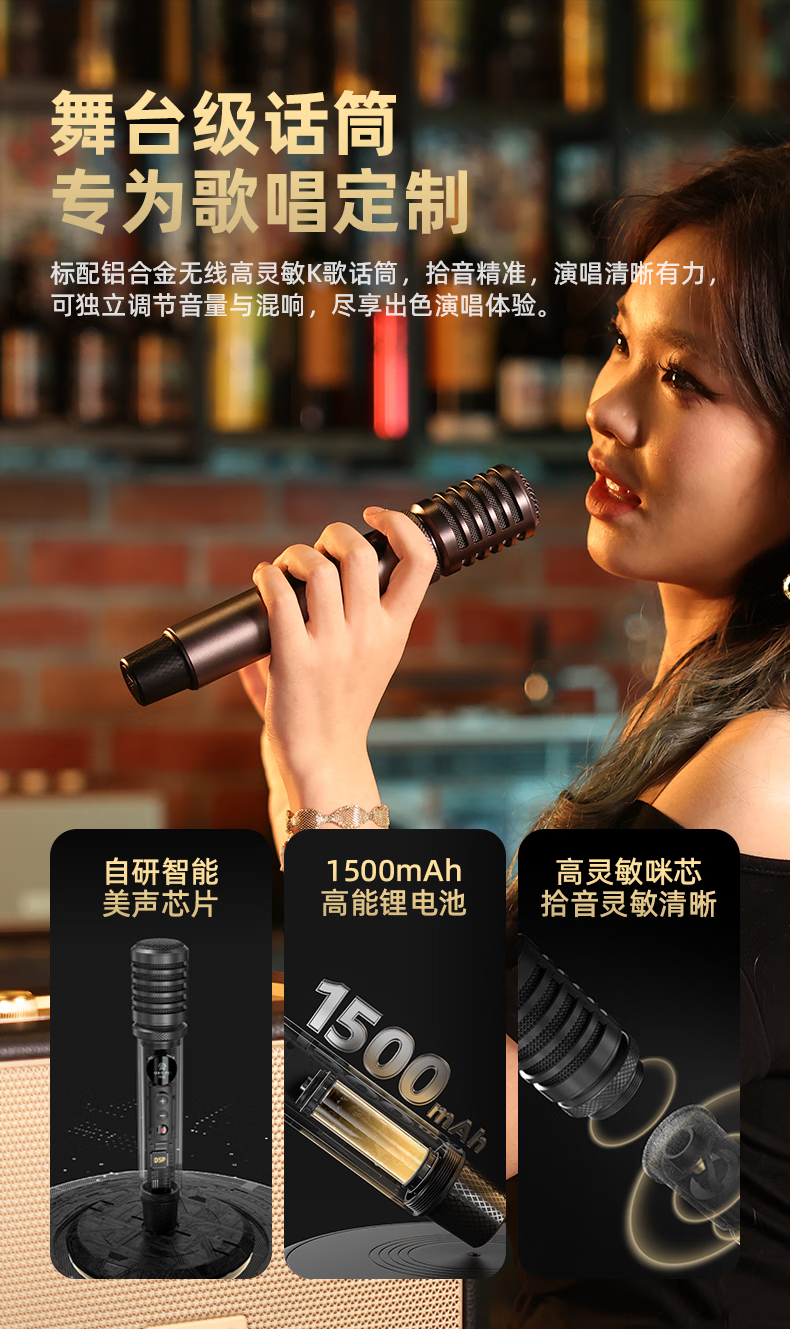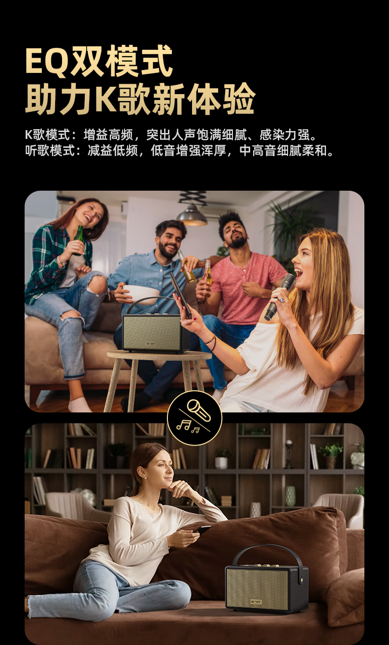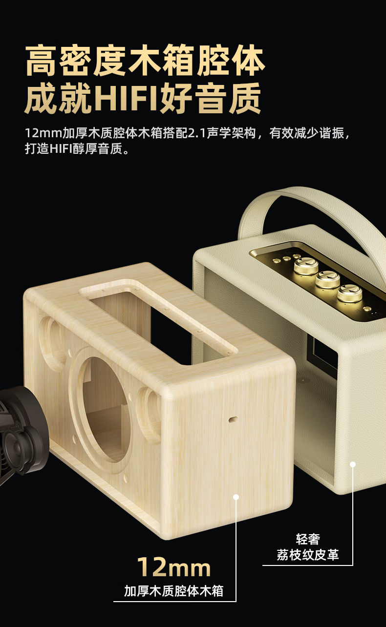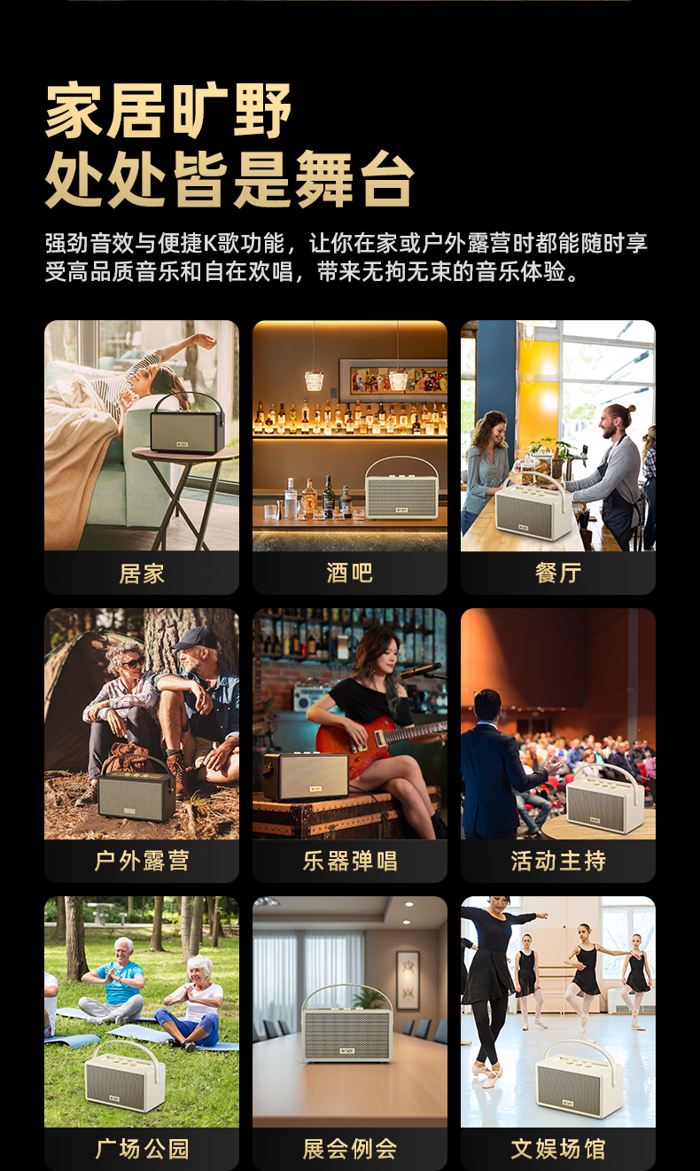 不见不散W200无线蓝牙音箱【帮下歌】手提便携式广场舞立体环绕音响家用K歌麦克风一体机大音量唱歌高音质 乳酪白【双麦】