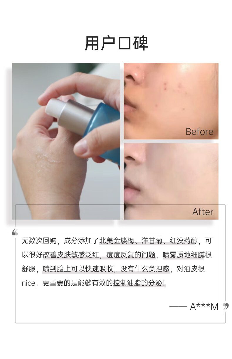 杏肌宁(Skinique)控油爽肤水喷雾120ml 补水保湿水改善痘痘泛红收缩毛孔护肤品礼物