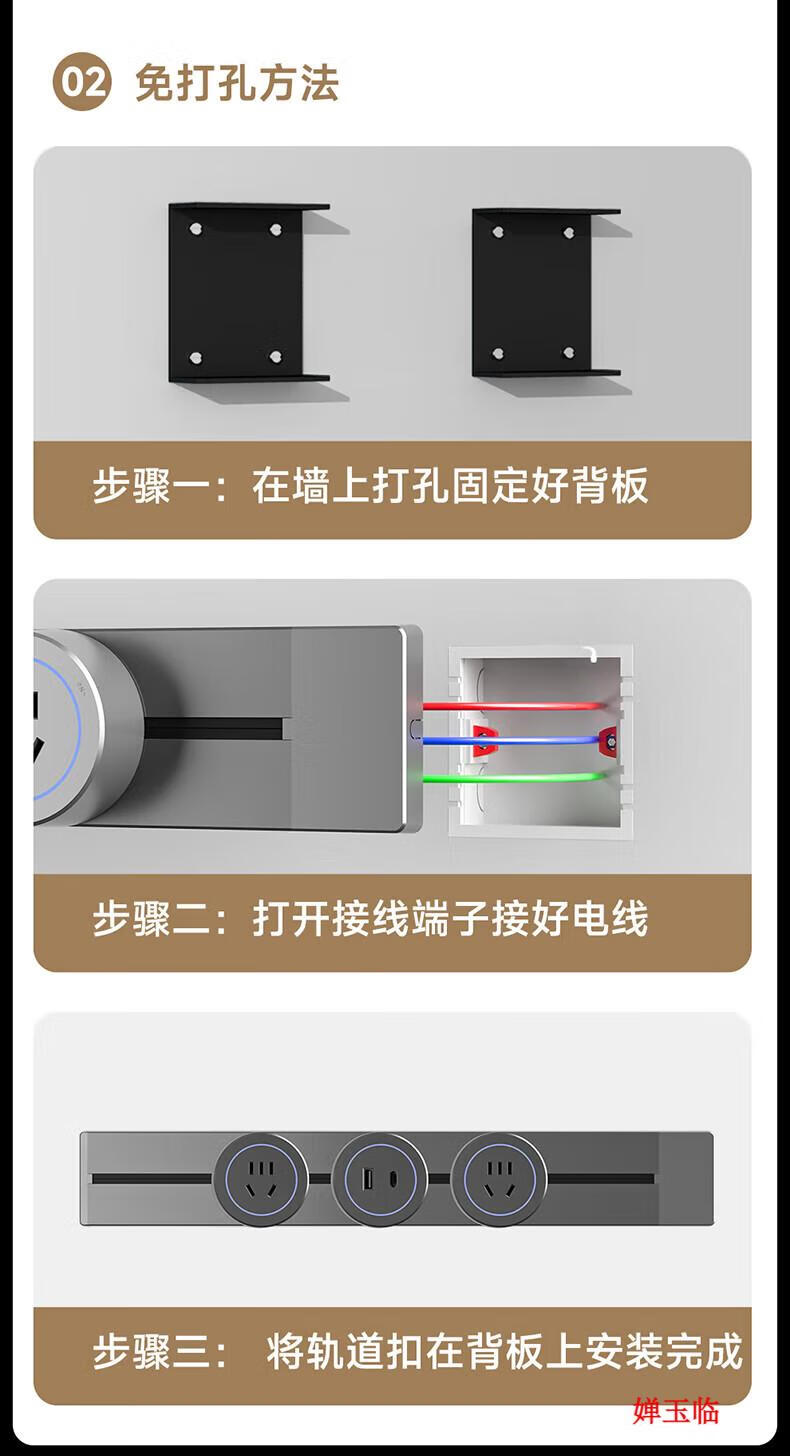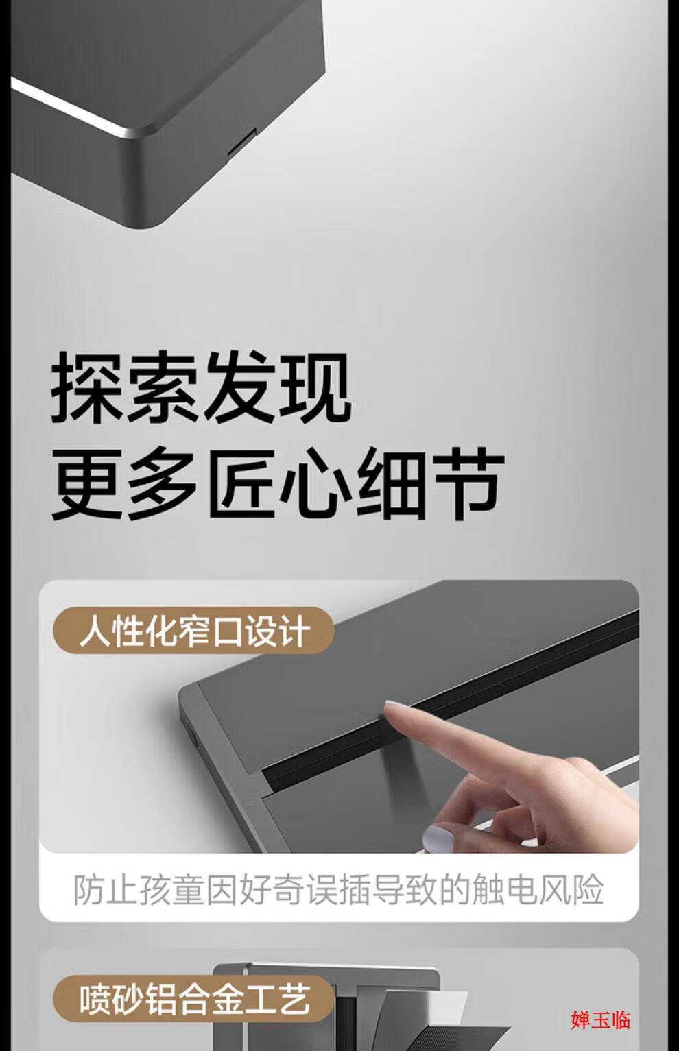 小米有品轨道插座滑动明装墙壁移动插座电力导轨厨房客厅卧室滑轨插座插线 黑色(带灯)USB+typeC适配器