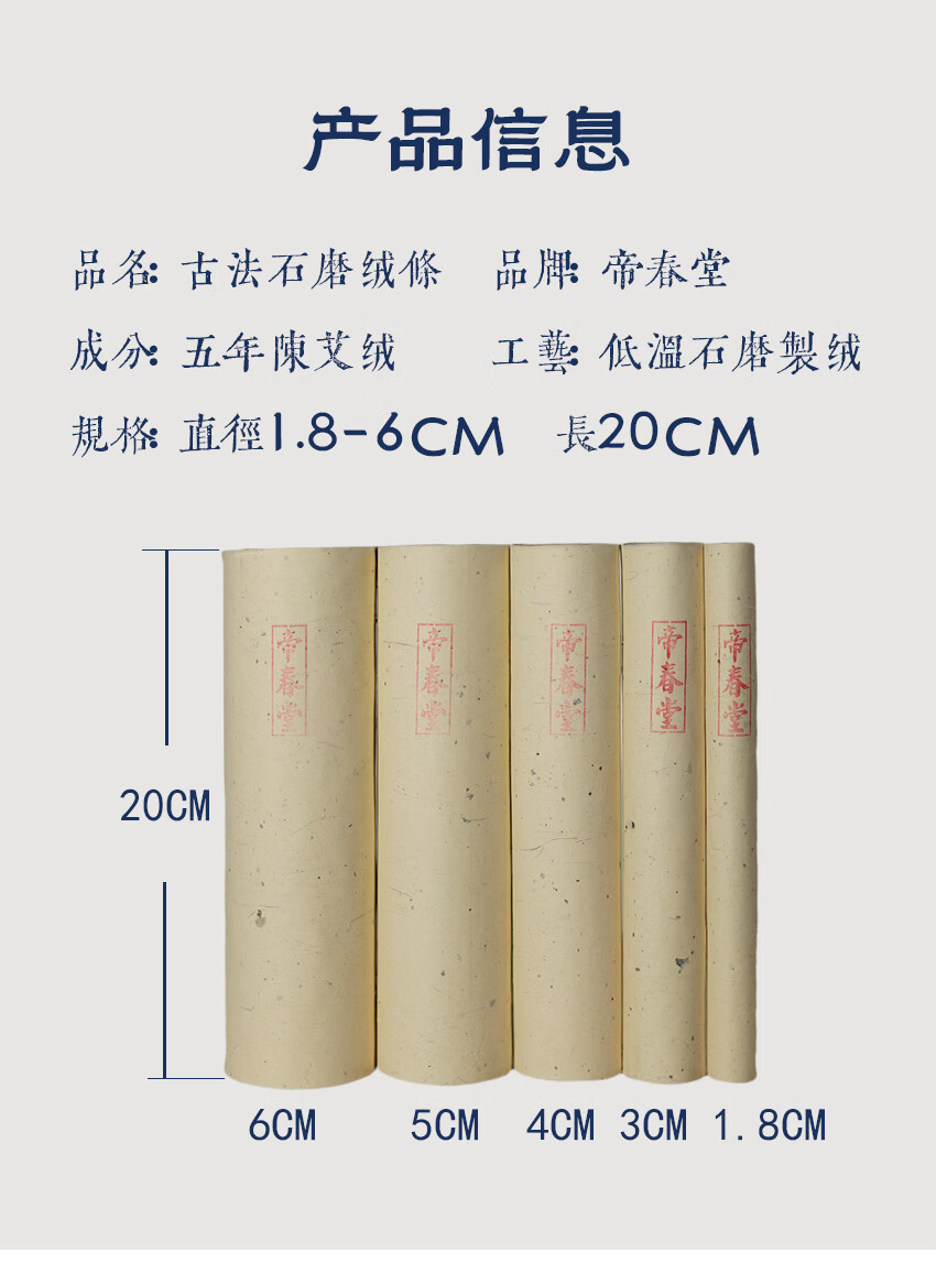 帝春堂石磨艾绒悬灸条艾绒条艾柱艾灸条雷火灸五年陈石碾艾条 石磨条15支装(1.8*20CM)
