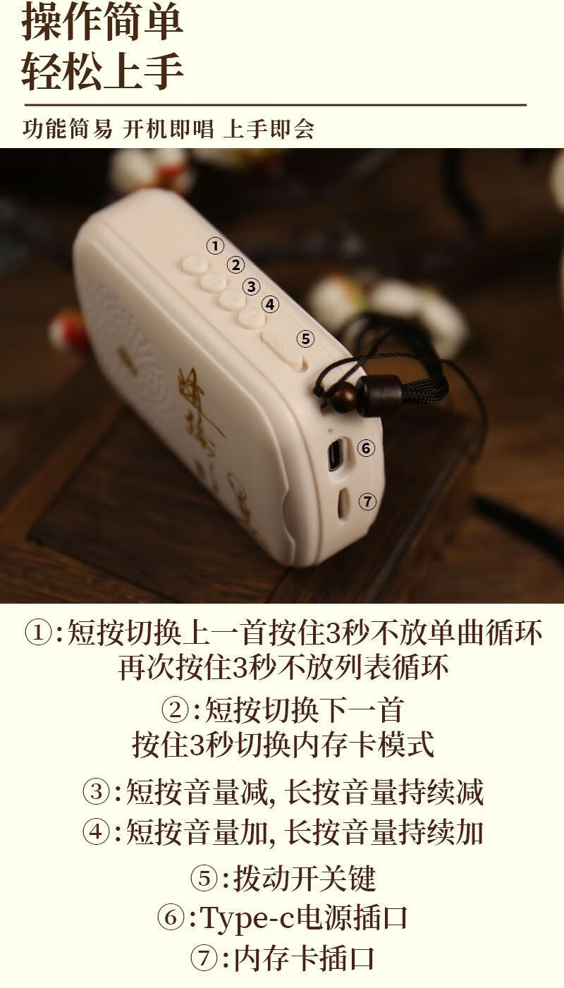 慈悲智慧静心听禅音乐歌曲老年人念播放器专用插卡小音响充电便携 白色 自带38首