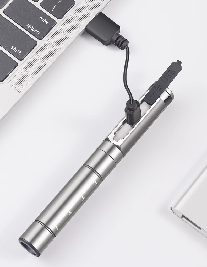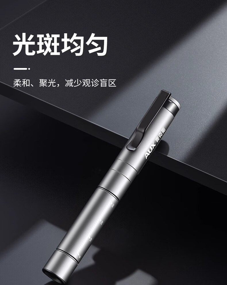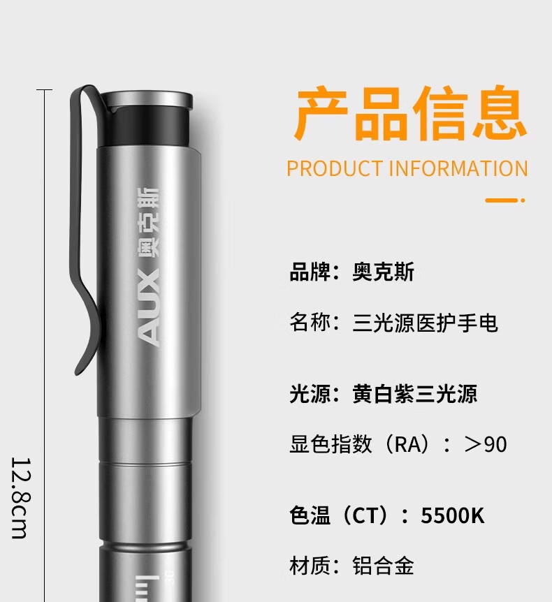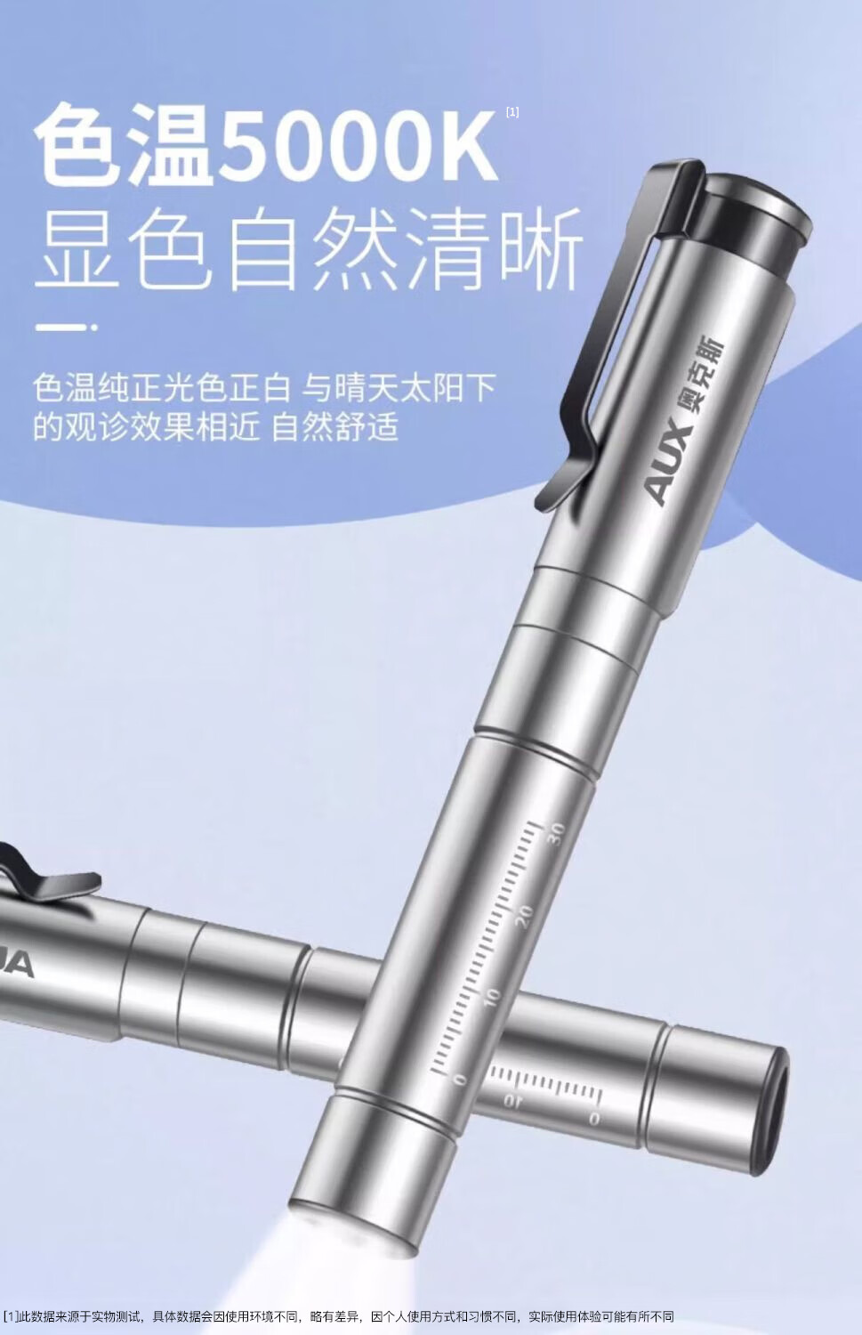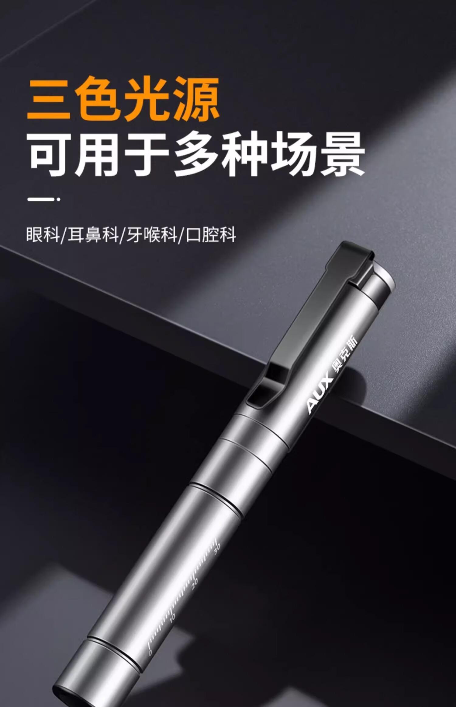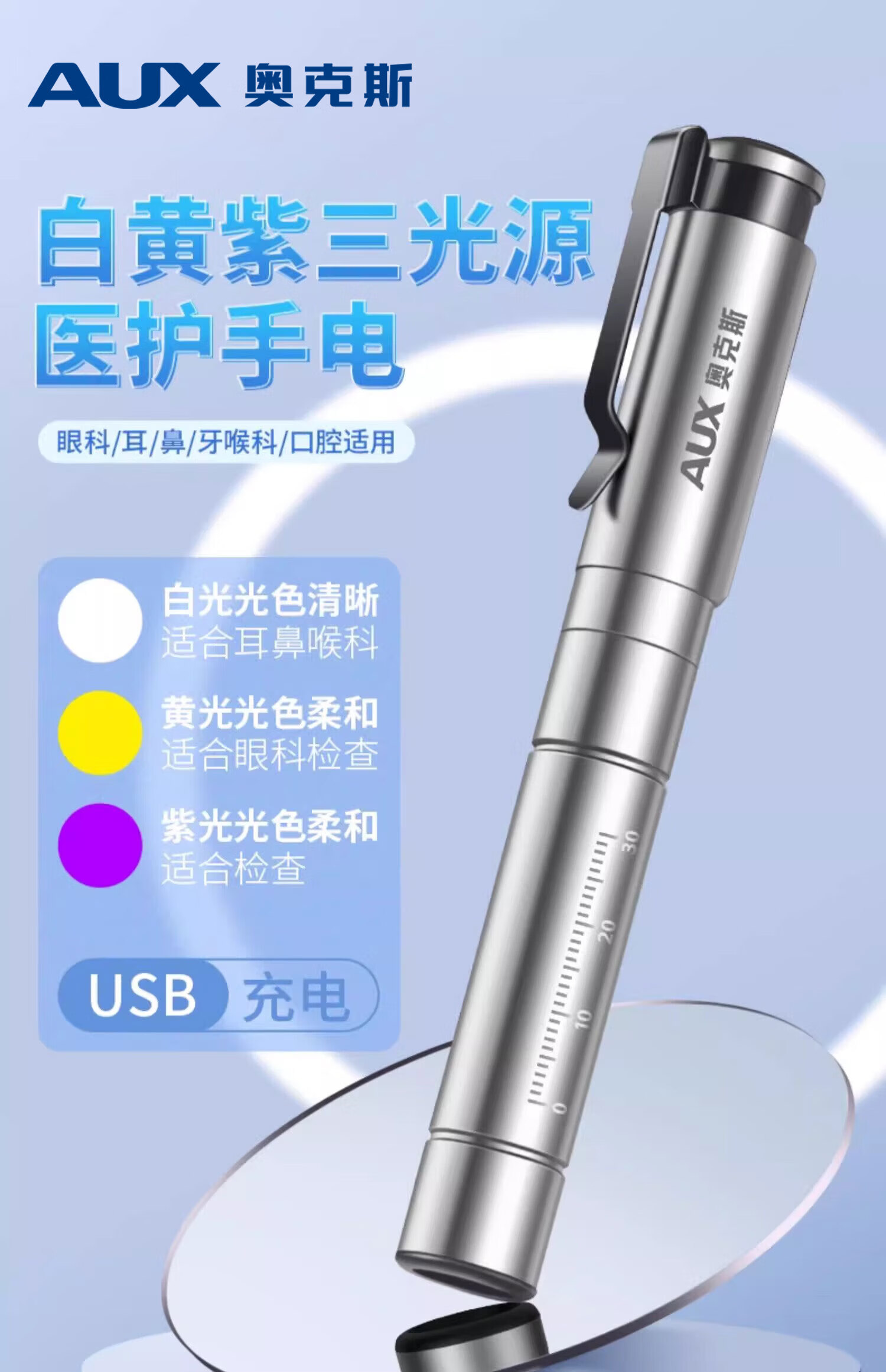 奥克斯瞳孔笔灯医护手电筒耳鼻咽喉口腔医护专用便携笔夹笔黄白紫三色光 黑金加厚款+定制专拍+三个光源