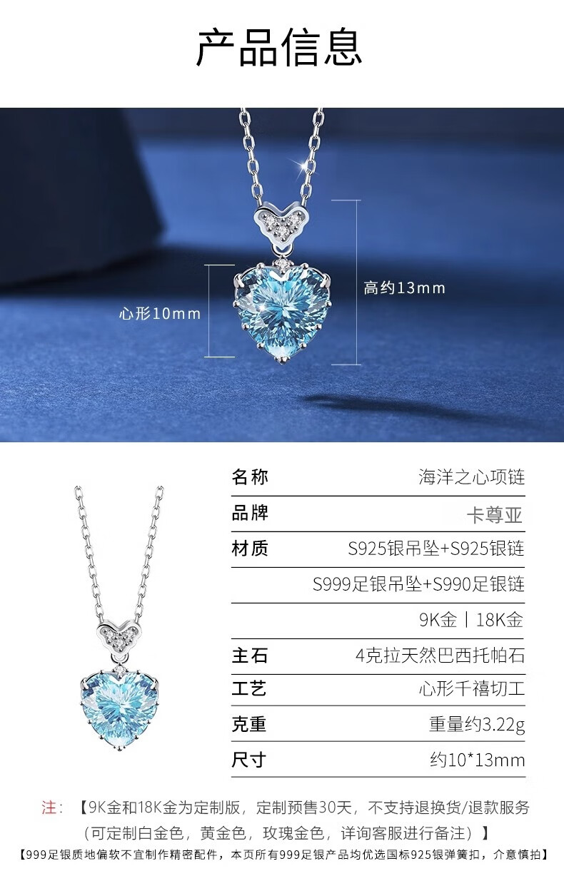 KARZUMYA项链女海洋之心系列999足银轻奢小众高级感生日情人节礼物送女友 海洋之心项链