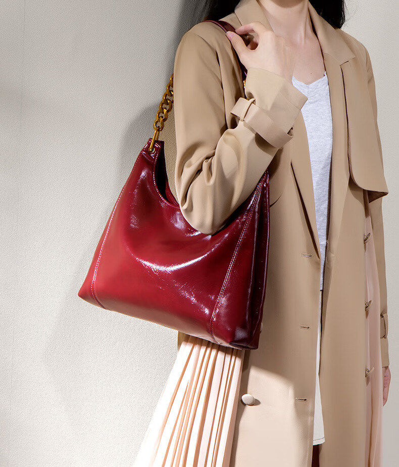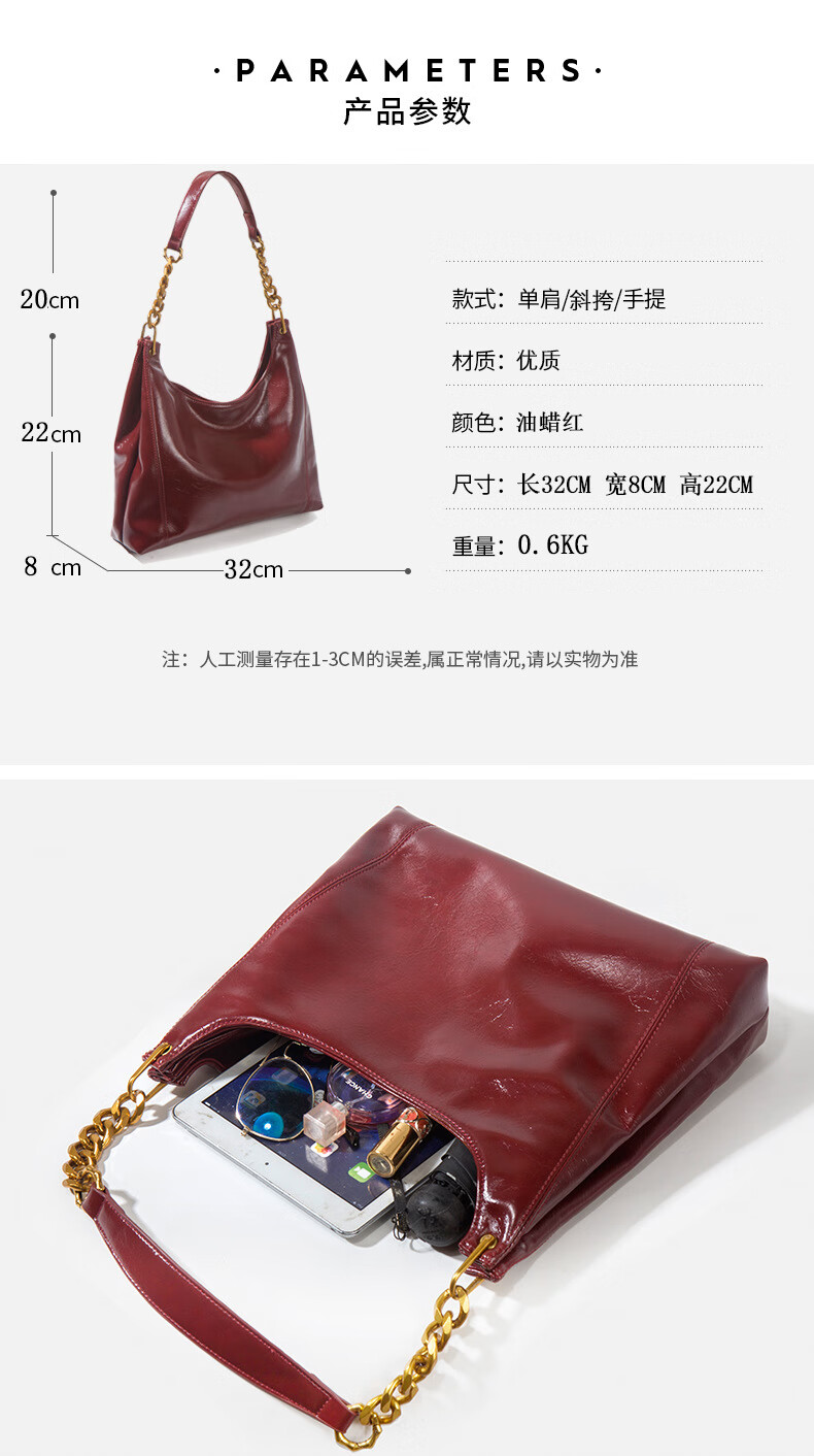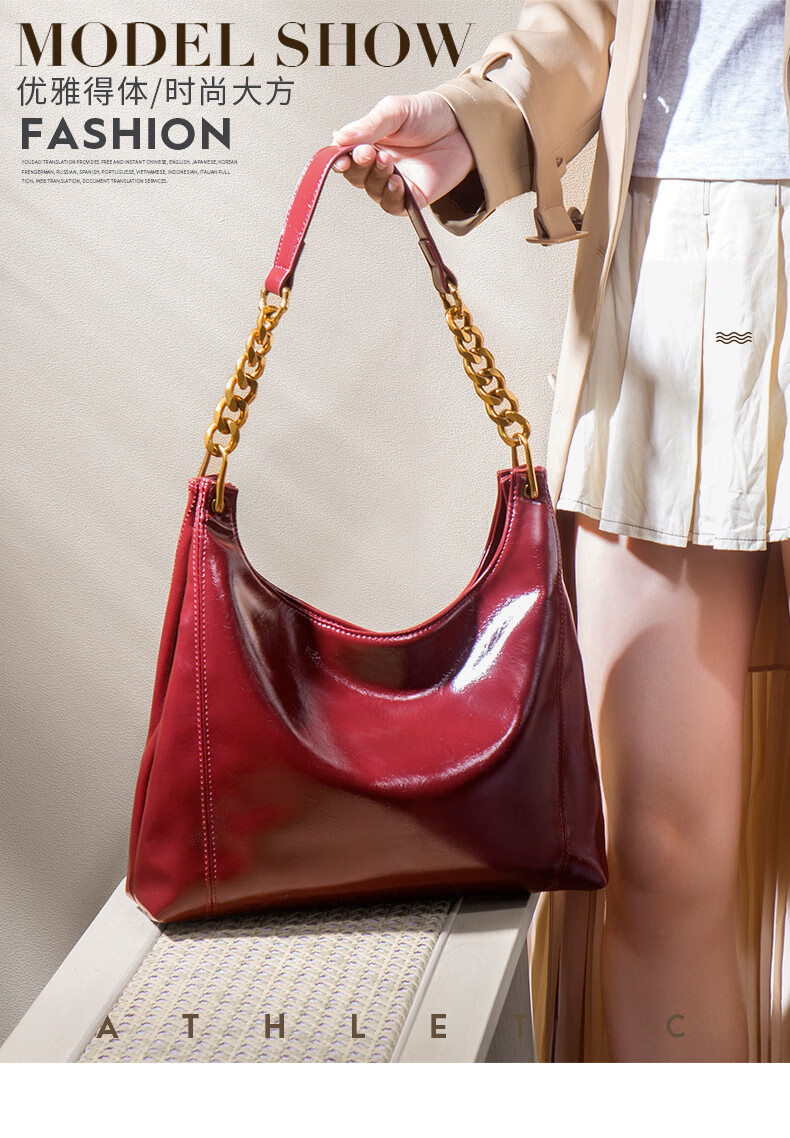 游子吟斜挎女包大容量红色结婚包包新娘包日常可用高档订婚新婚新人礼物 油蜡红-高档款软皮托特包