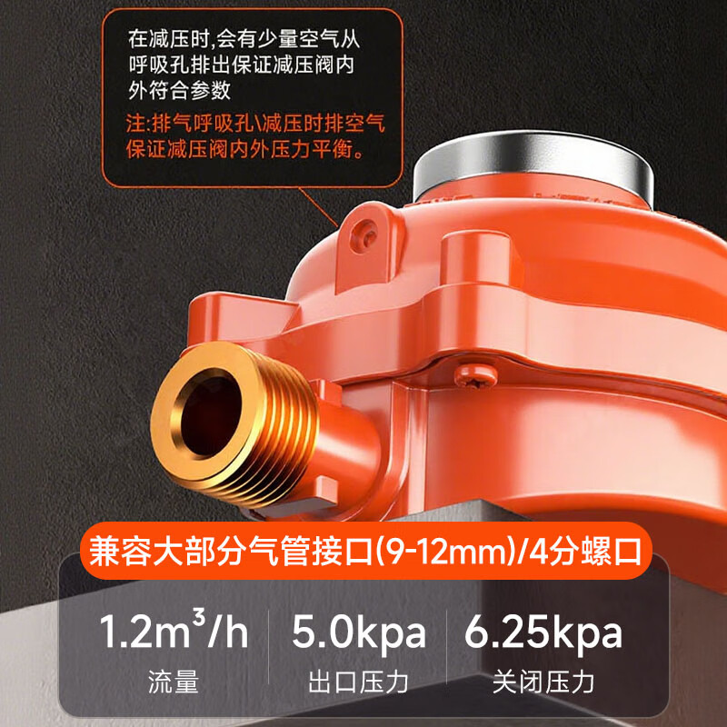厨燃宝 国标2.0商用煤气减压阀饭店猛火灶防爆自闭液化气罐大流量安全阀 【螺口】商用2.0减压阀