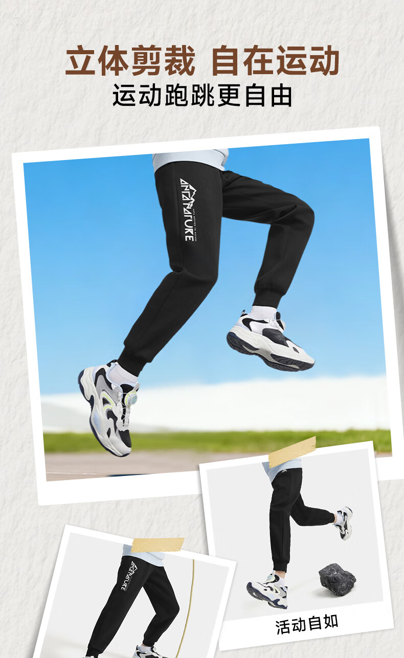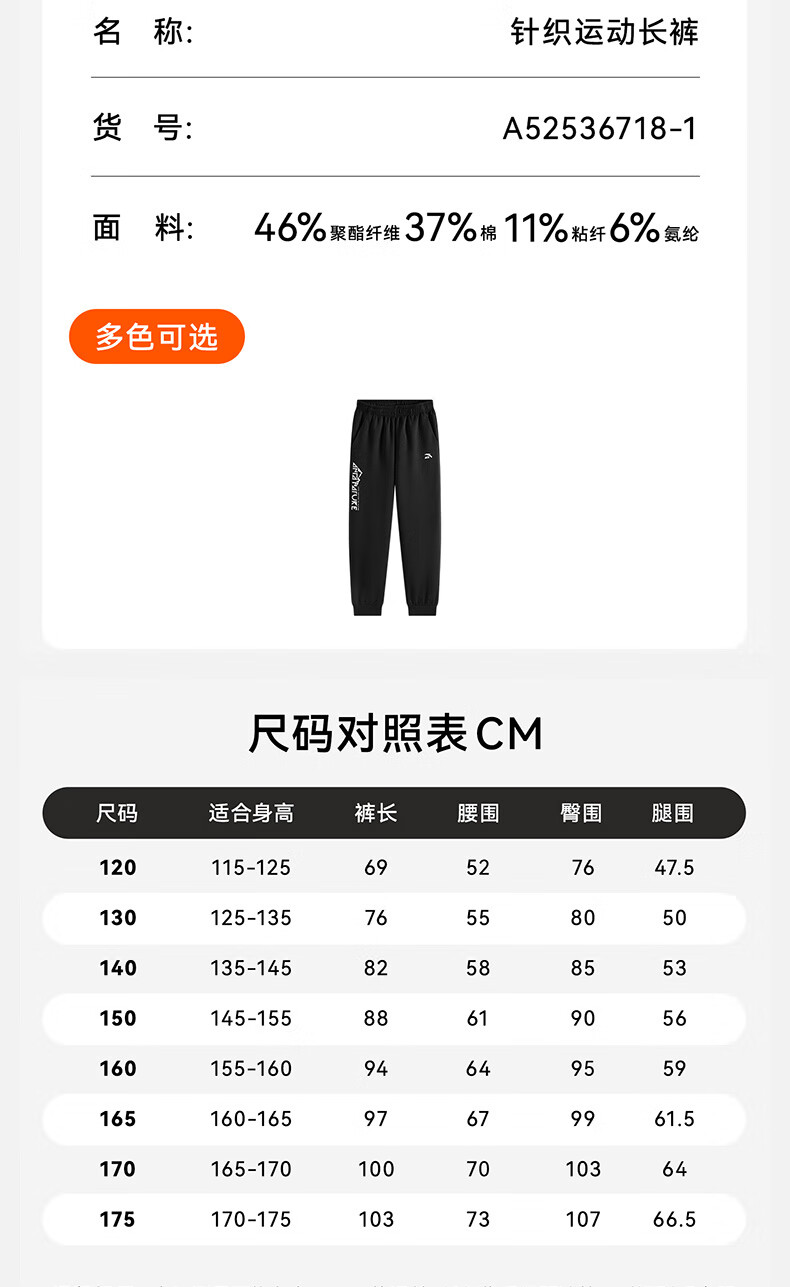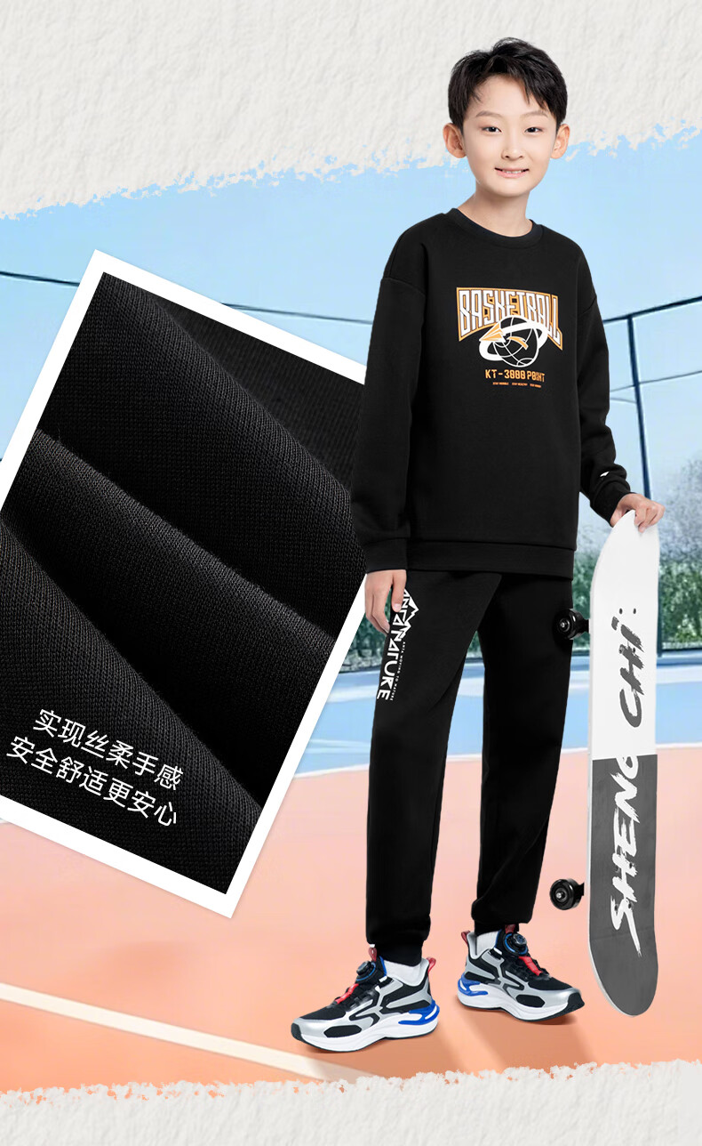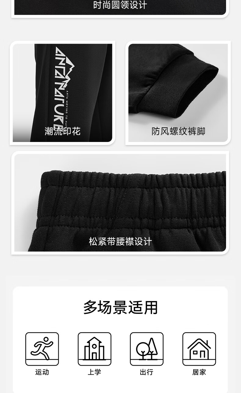 安踏儿童针织运动套装秋季男大童字母印花两件套中大童优可丝运动套装 基础黑【裤子优可丝】 165