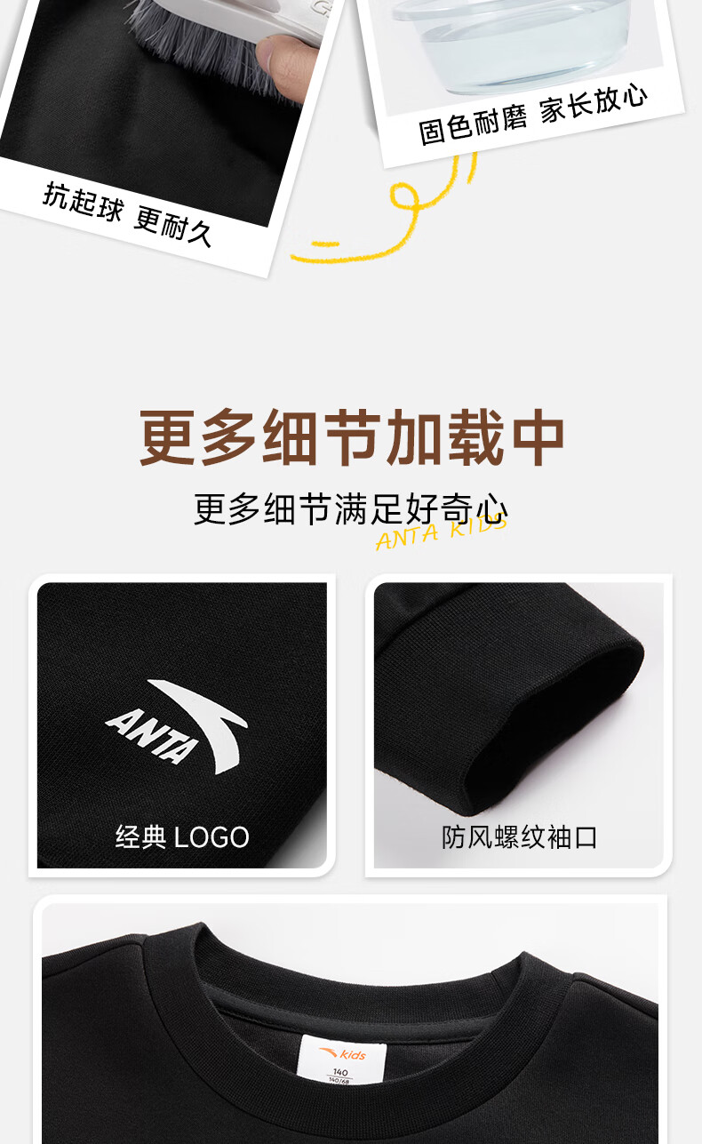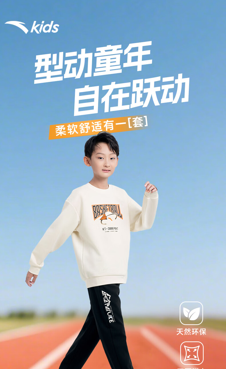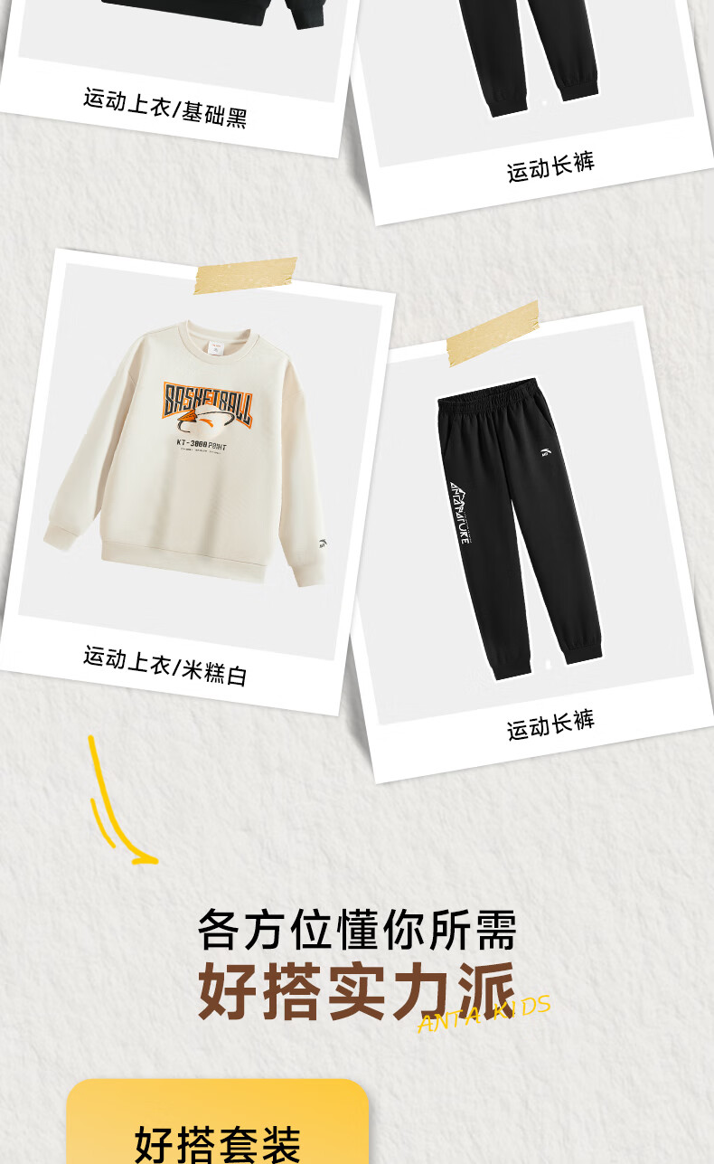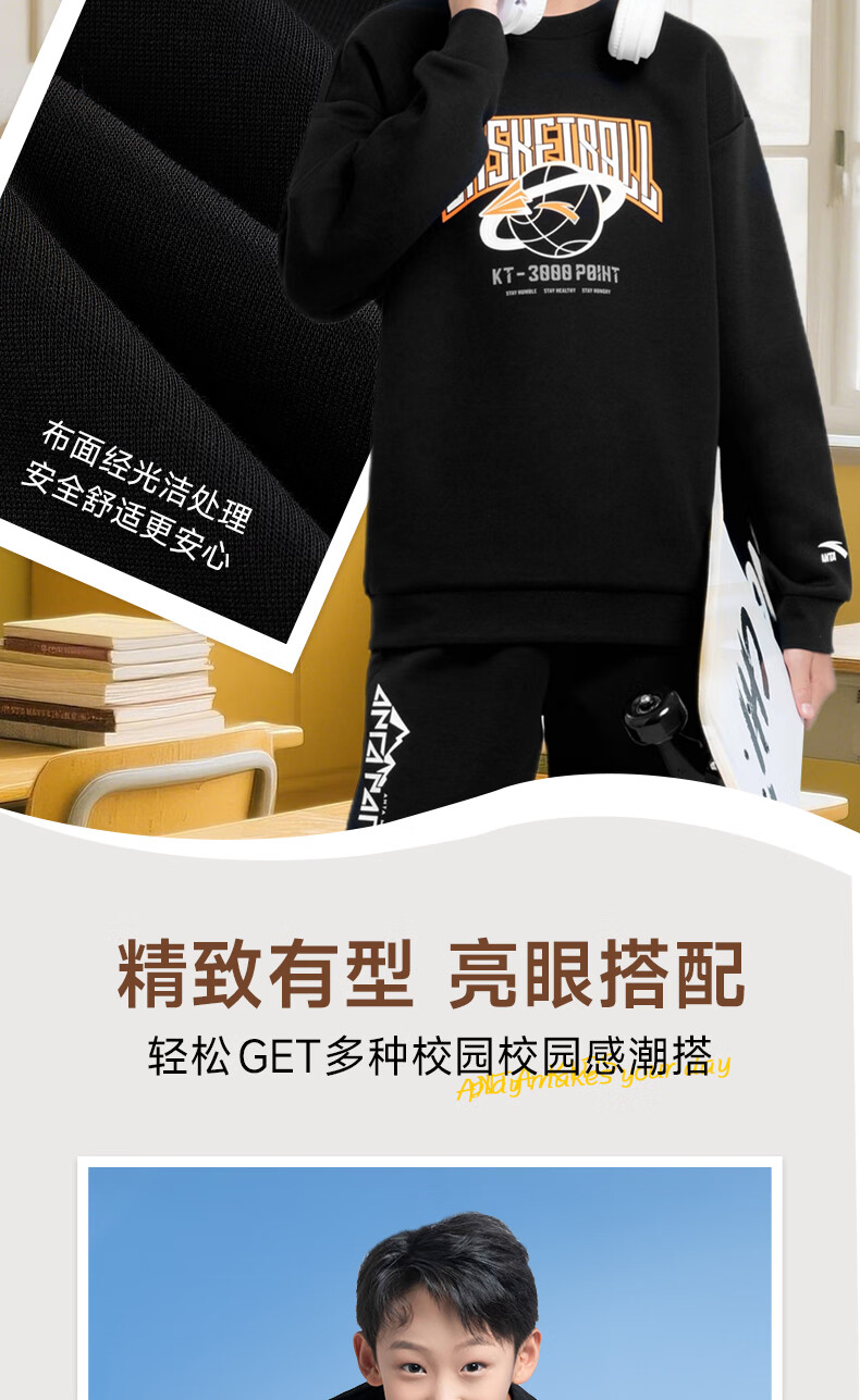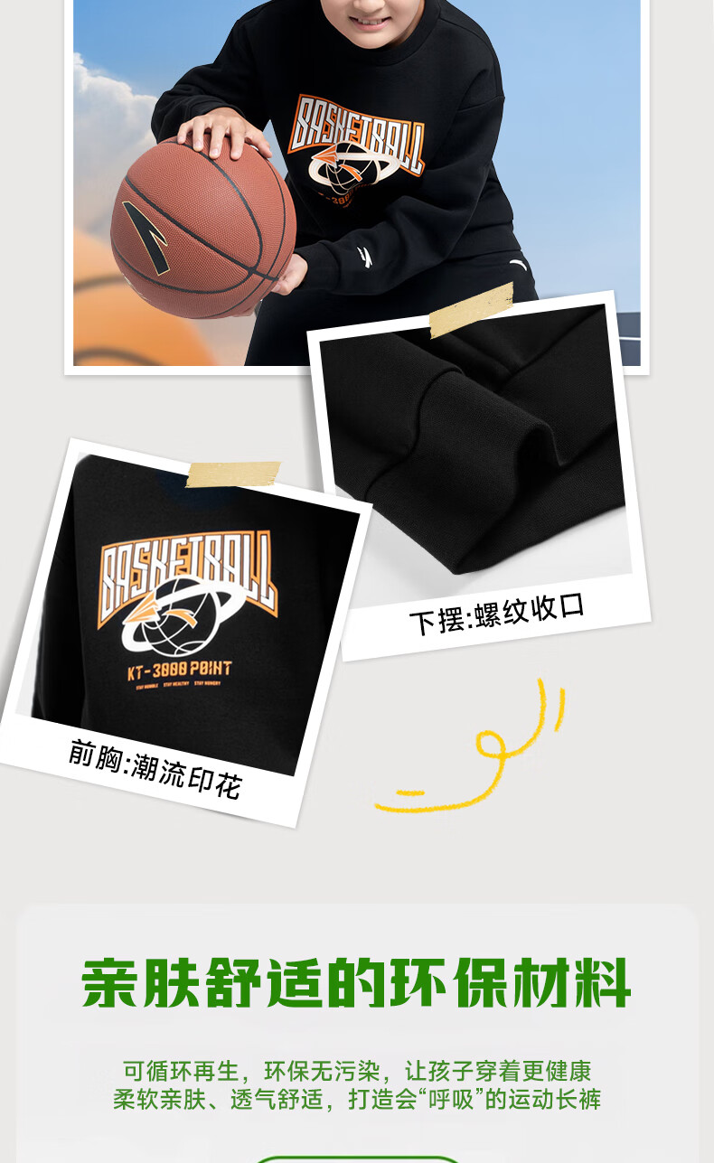 安踏儿童针织运动套装秋季男大童字母印花两件套中大童优可丝运动套装 基础黑【裤子优可丝】 165